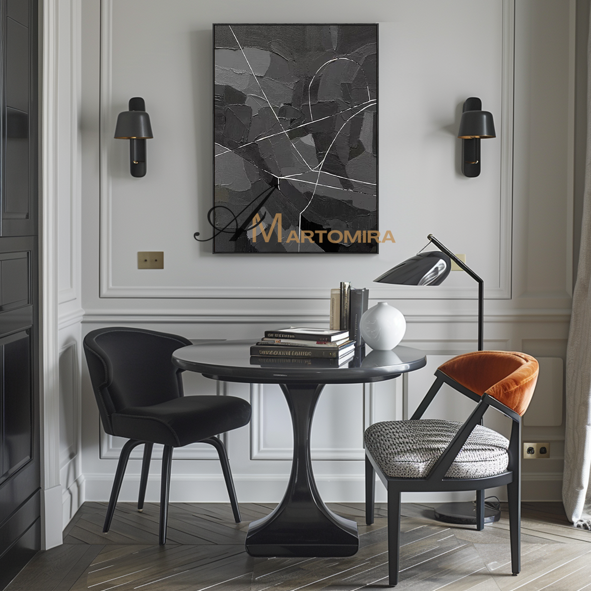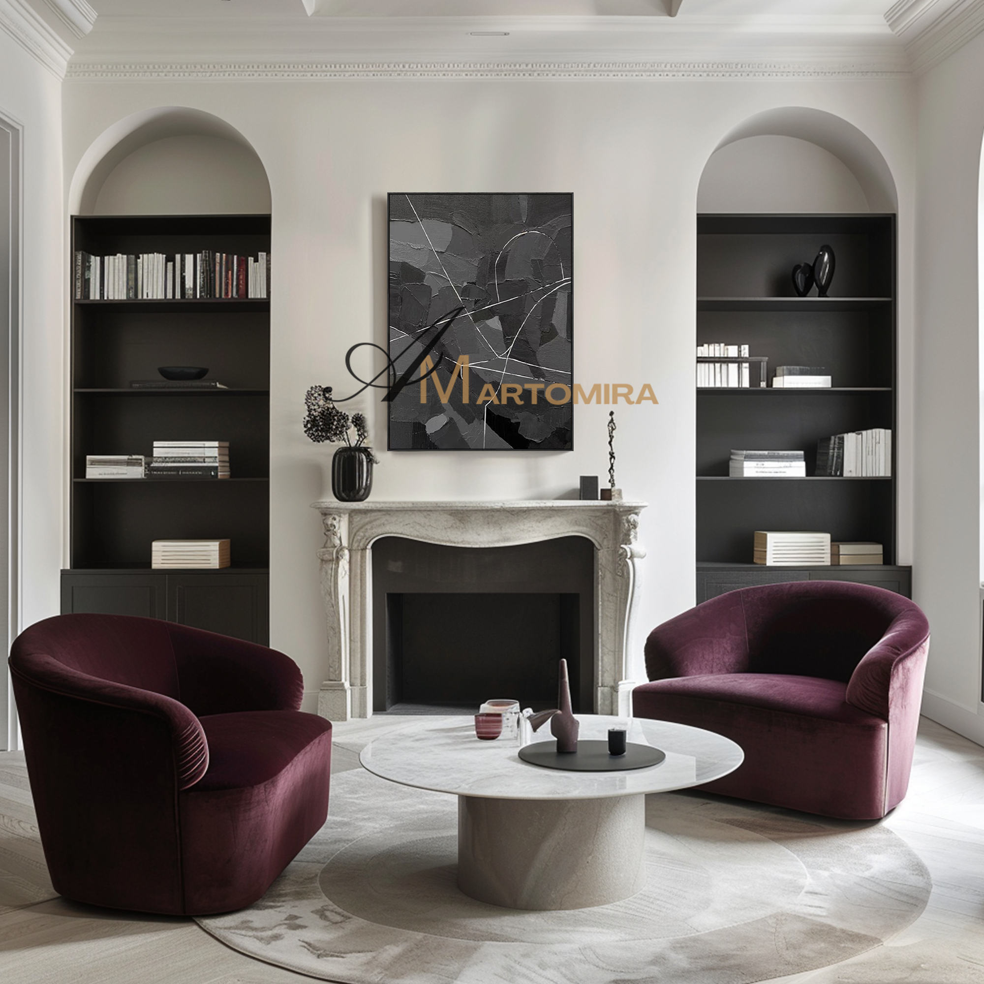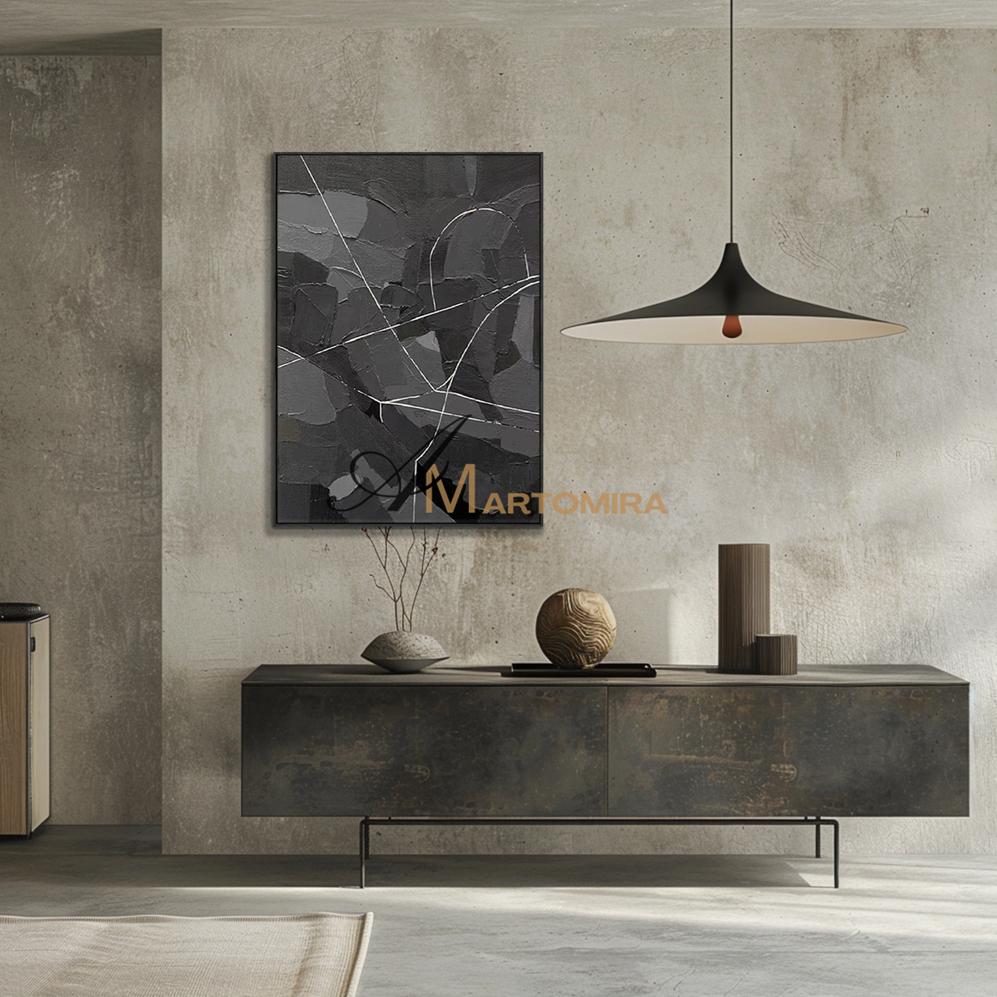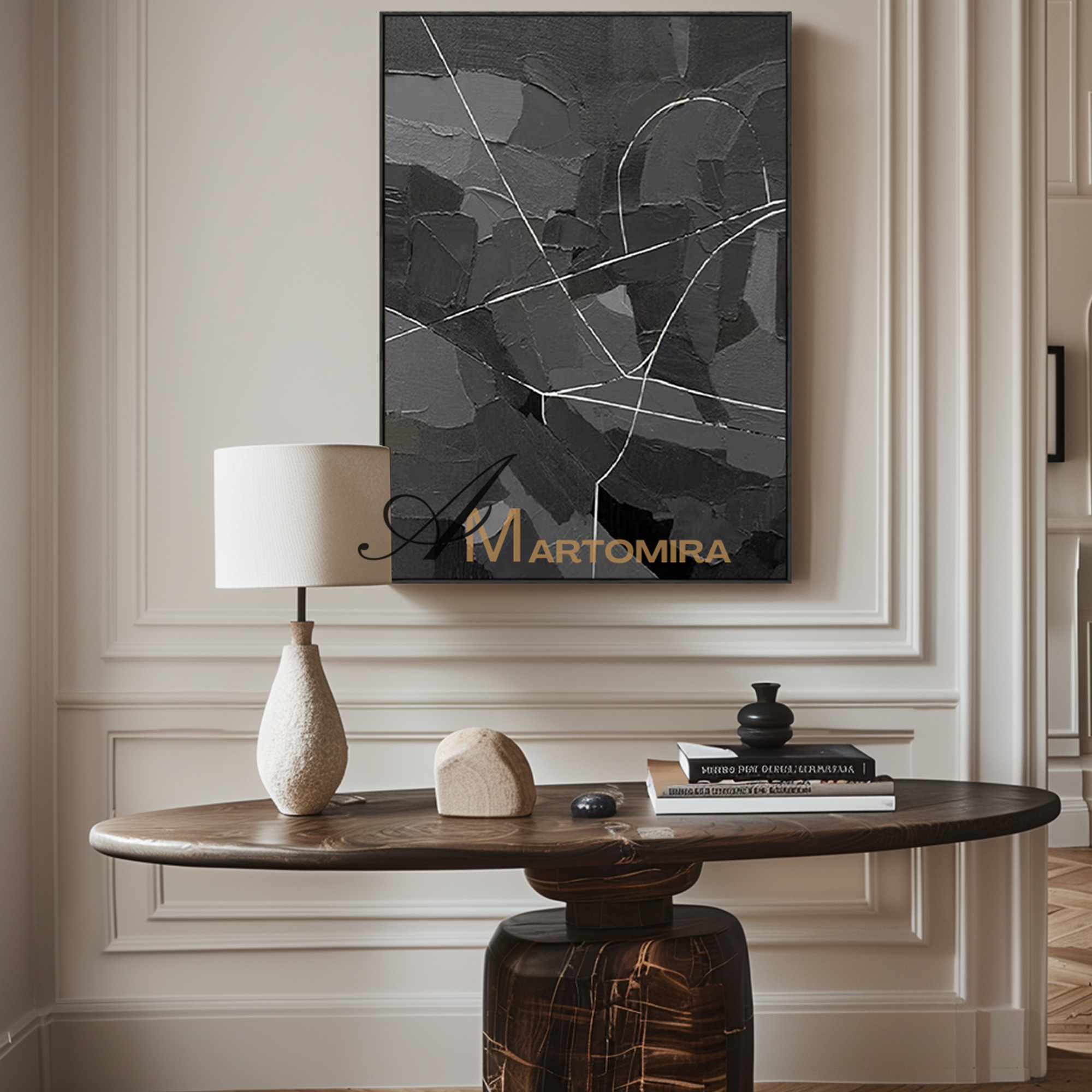 Enhance your interior with our contemporary hand-painted wall art, blending texture, form, and timeless style.