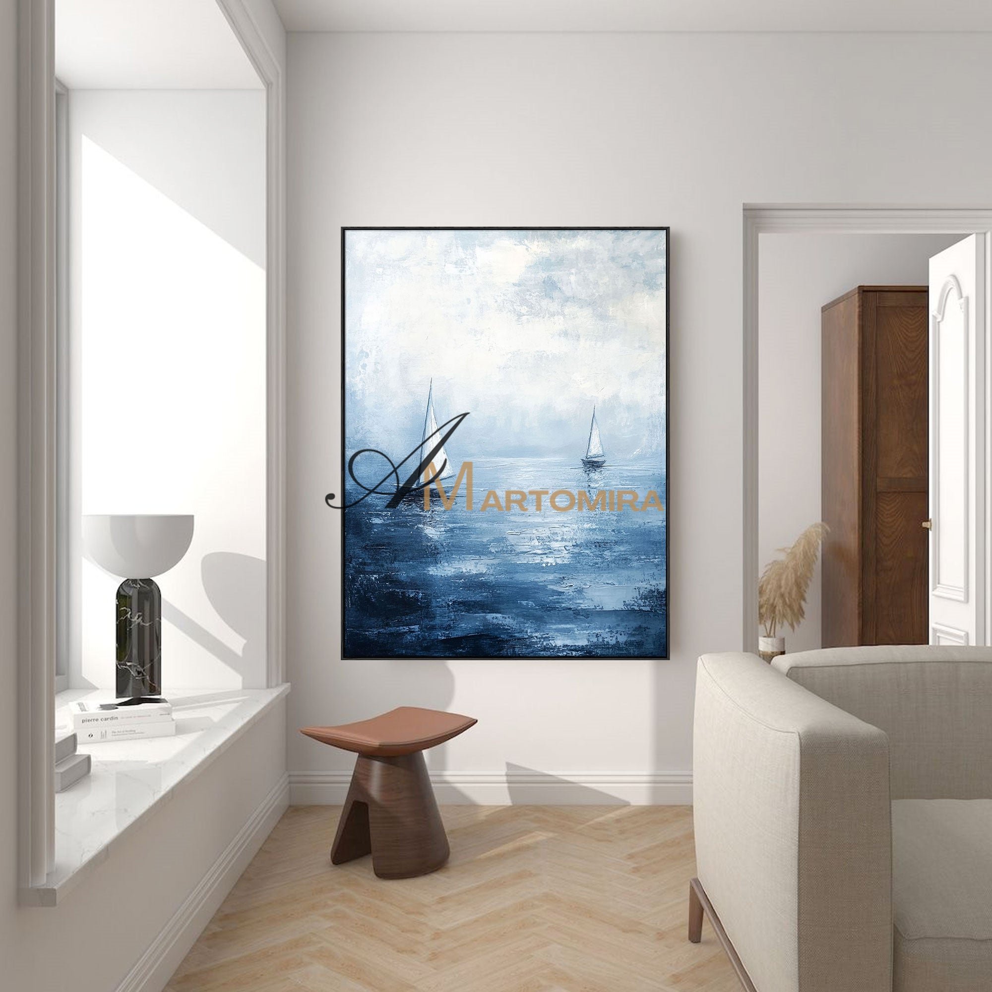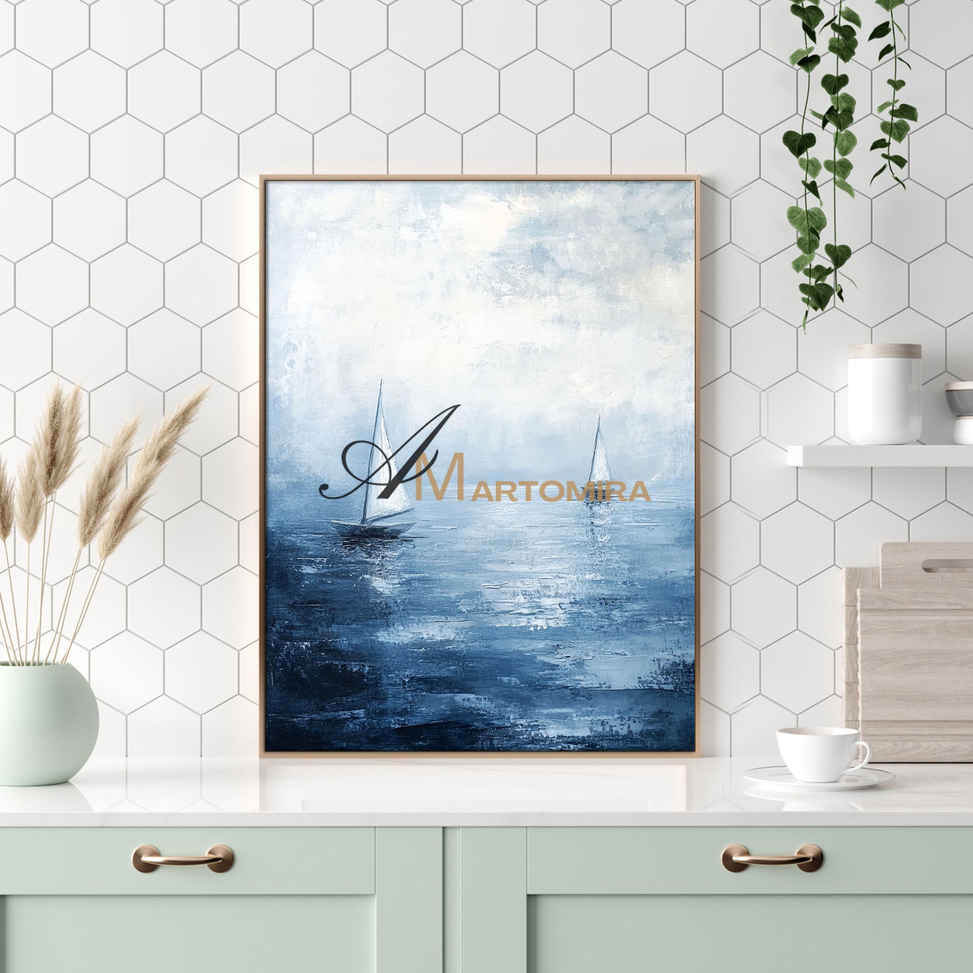 Ozean-Wandkunst | Gemälde des blauen Ozeans | Abstraktes Gemälde in Blau und Weiß | Abstrakte Wandkunst #POS059