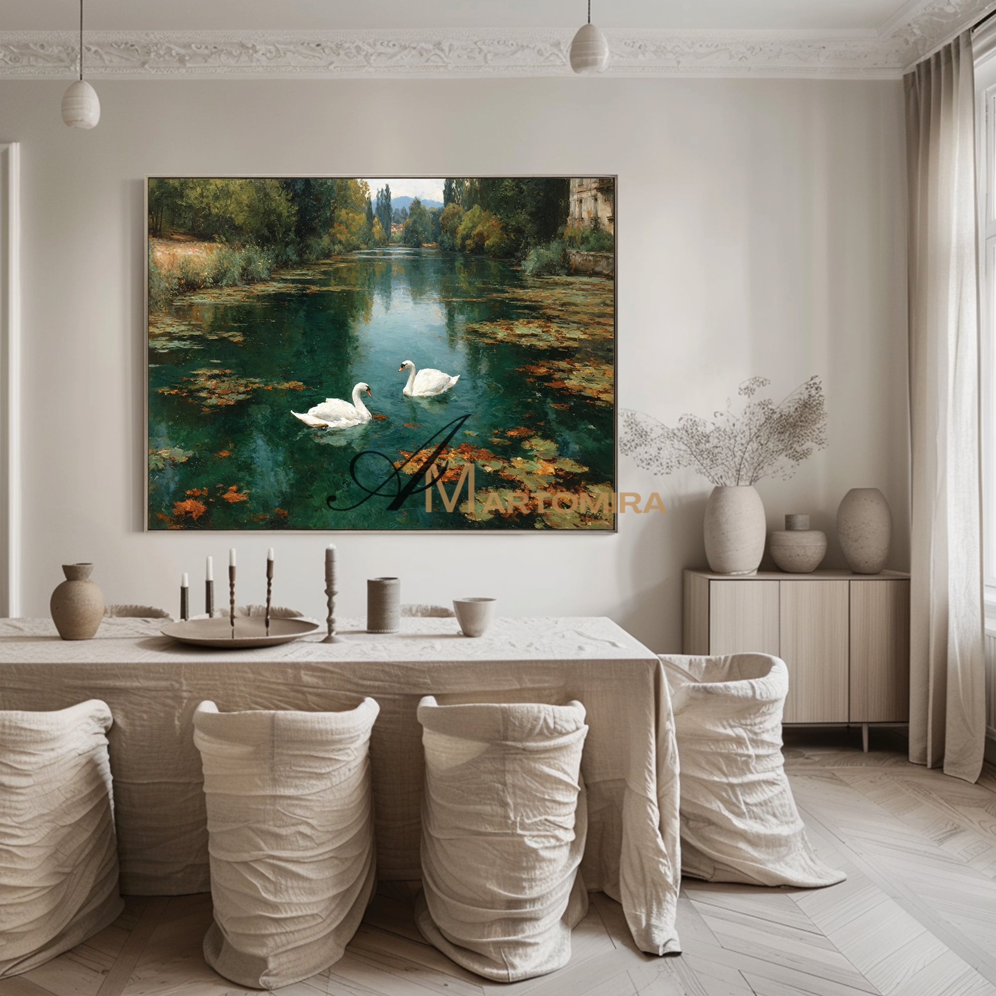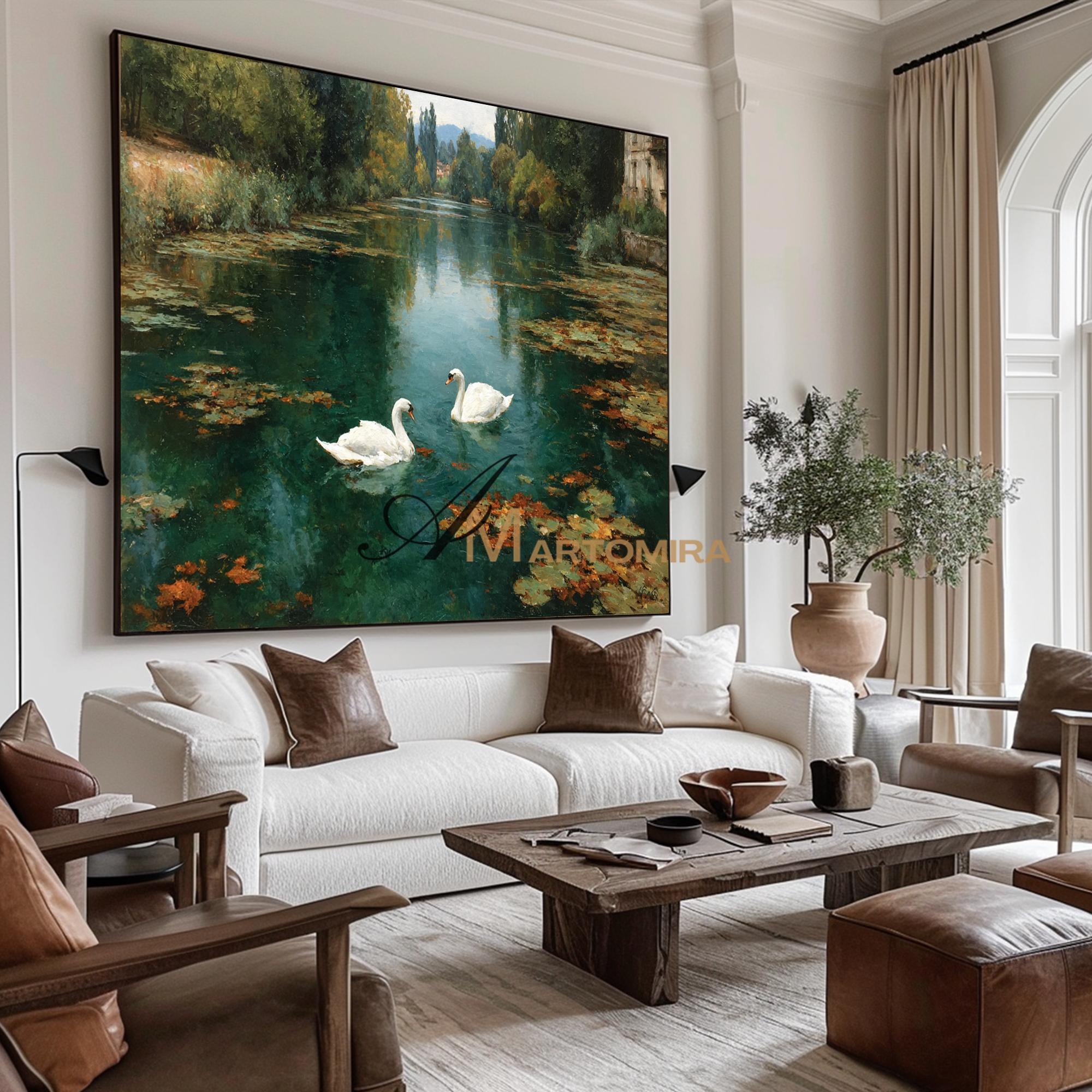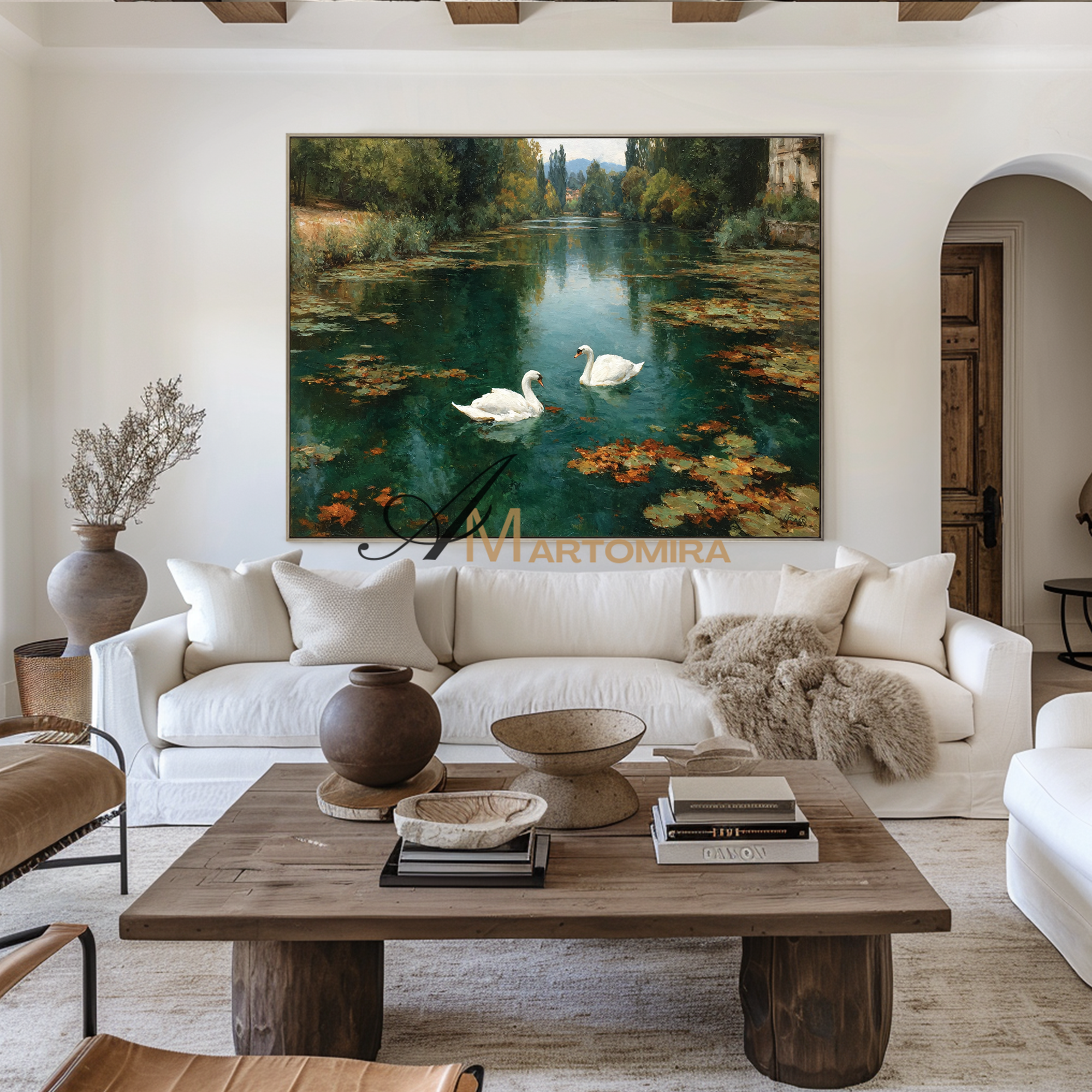 Landschaftsmalerei | Seewandbild | Grüne Landschaftsmalerei | Landschaftsöl auf Leinwand #CL097