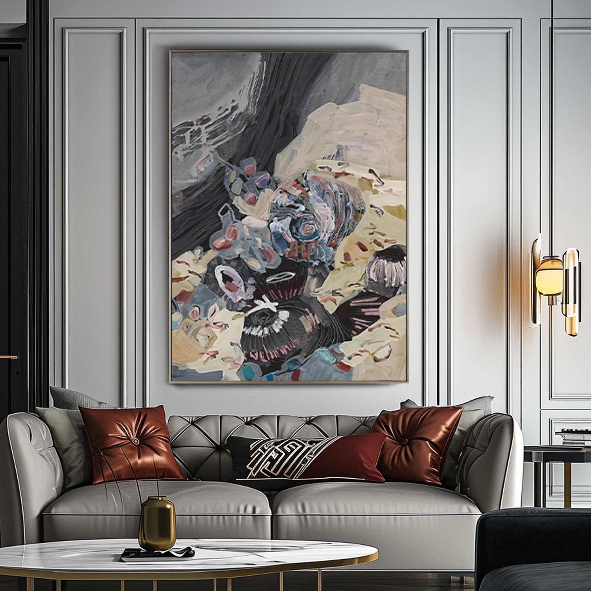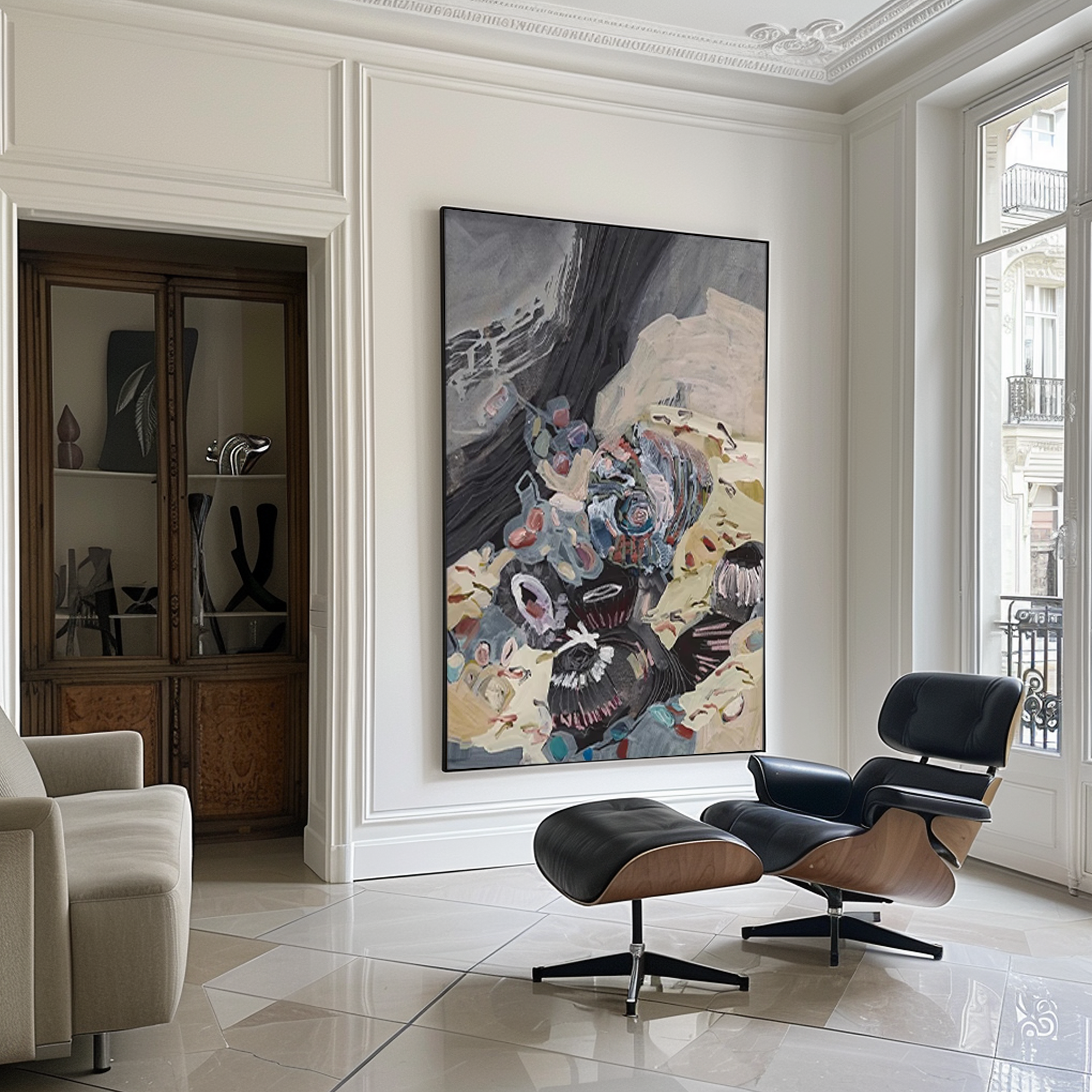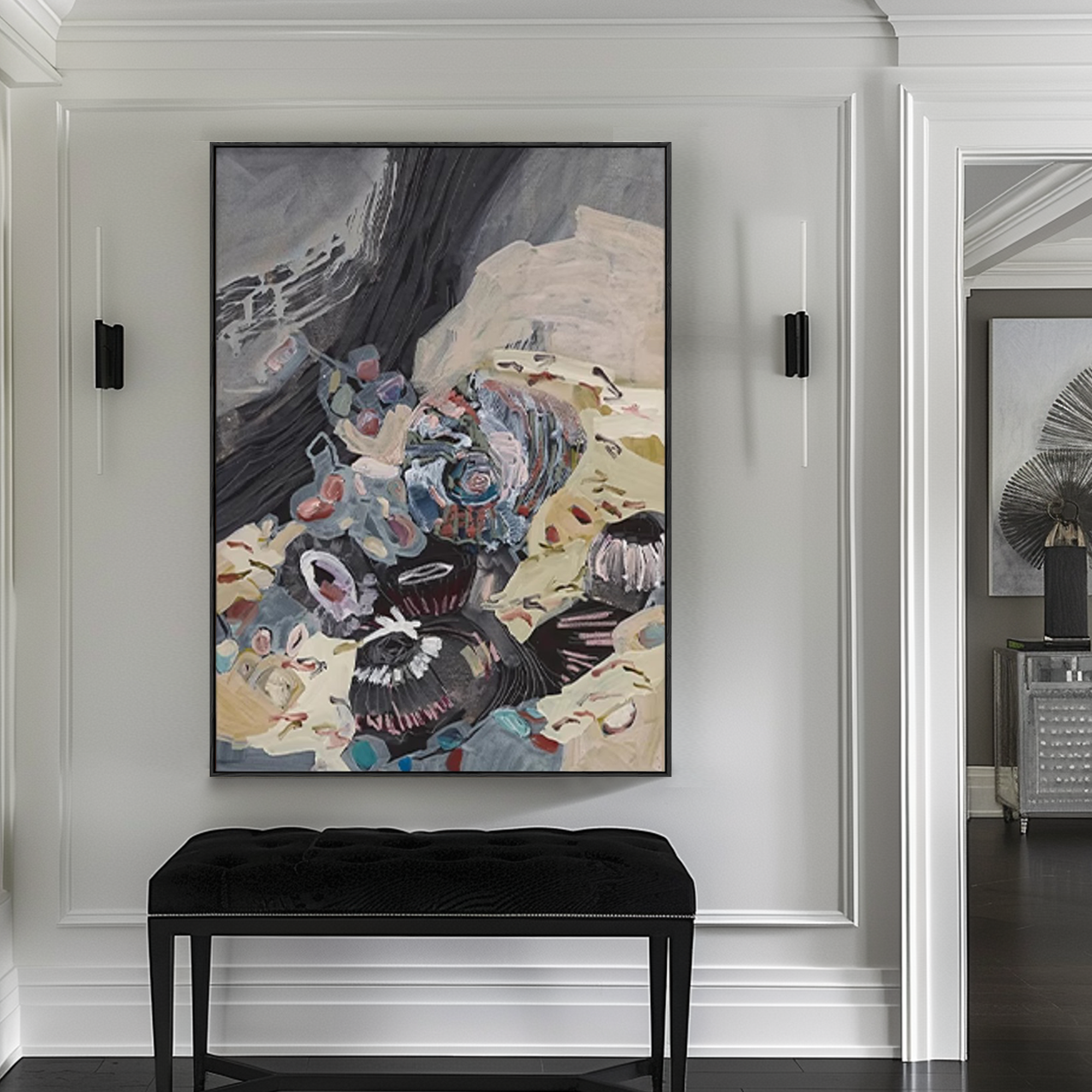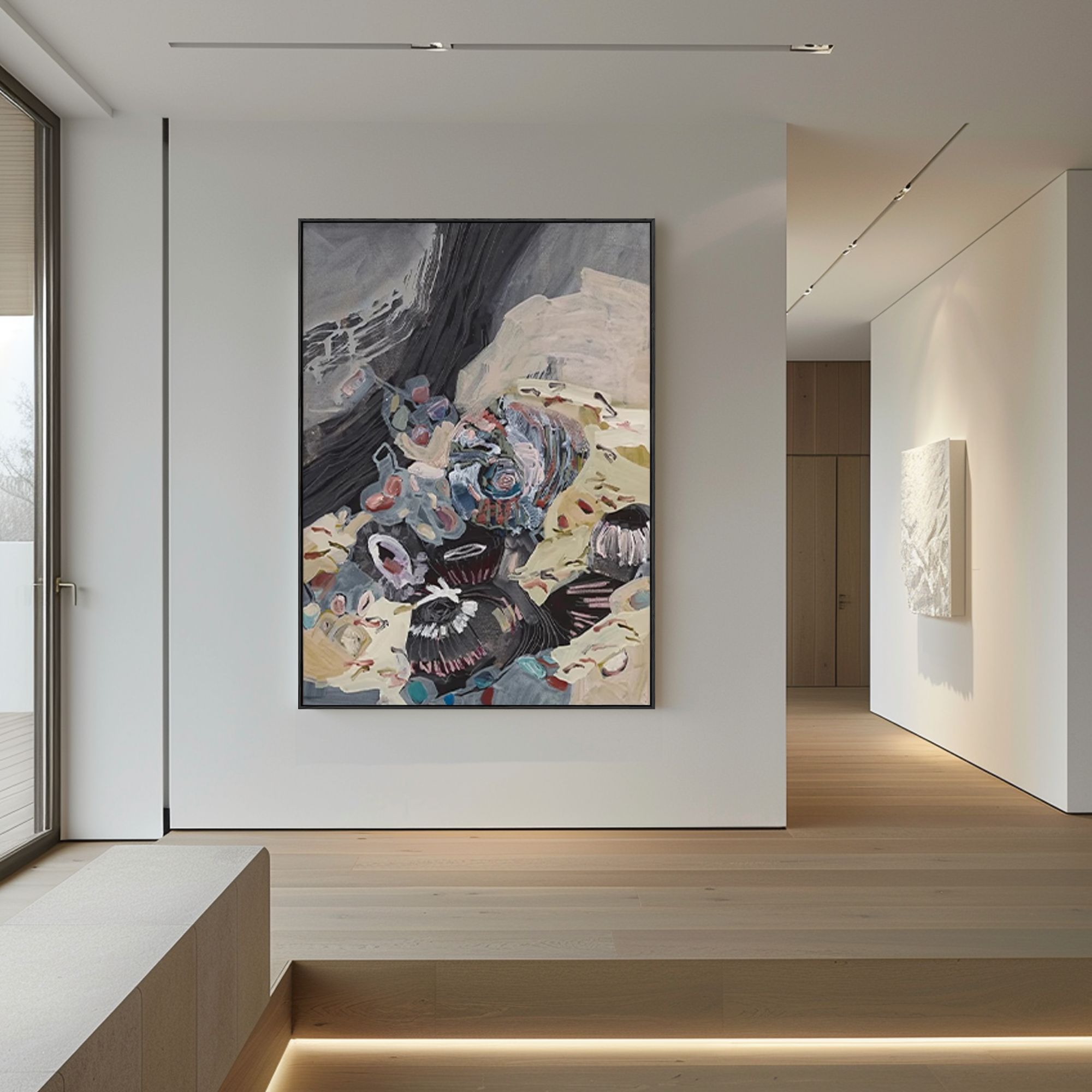 Enhance your interior with our contemporary hand-painted wall art, blending texture, form, and timeless style.