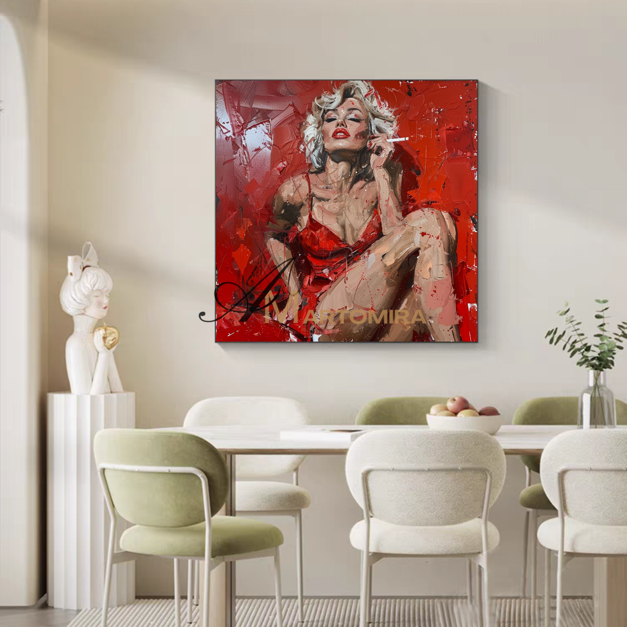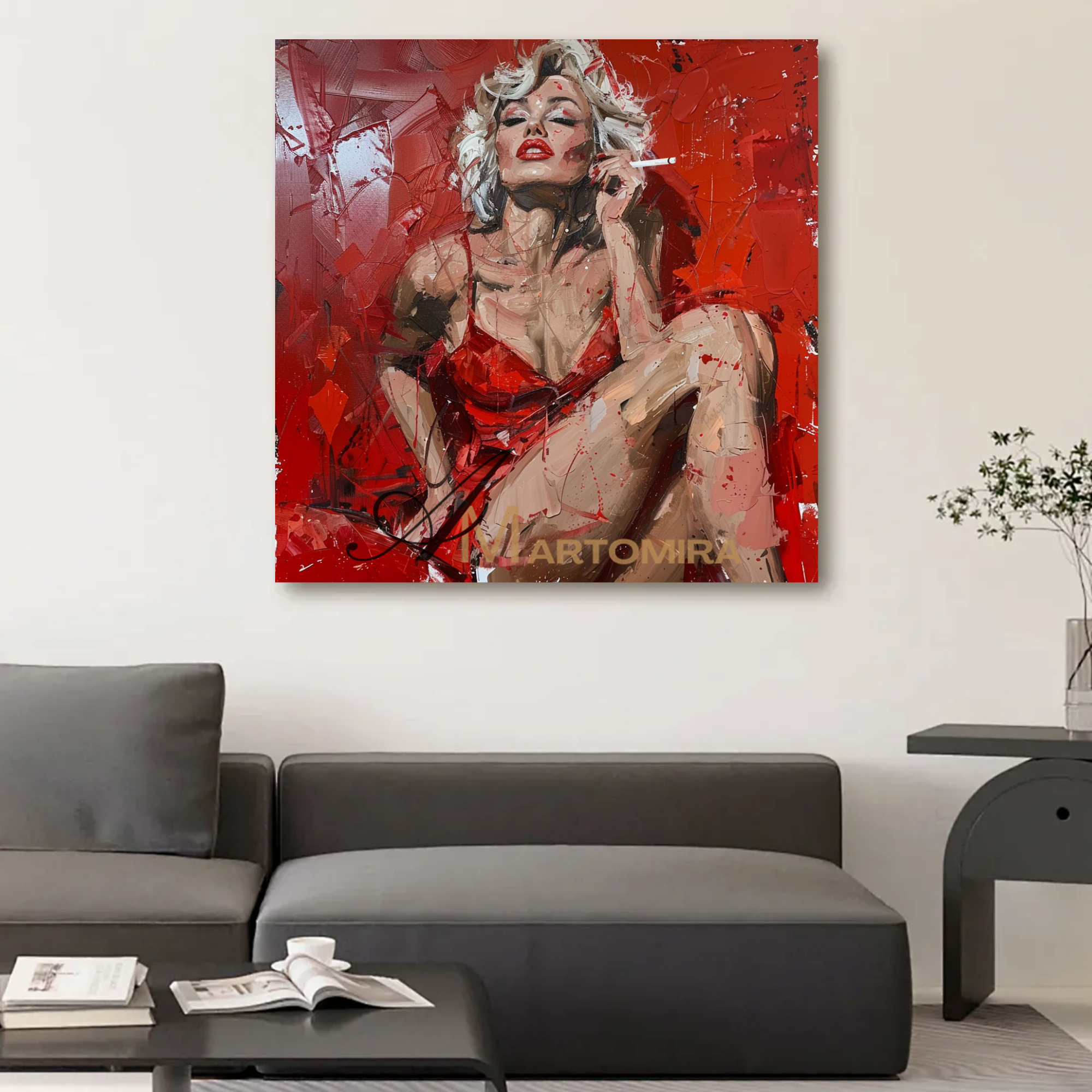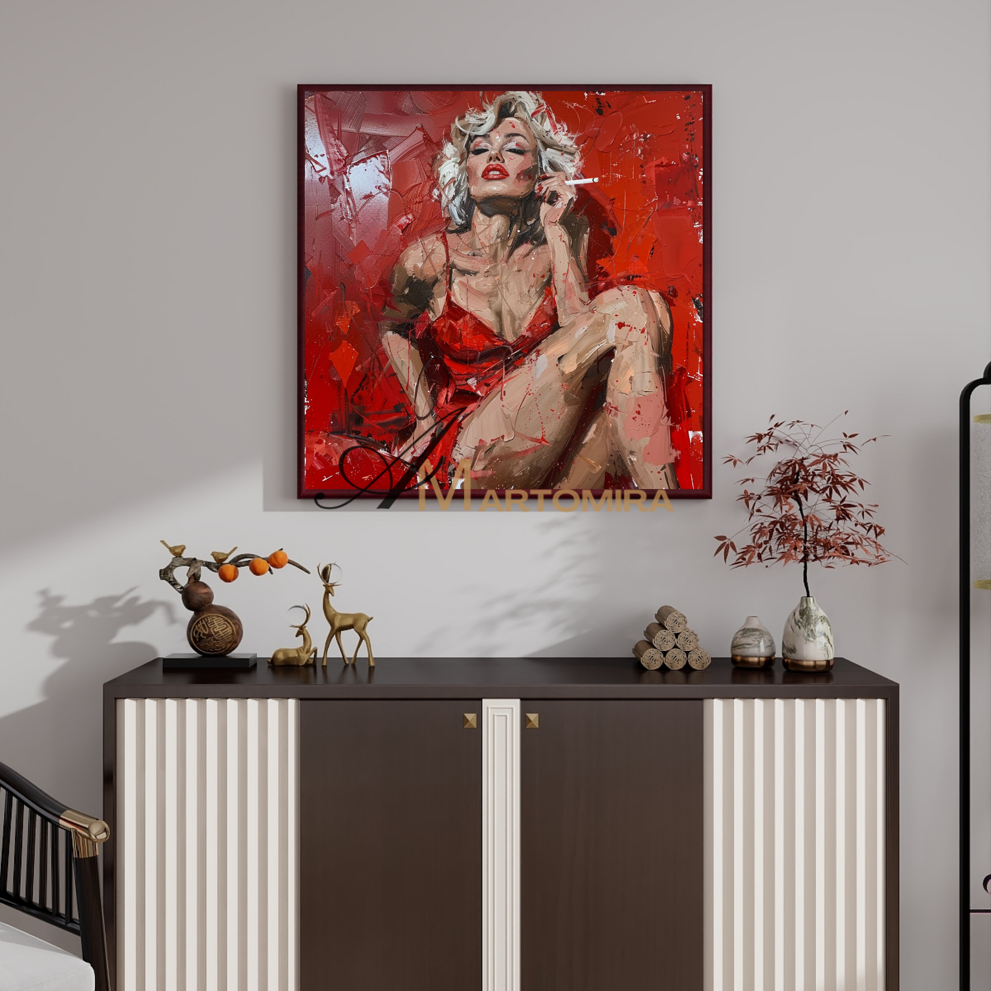 Ölgemälde | Sinnliche Frau | Gemälde einer Frau im roten Kleid | Abstrakte Kunst des weiblichen Körpers #AP049