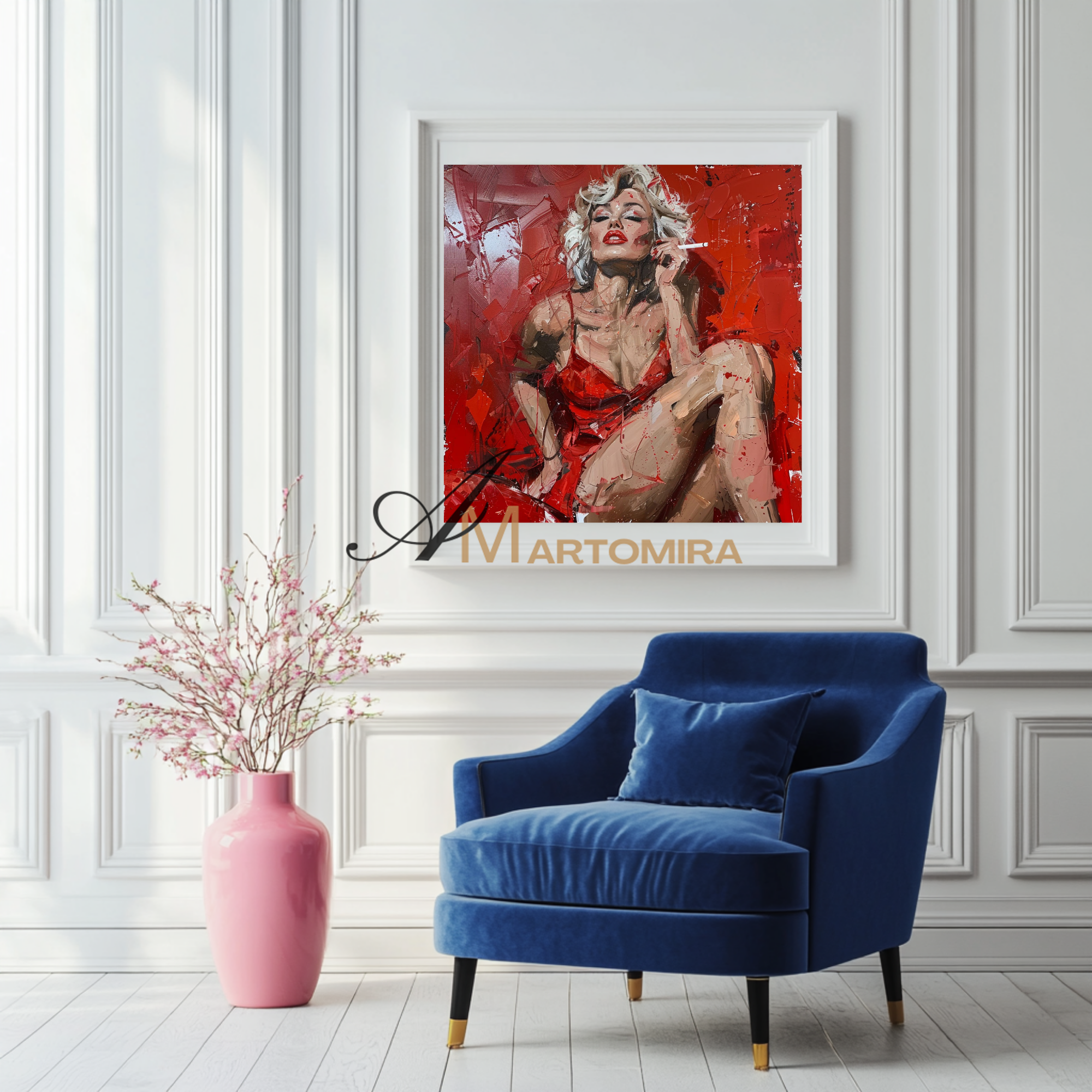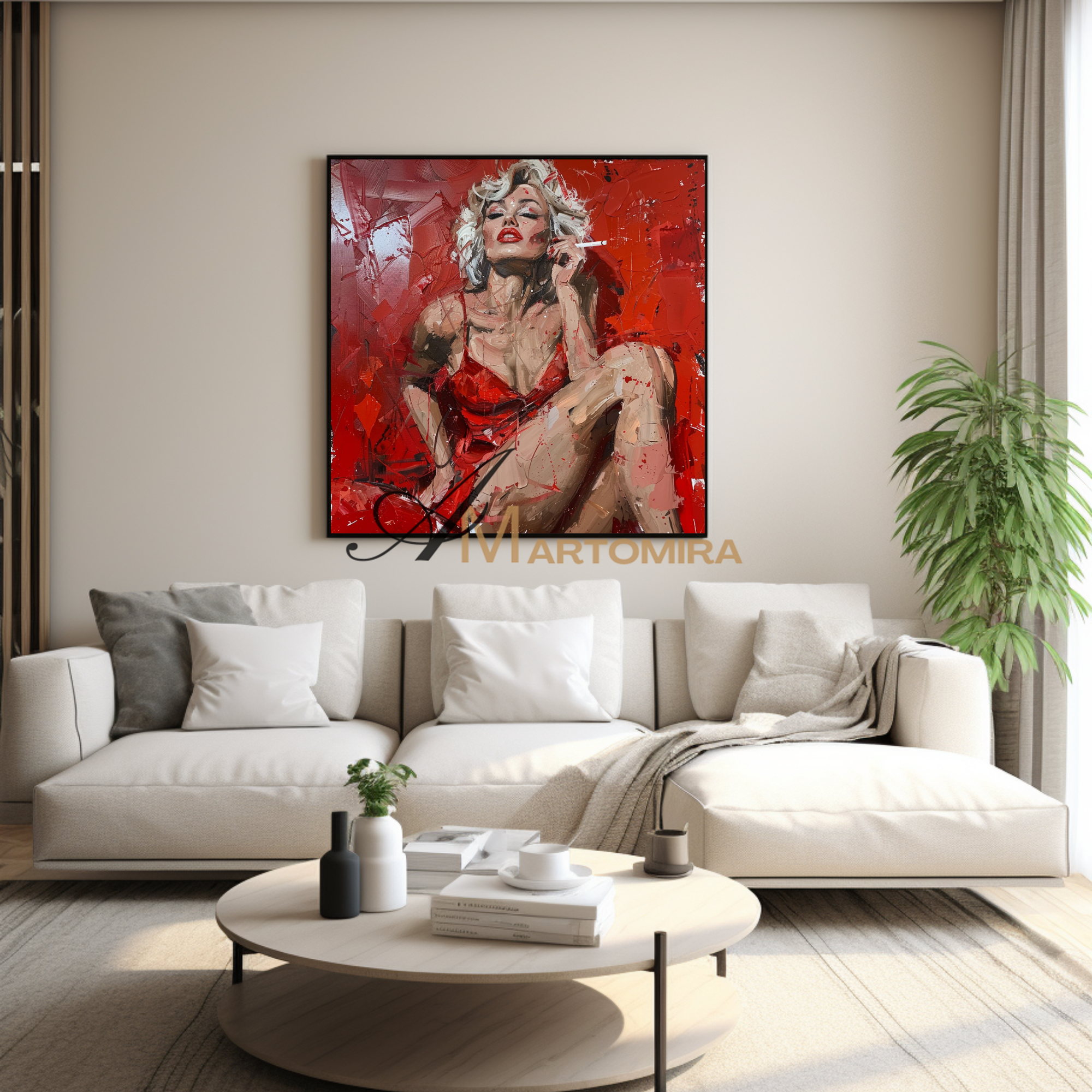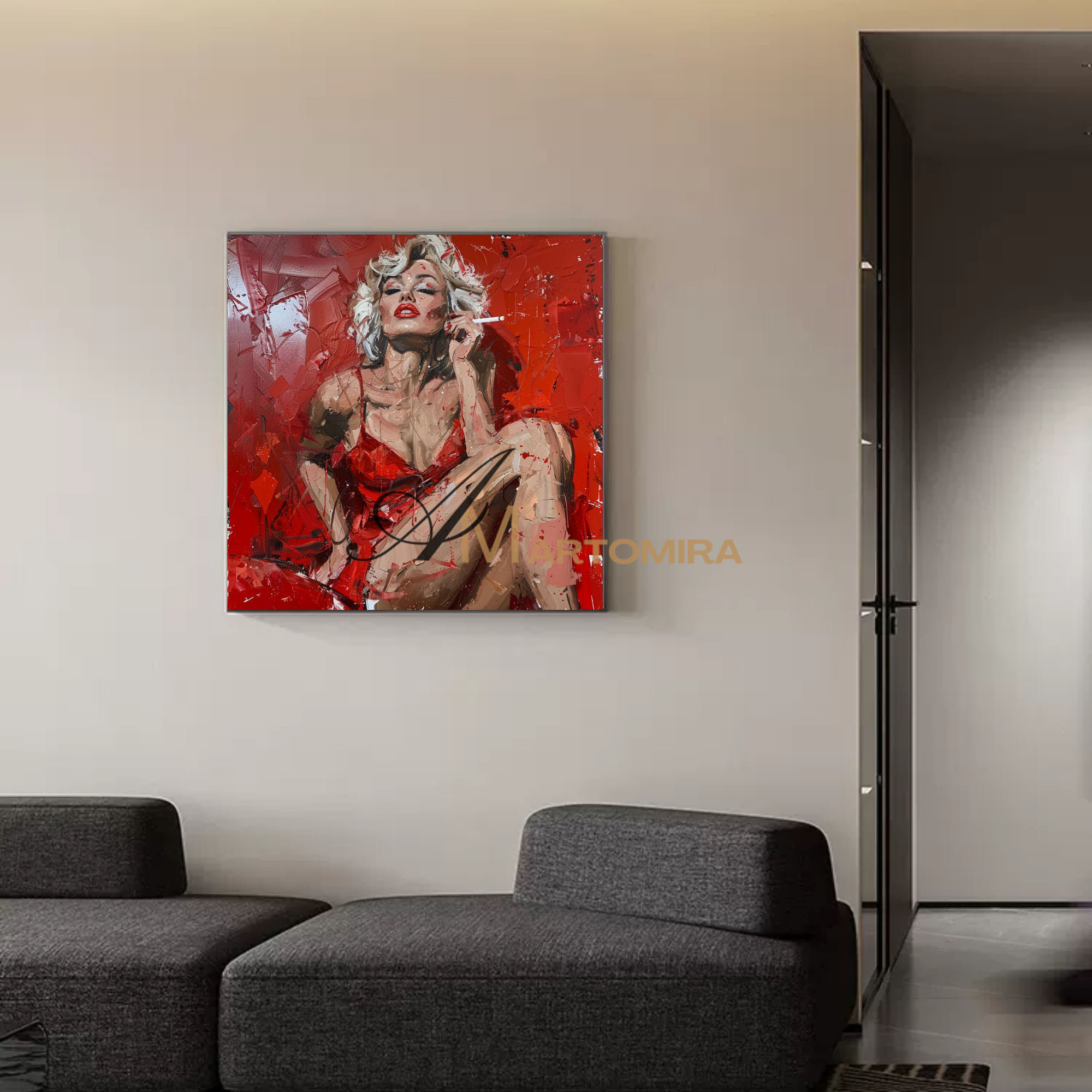 Ölgemälde | Sinnliche Frau | Gemälde einer Frau im roten Kleid | Abstrakte Kunst des weiblichen Körpers #AP049