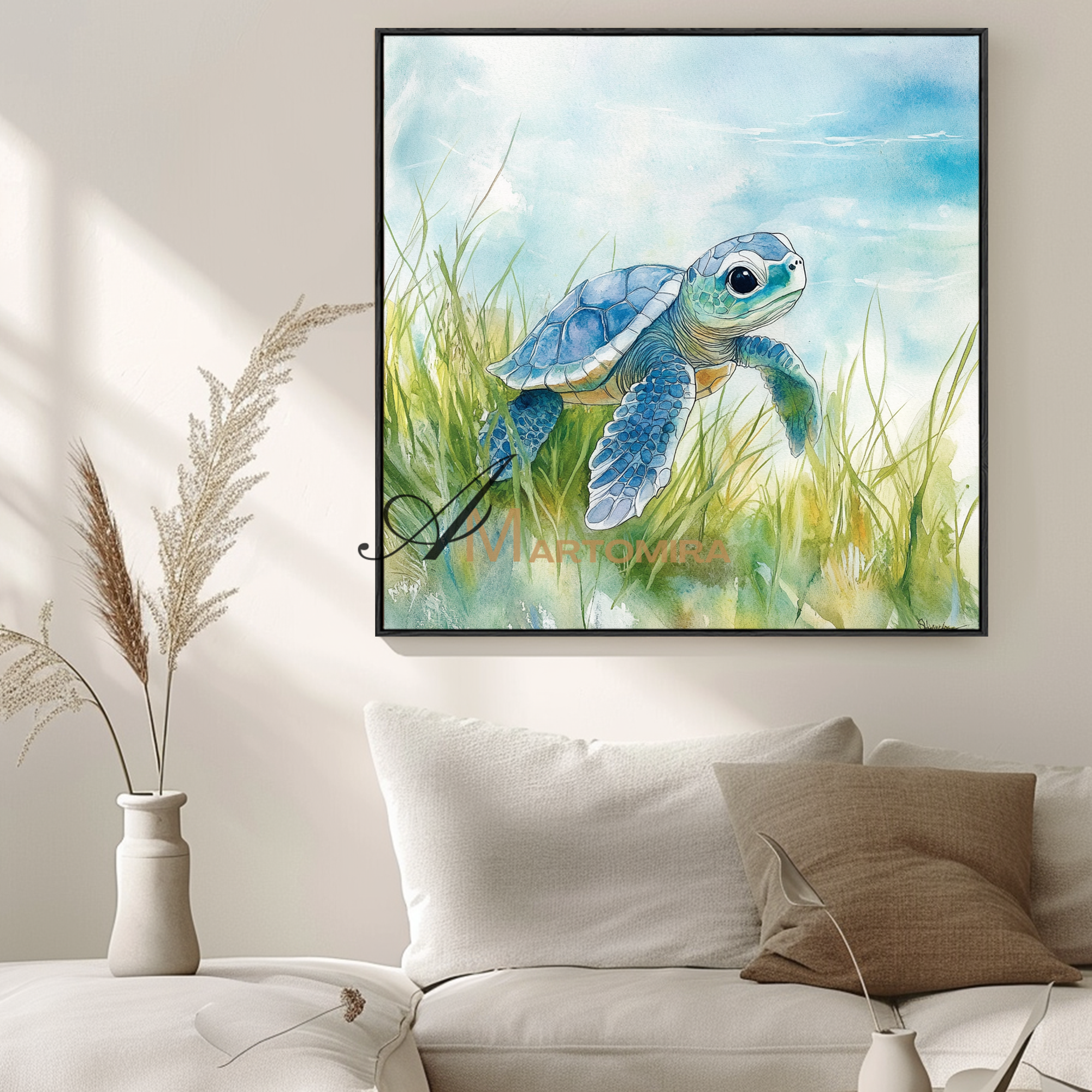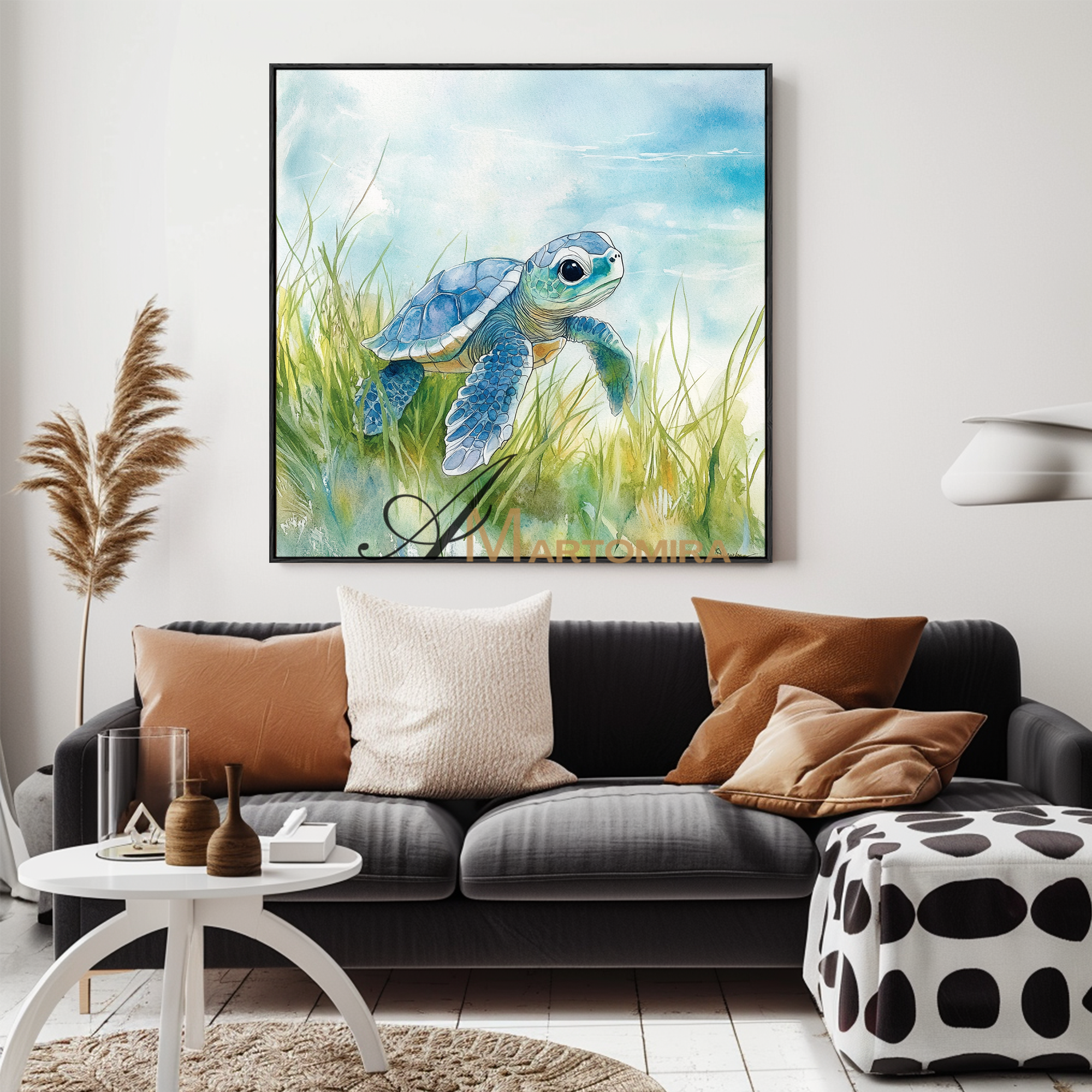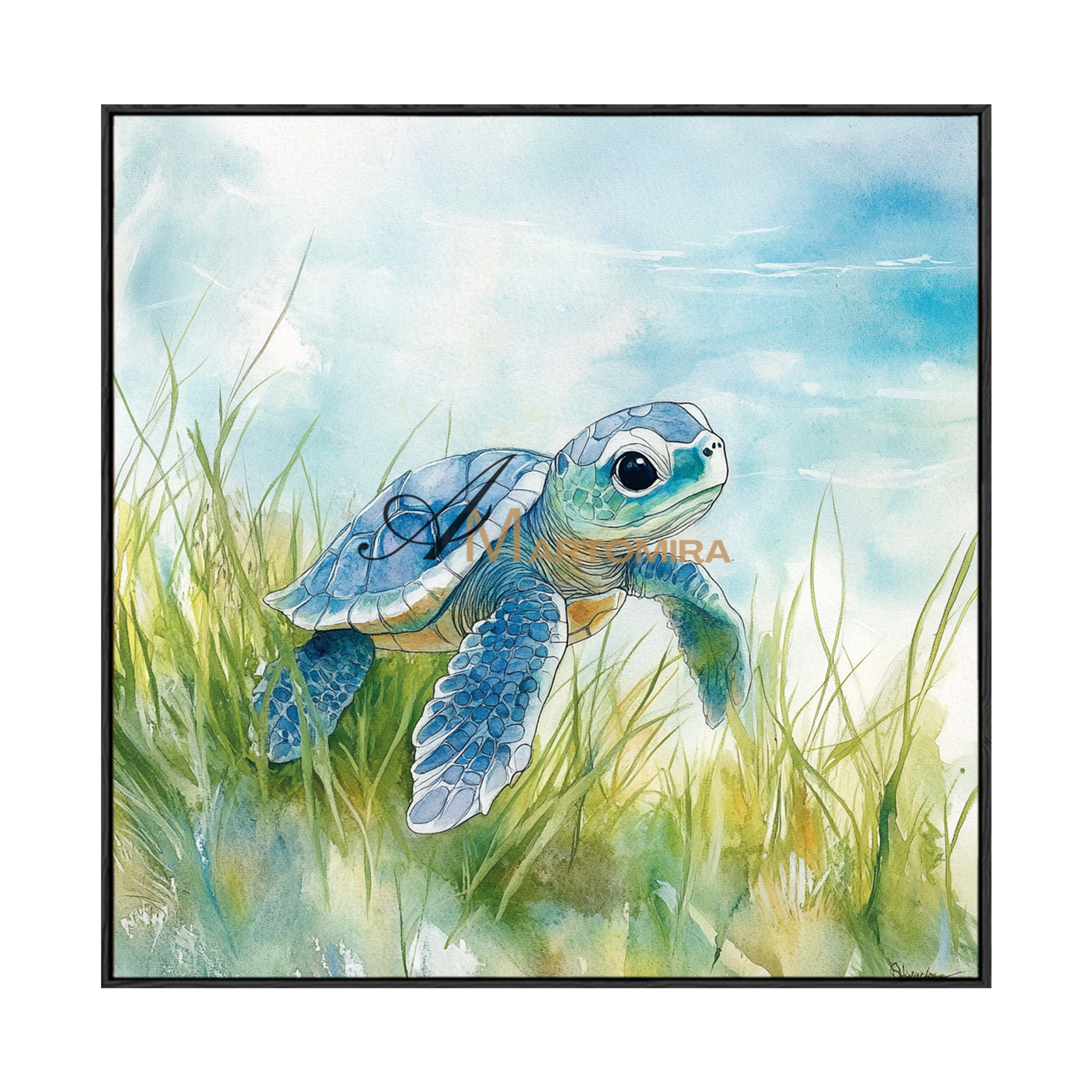 Meeresschildkröten-Gemälde | Aquarellmalerei einer Meeresschildkröte | Schwarz-Weiß-Gemälde | Gemälde fürs Wohnzimmer #CA091