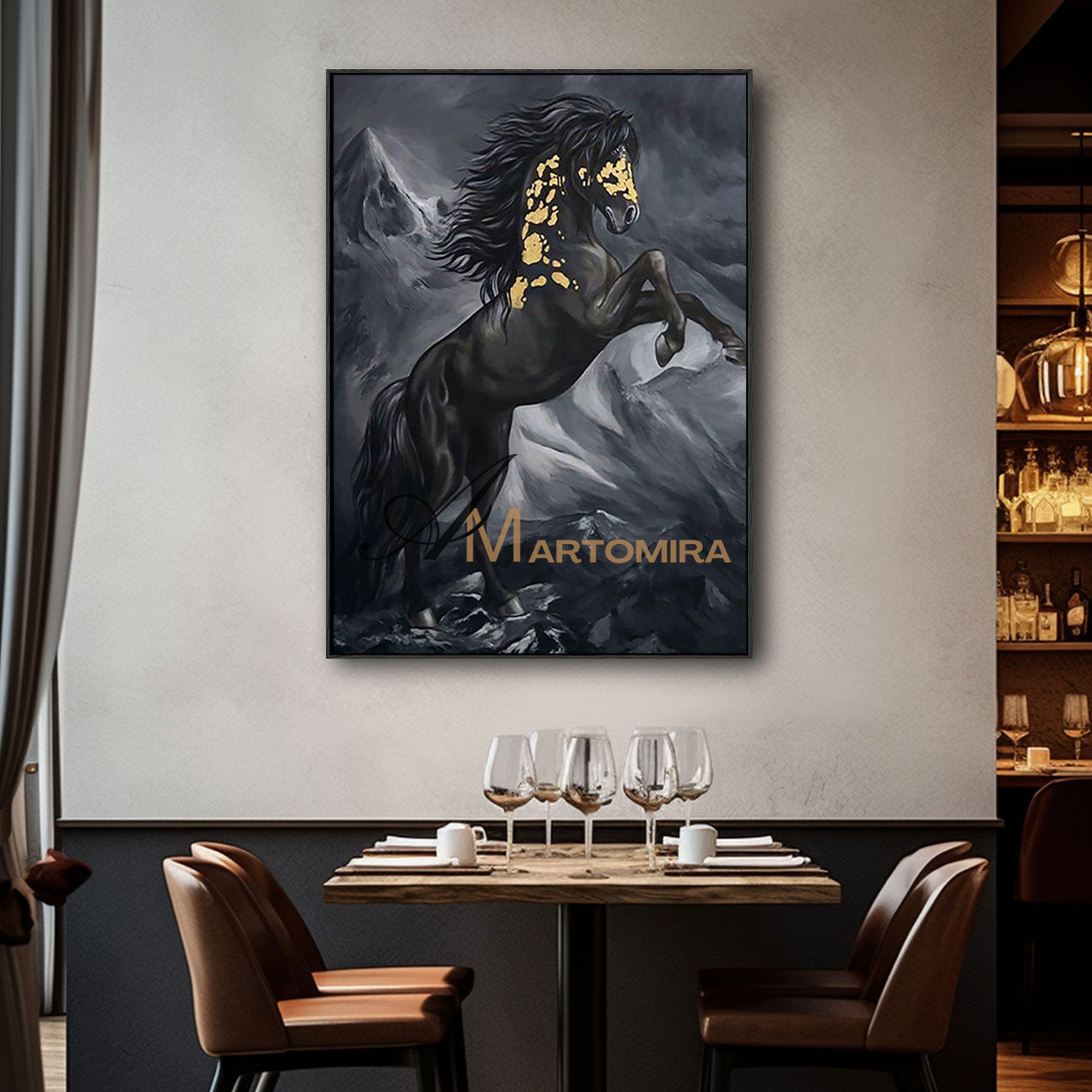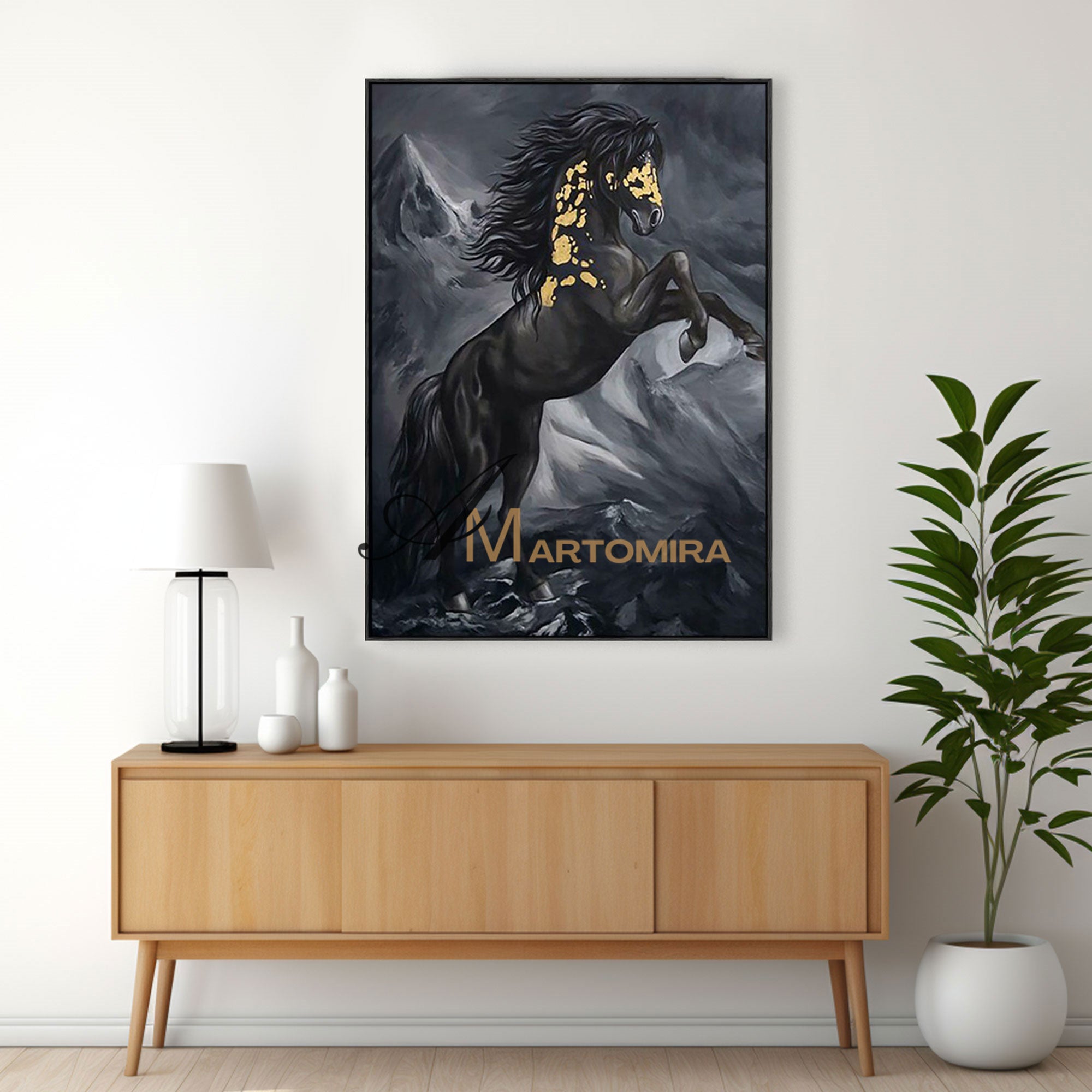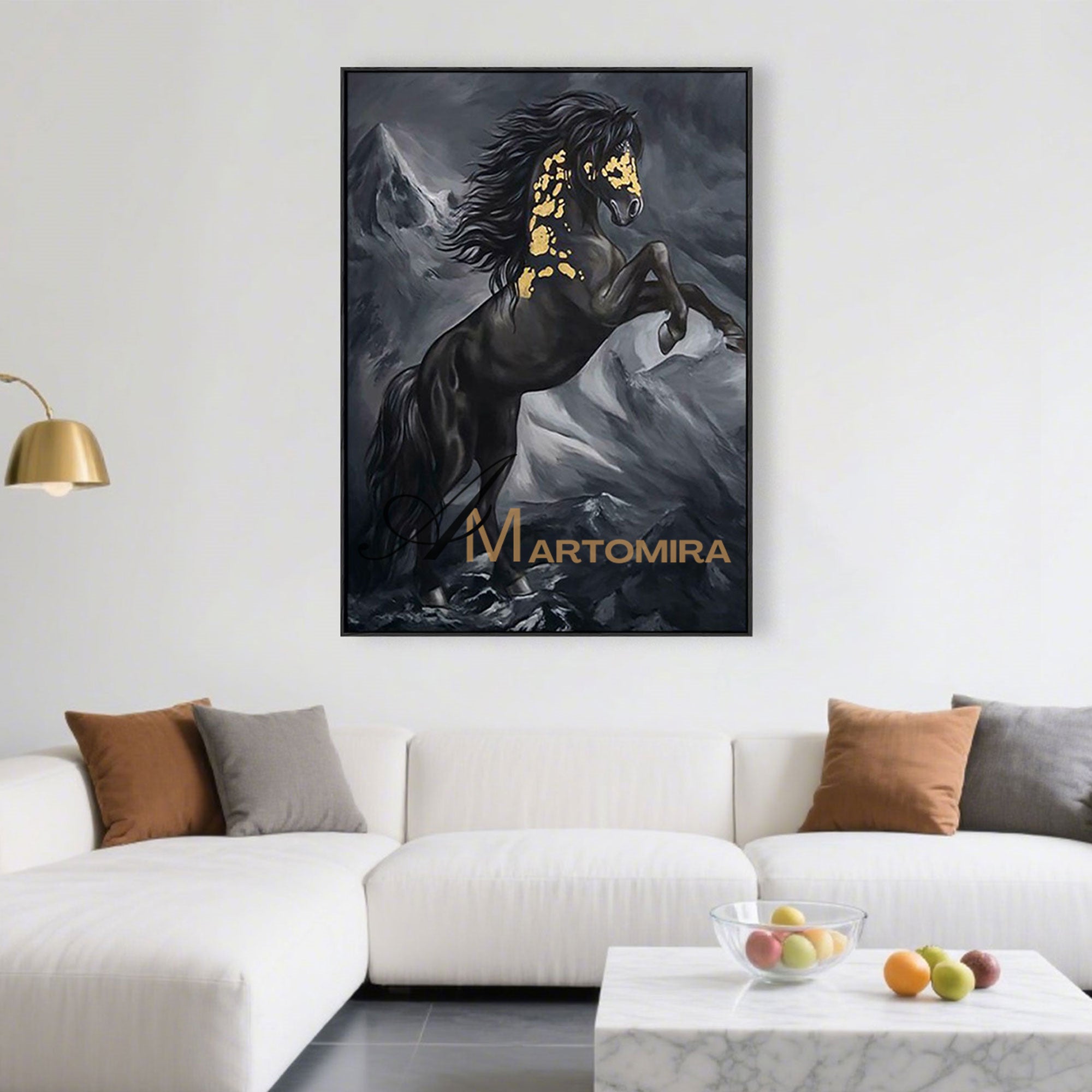 Pferde-Wandbilder | Pferdegemälde auf Leinwand | Tierbilder in Schwarz-Weiß | Wanddekoration #MF052