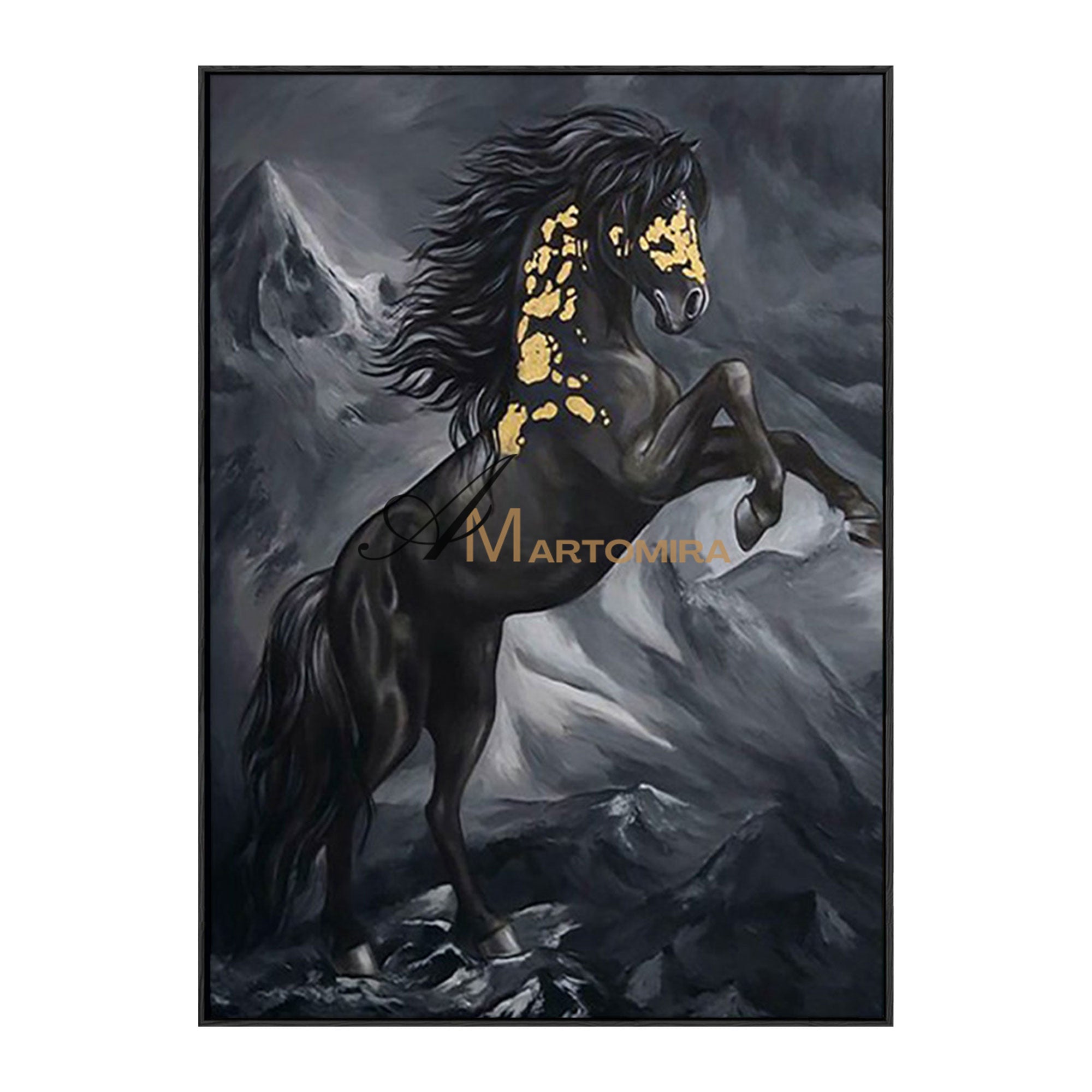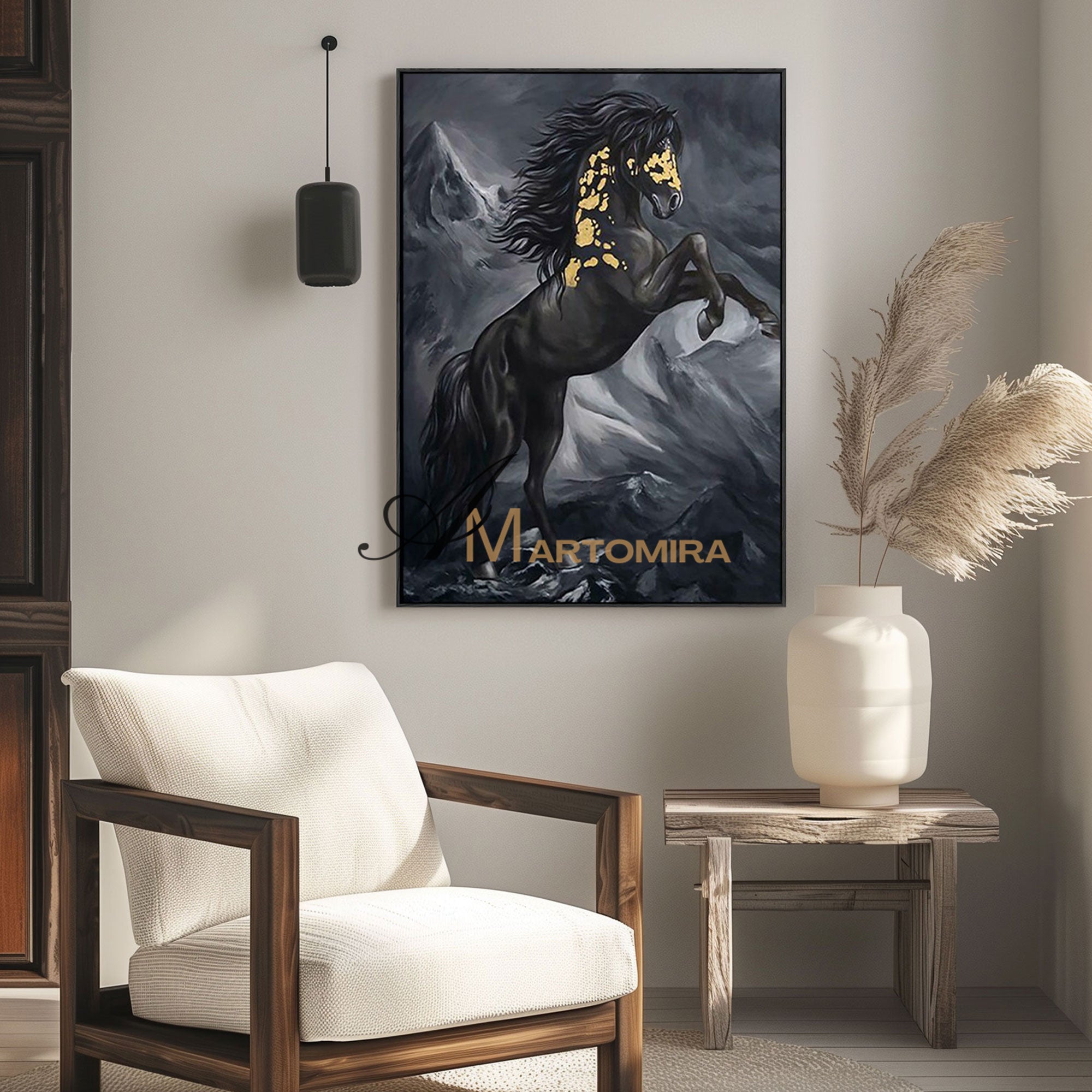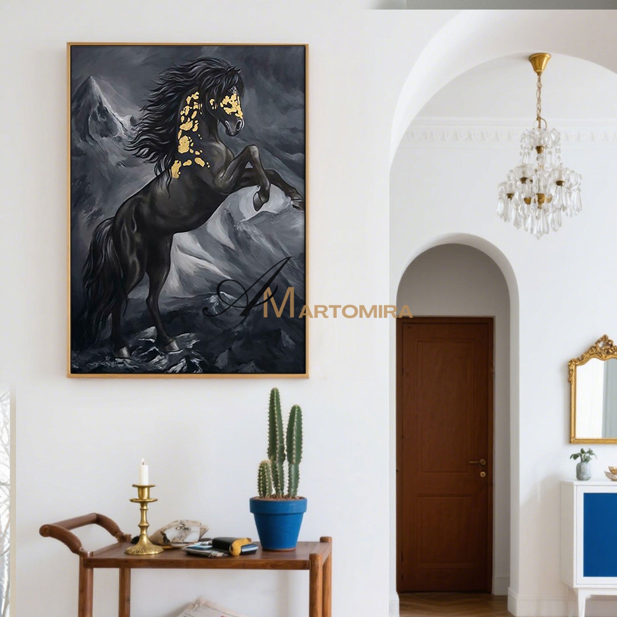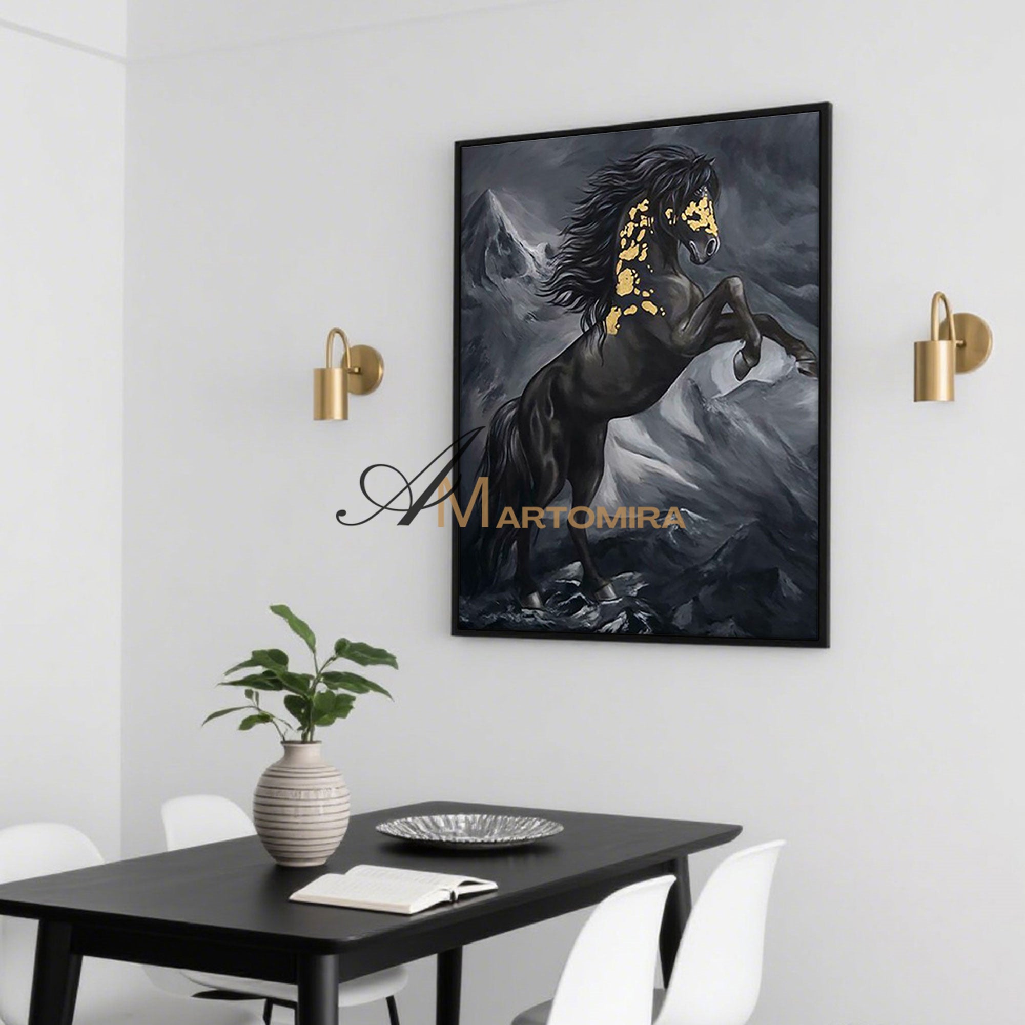 Pferde-Wandbilder | Pferdegemälde auf Leinwand | Tierbilder in Schwarz-Weiß | Wanddekoration #MF052