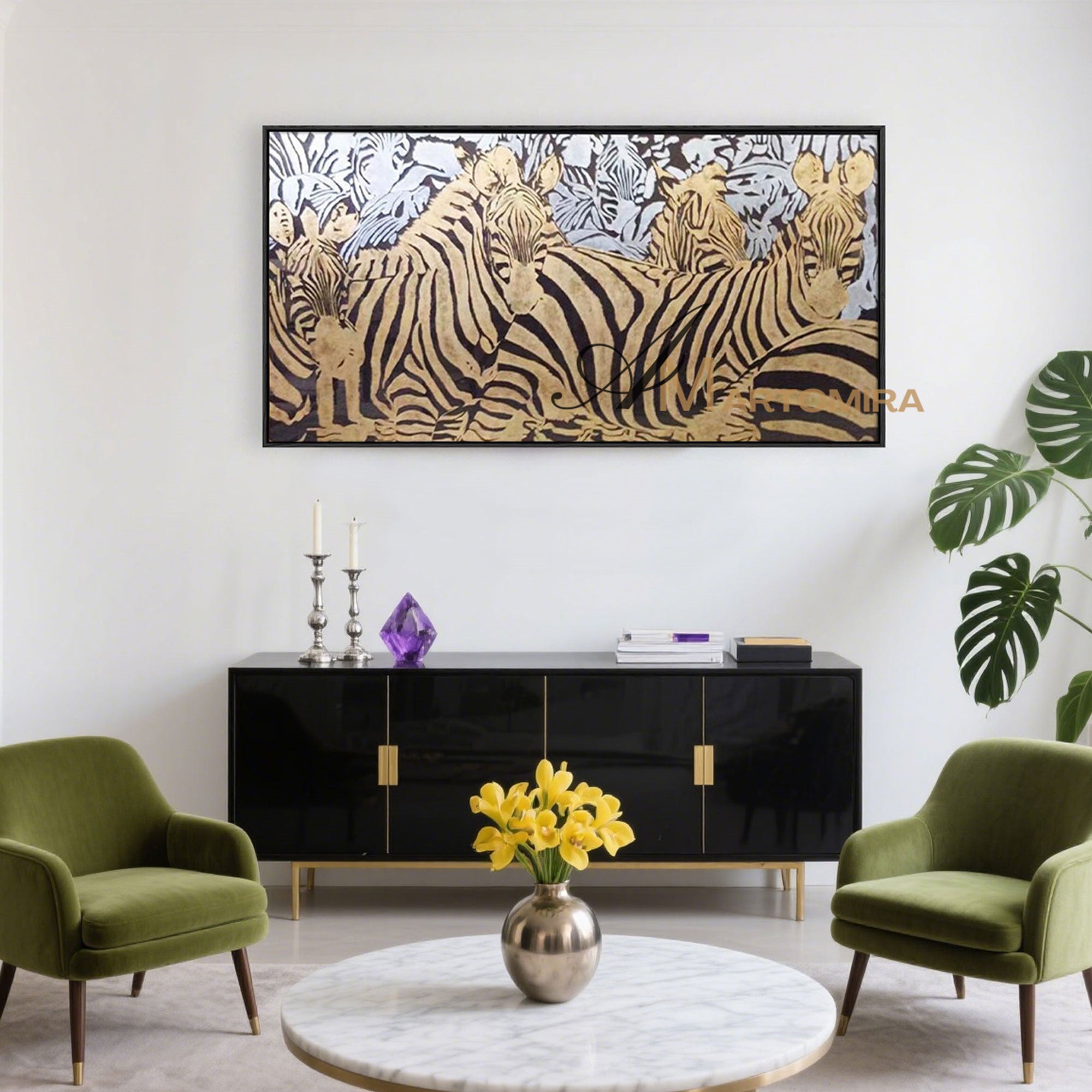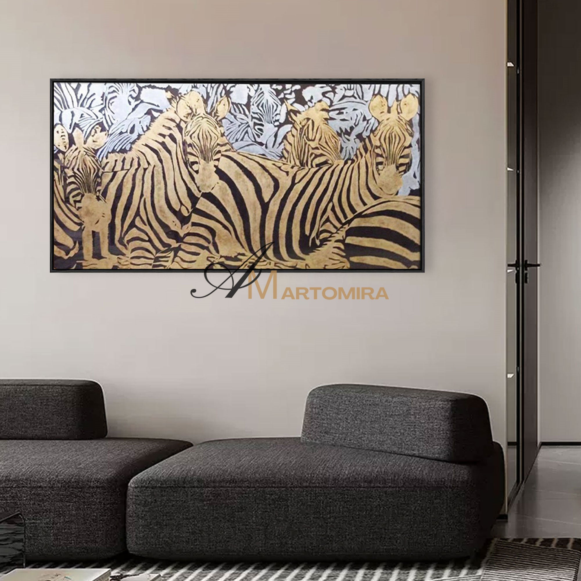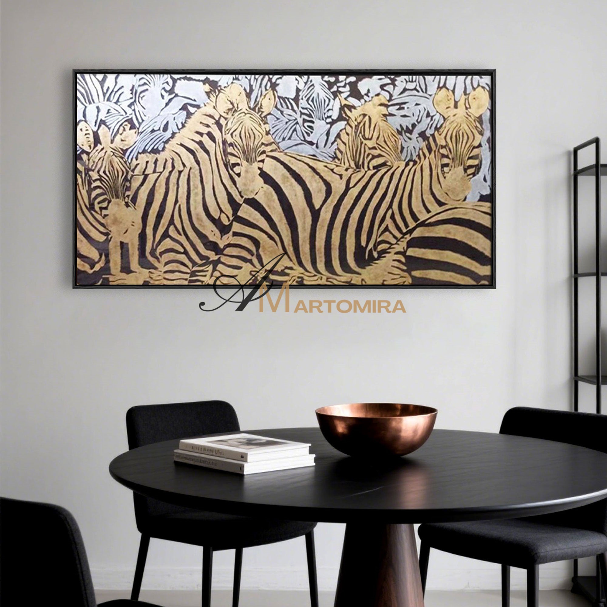 Tierbilder für die Wand | Zebra-Gemälde | Goldene Wandbilder | Große Tierbilder auf Leinwand | Wanddekoration #MF044