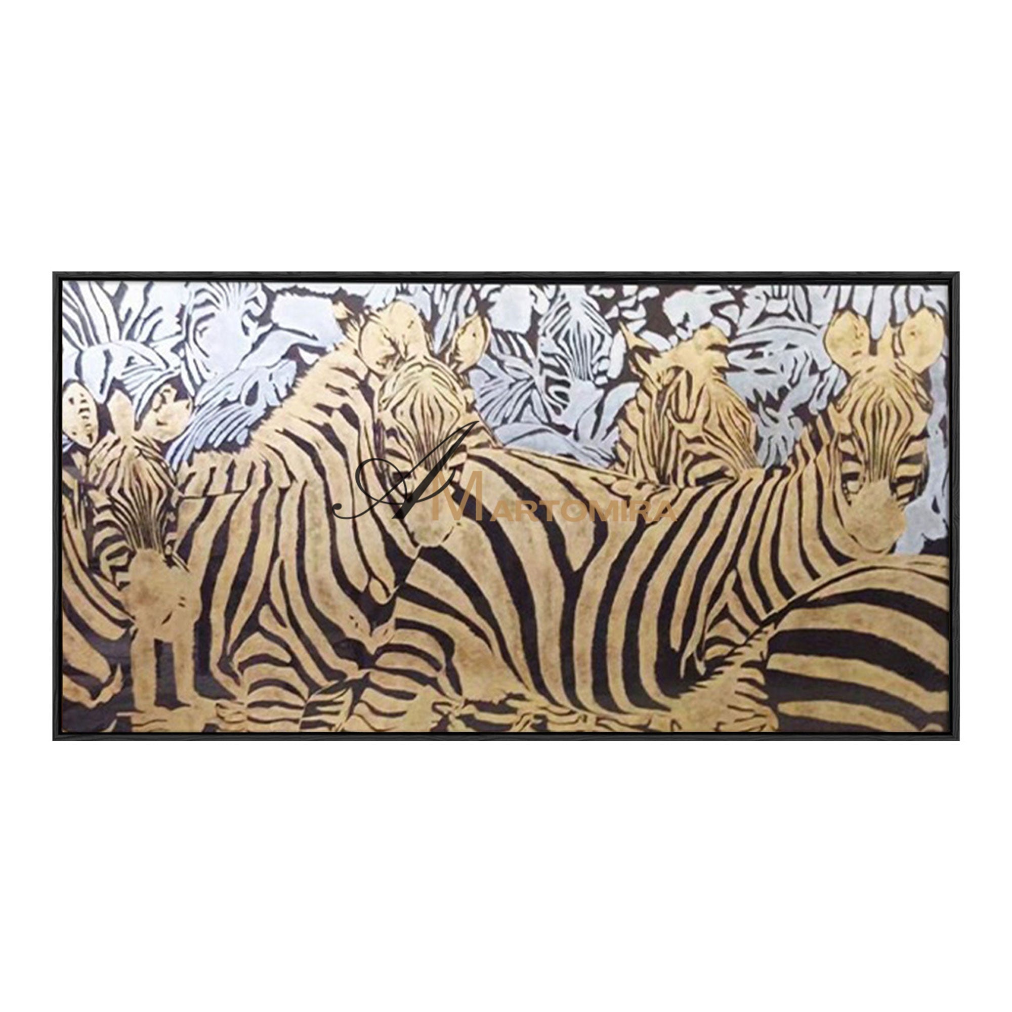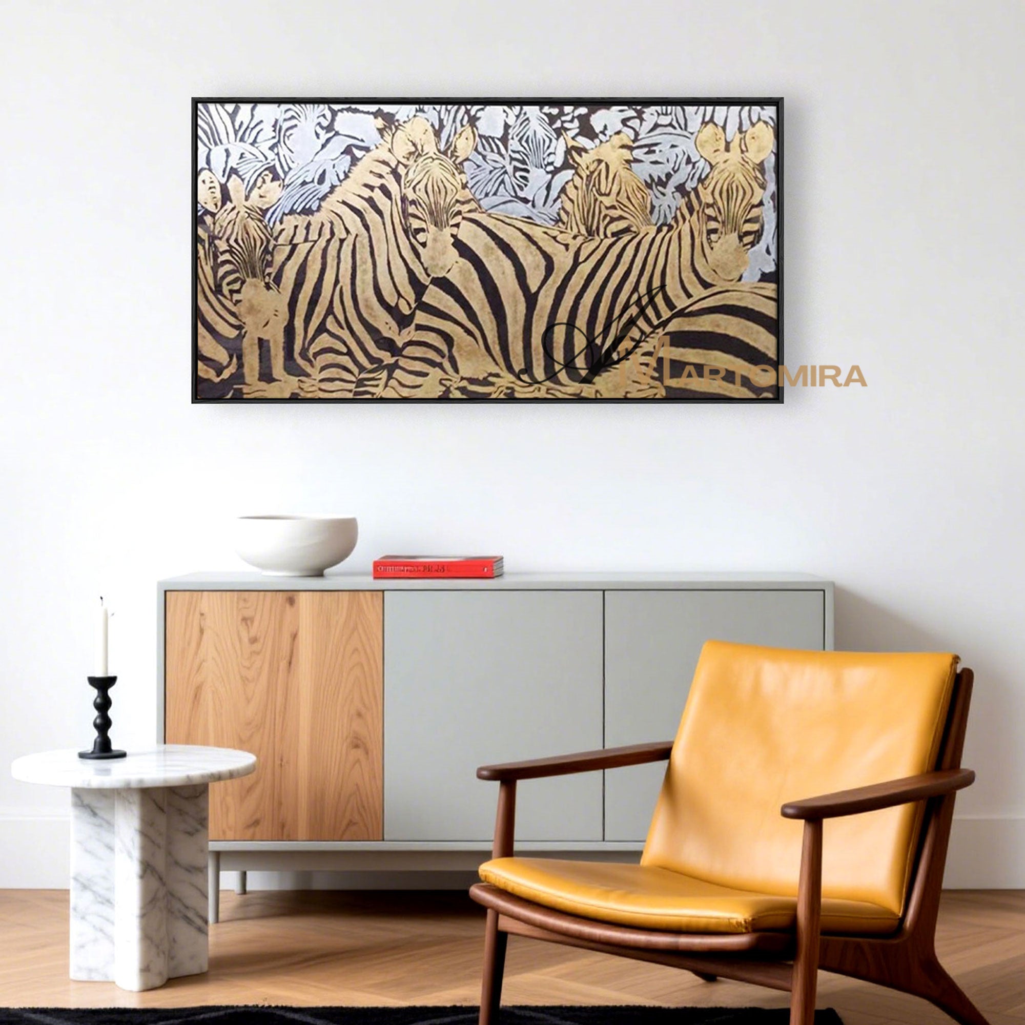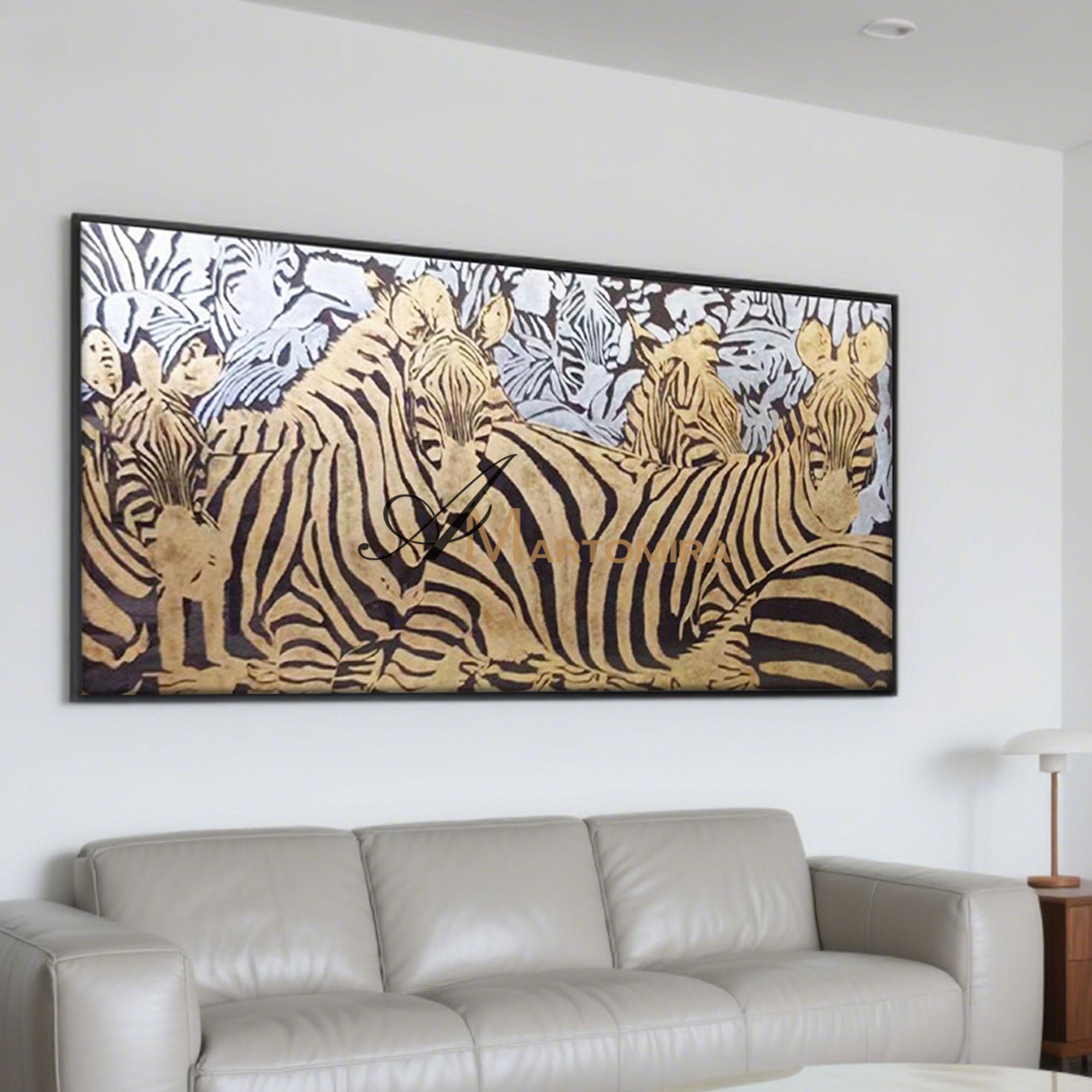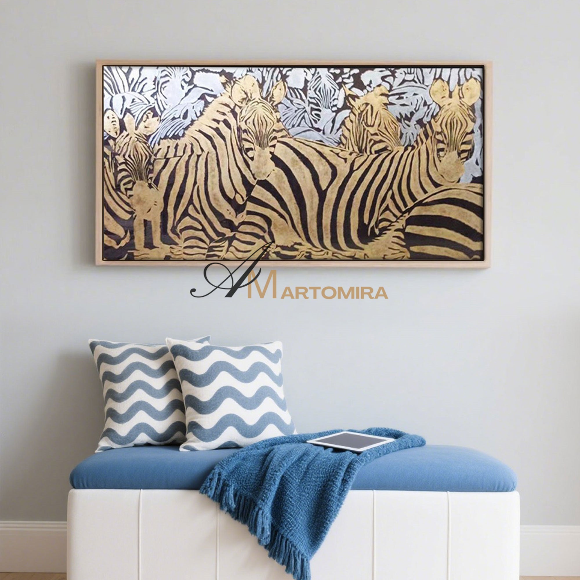 Tierbilder für die Wand | Zebra-Gemälde | Goldene Wandbilder | Große Tierbilder auf Leinwand | Wanddekoration #MF044