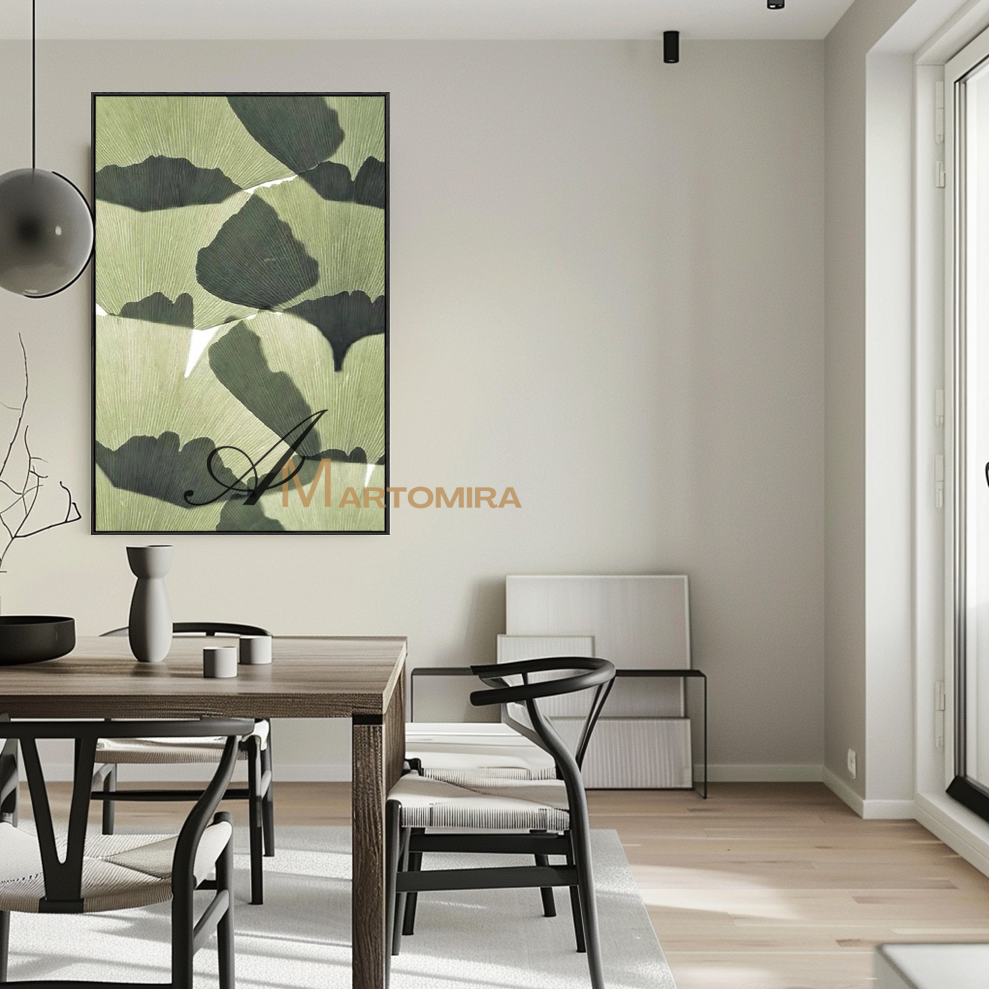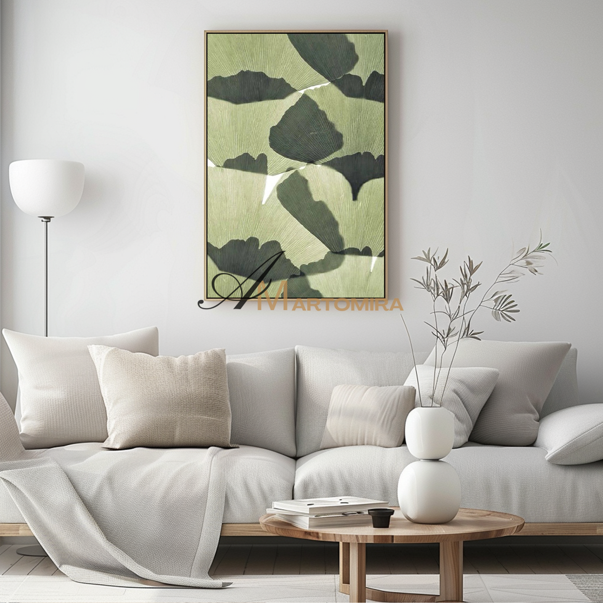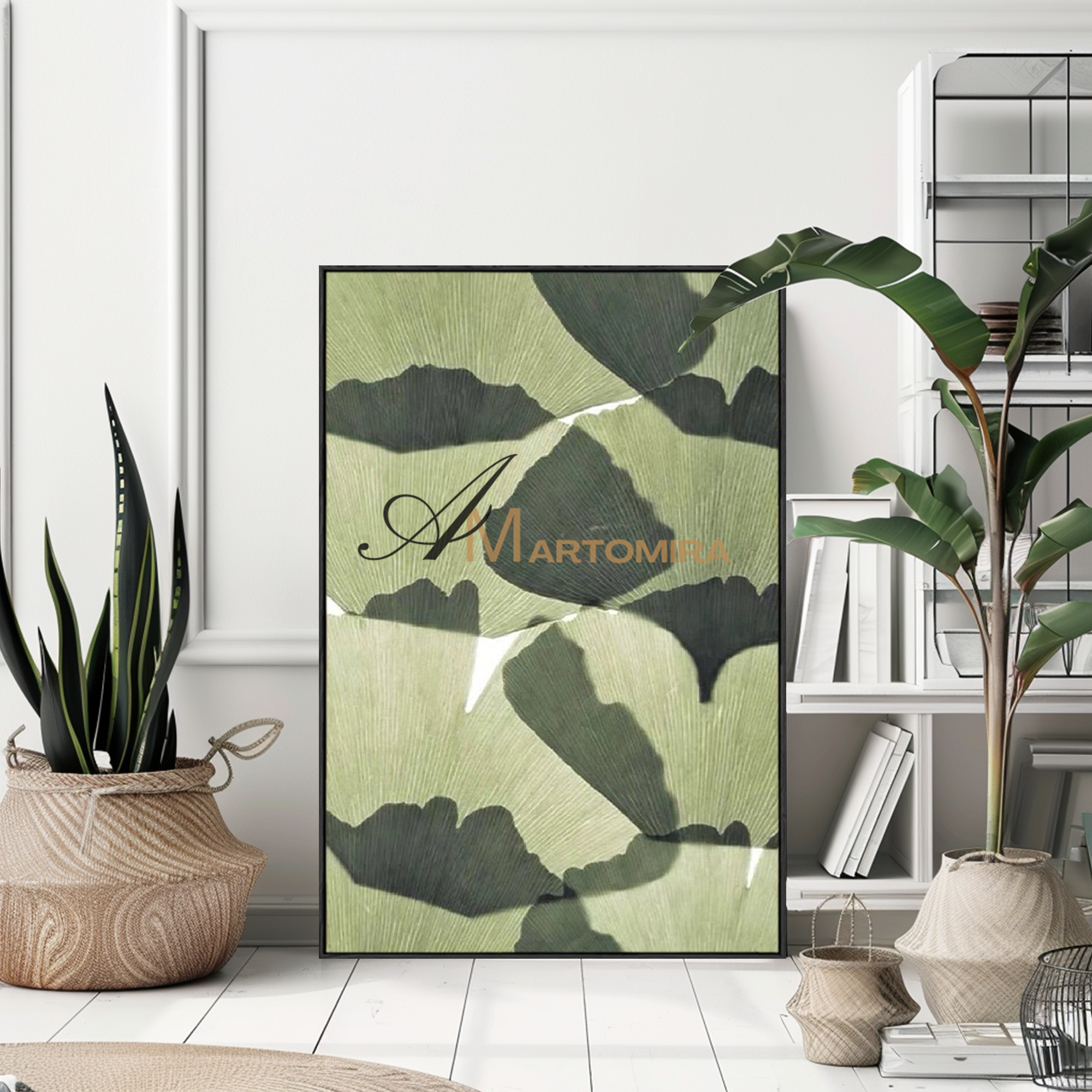 Leinwand-Wanddeko | Grüne Wandkunst | Ginkgoblatt-Wandbild | Extra großes gerahmtes Wandbild #MF114