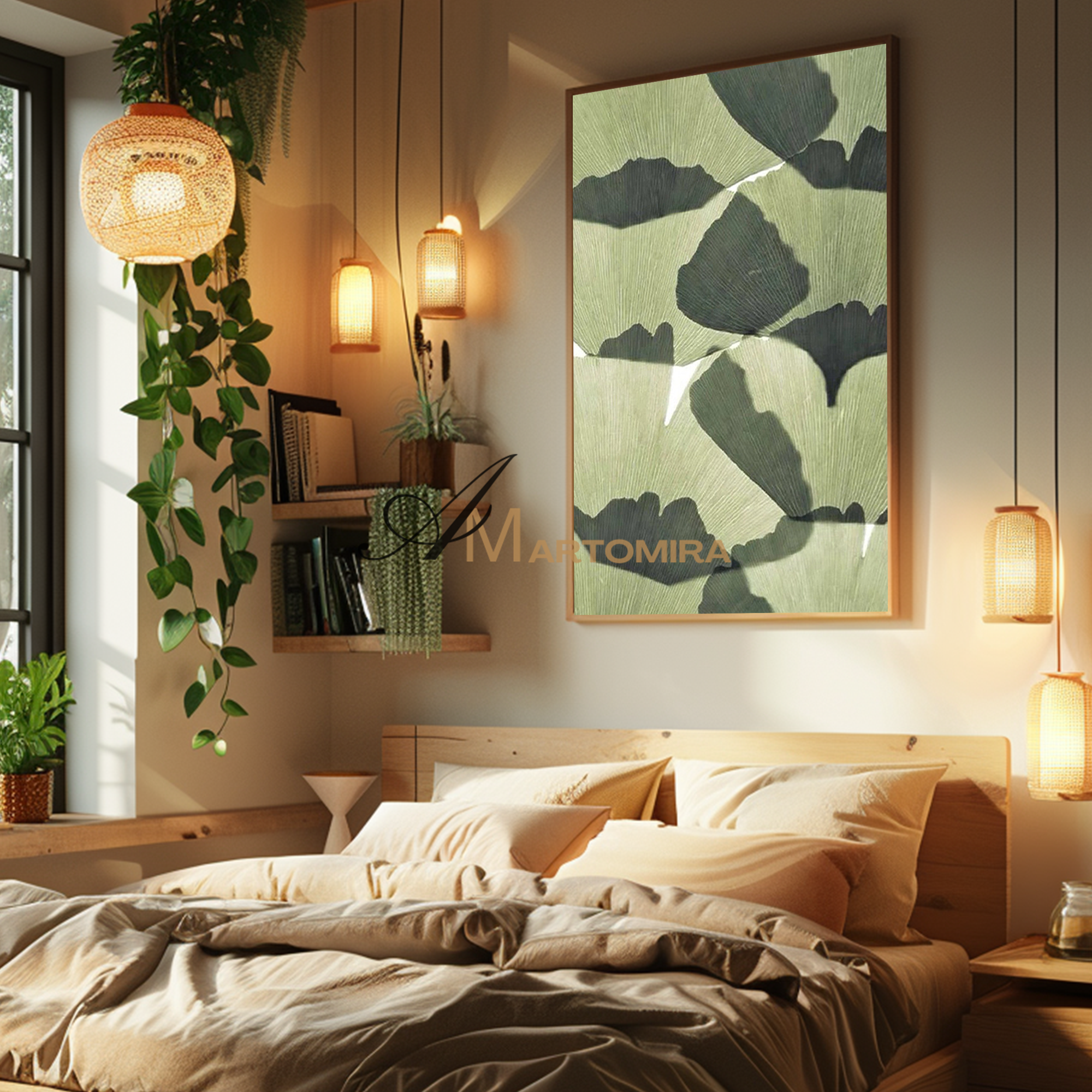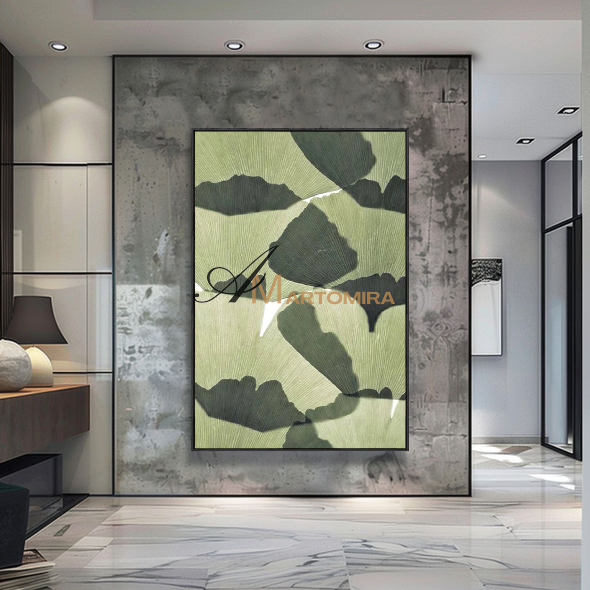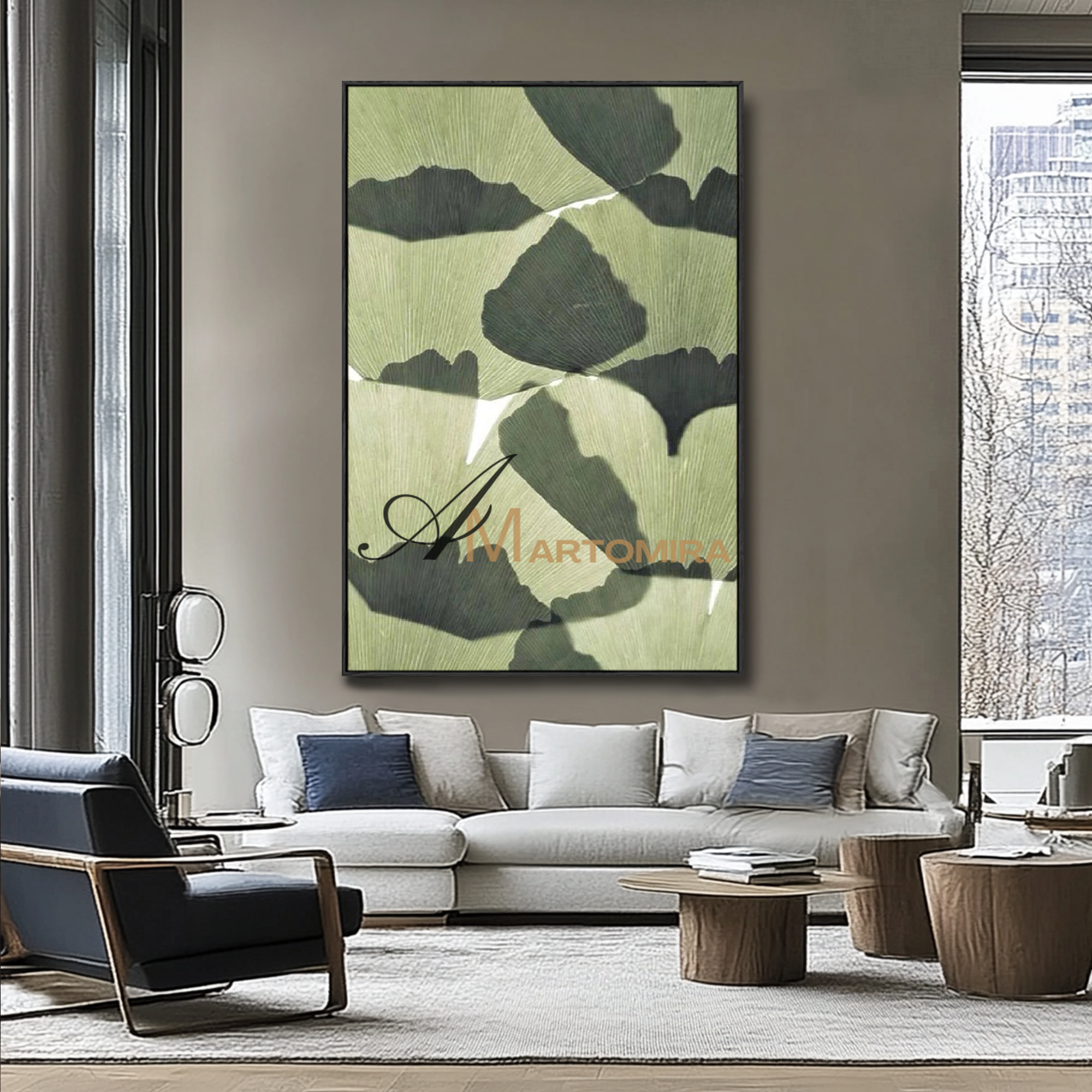 Leinwand-Wanddeko | Grüne Wandkunst | Ginkgoblatt-Wandbild | Extra großes gerahmtes Wandbild #MF114