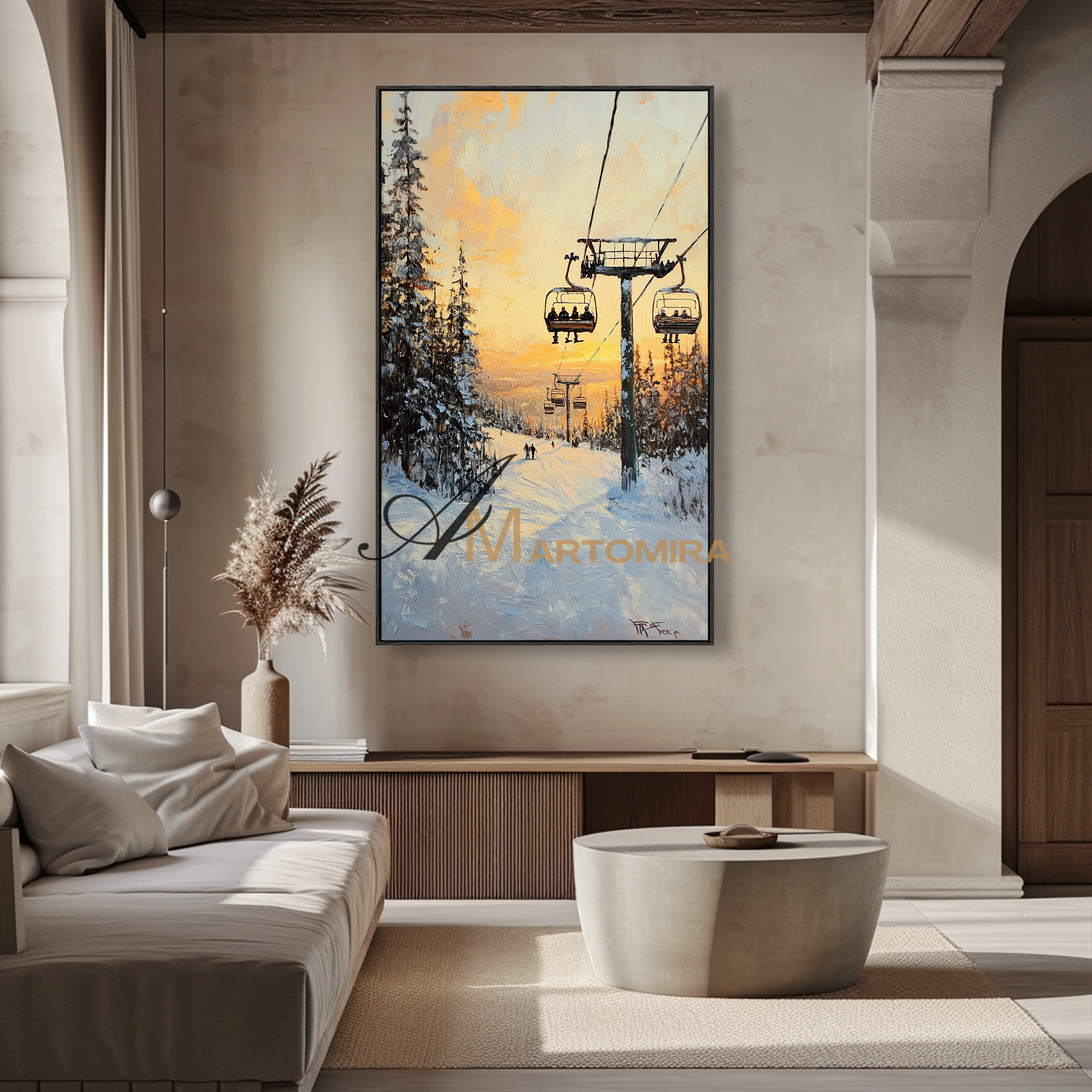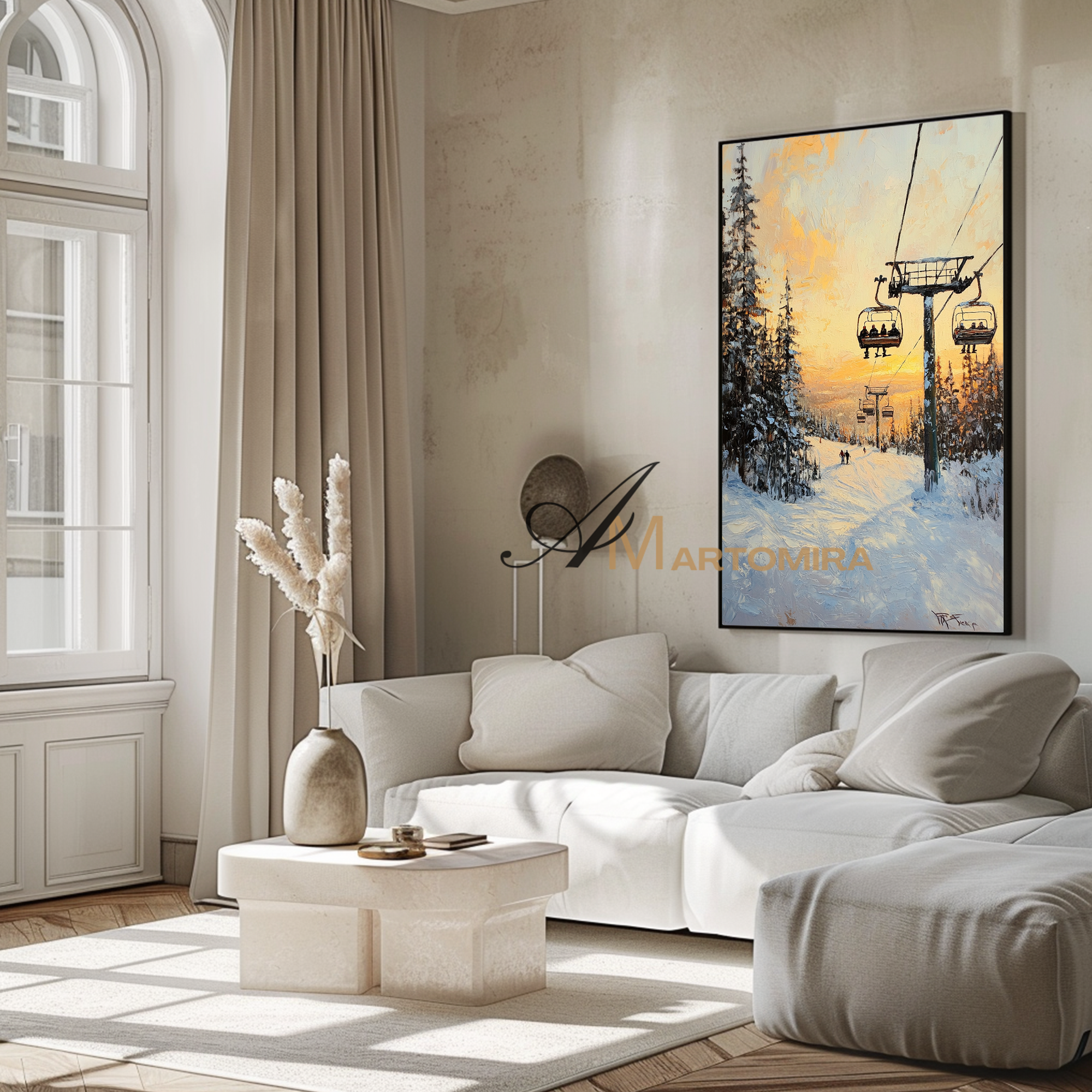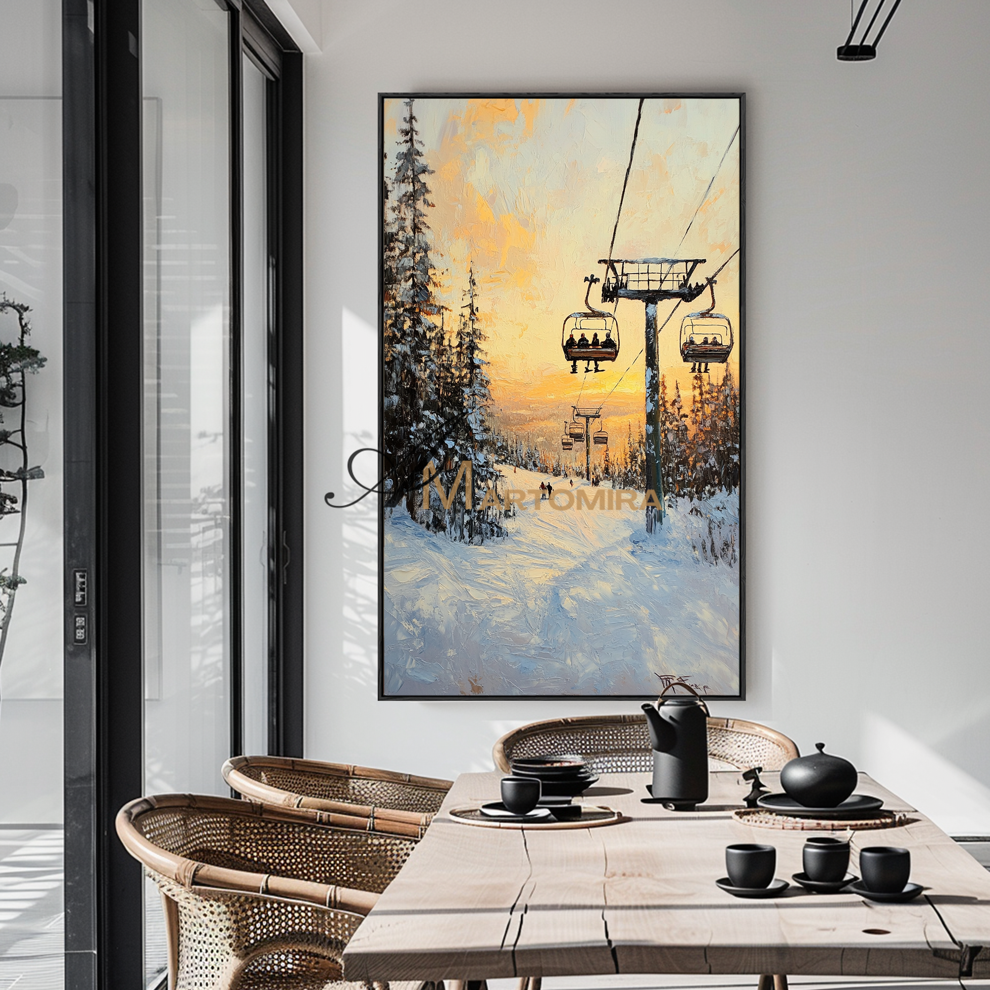 Landschaftsgemälde | Sonnenuntergangslandschaft | Winterlandschaft als Wandbild | Großes Gemälde fürs Wohnzimmer #CL099