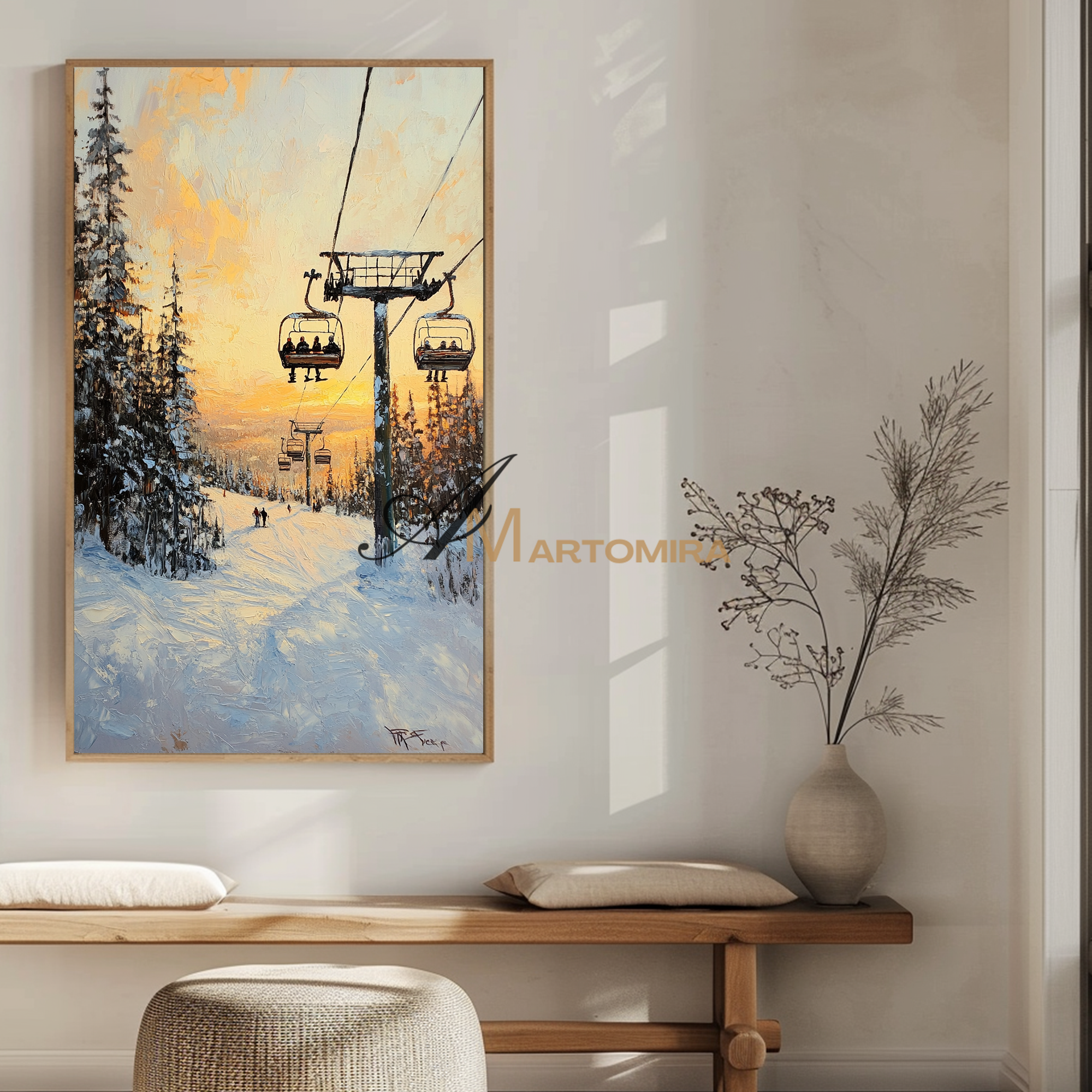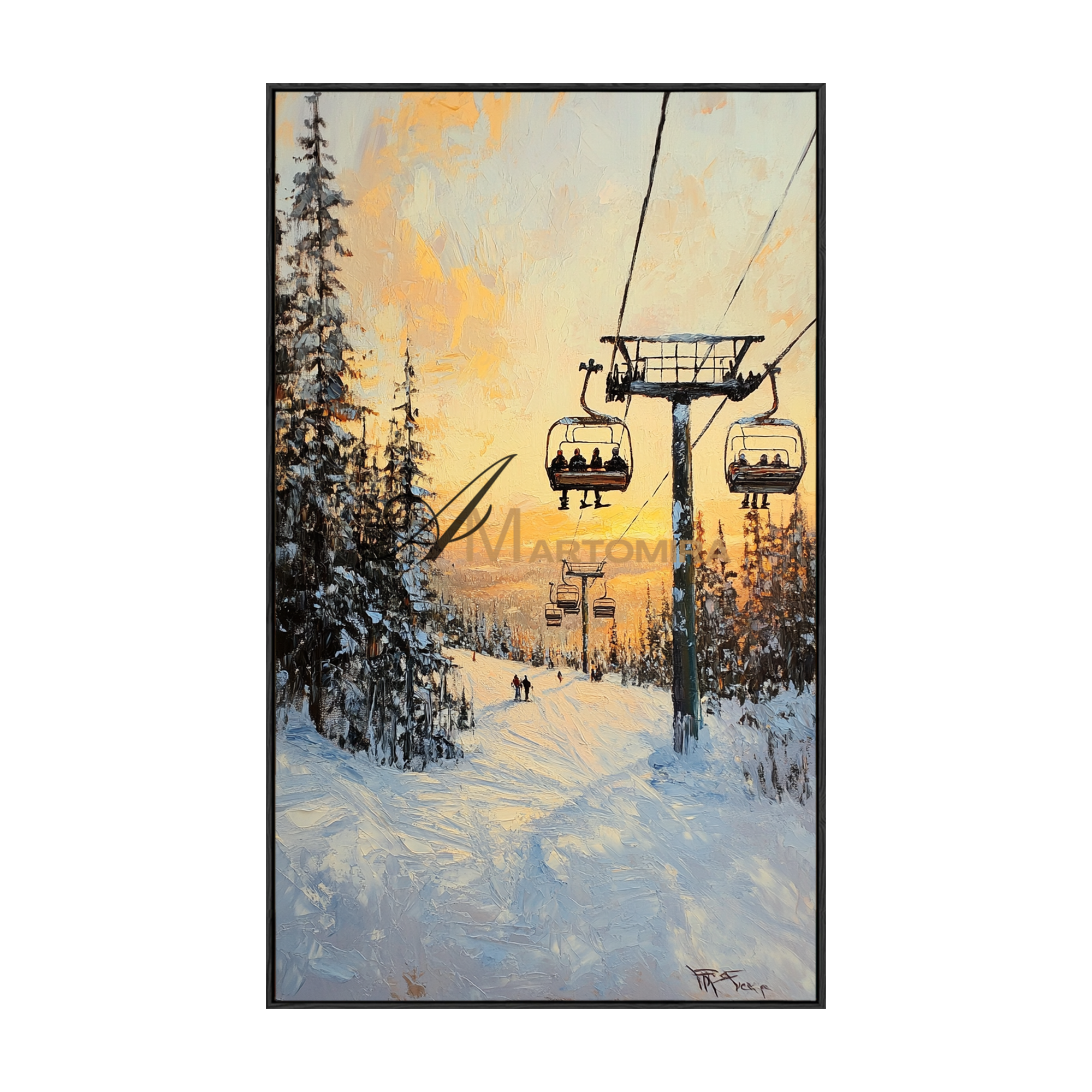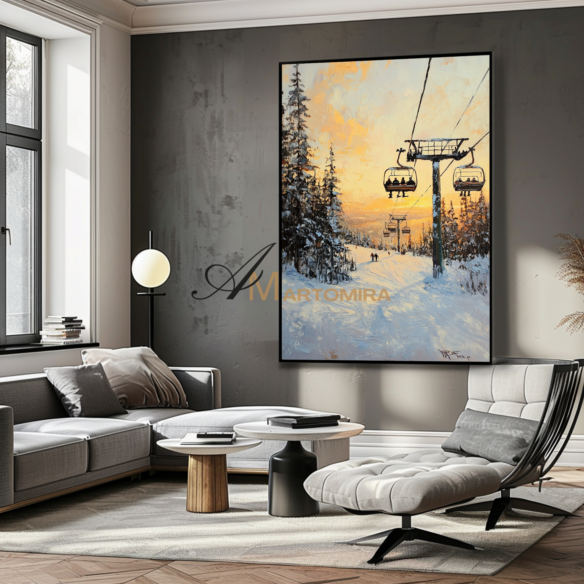 Landschaftsgemälde | Sonnenuntergangslandschaft | Winterlandschaft als Wandbild | Großes Gemälde fürs Wohnzimmer #CL099