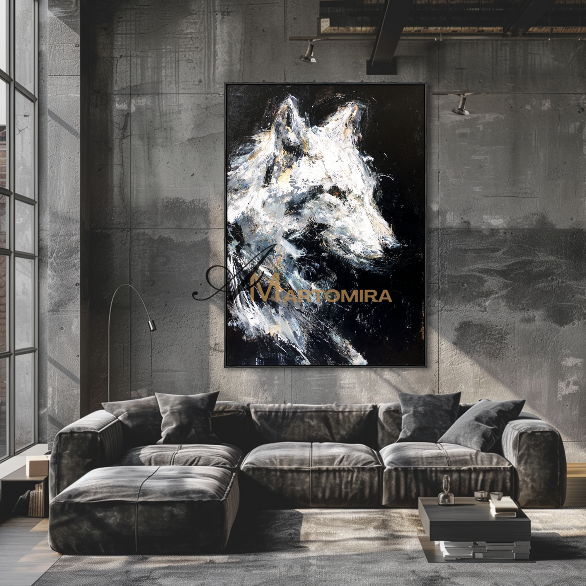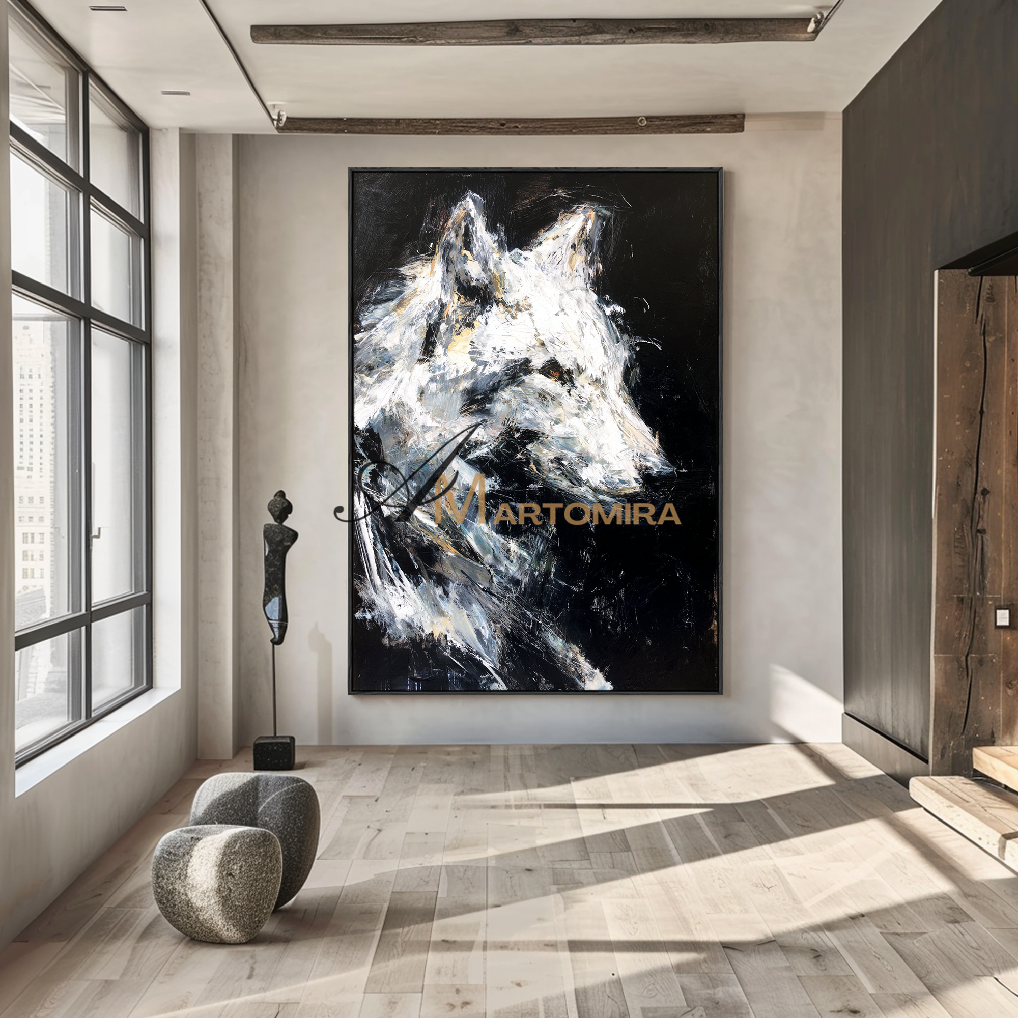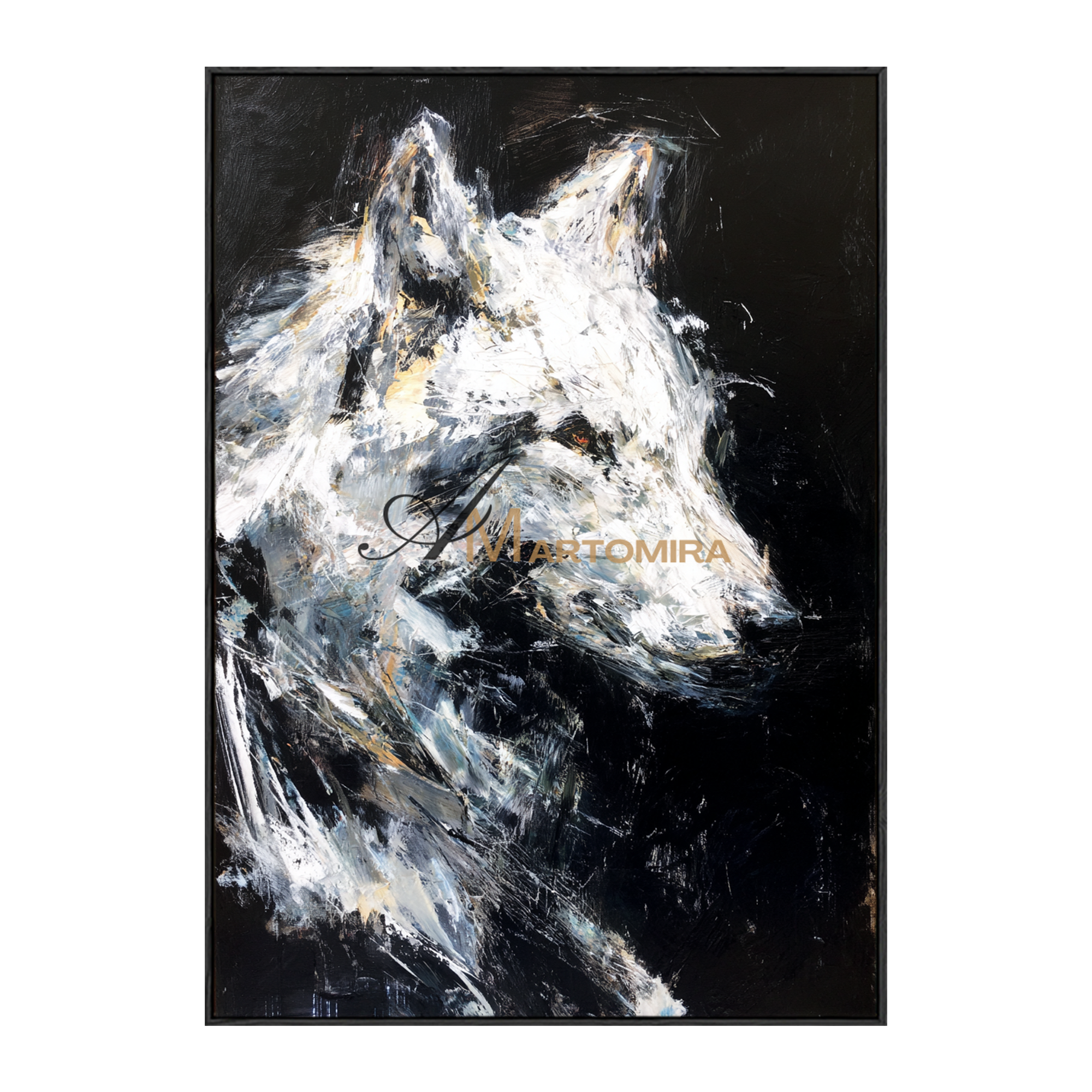 Tierkunst für die Wand | Gemälde eines Wolfes | Schwarz-Weiß-Leinwandbild | Moderne Wanddekoration #CA086