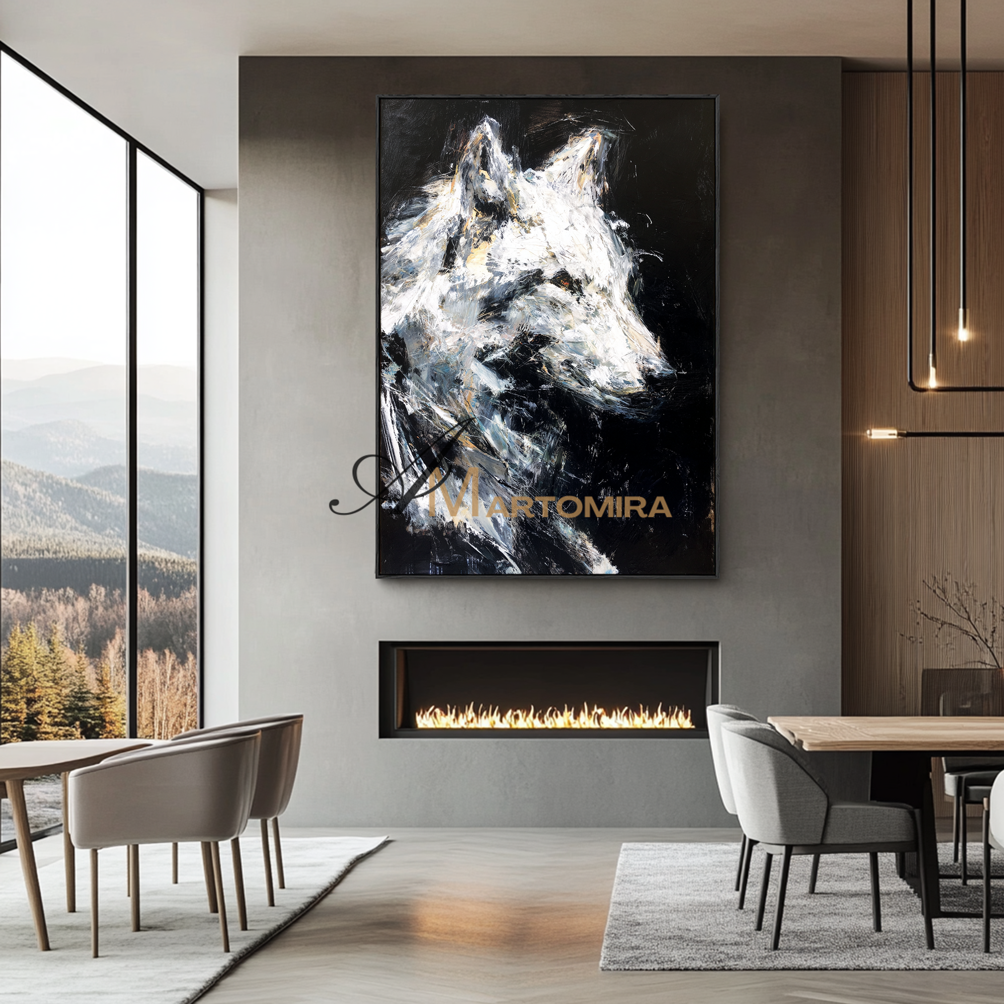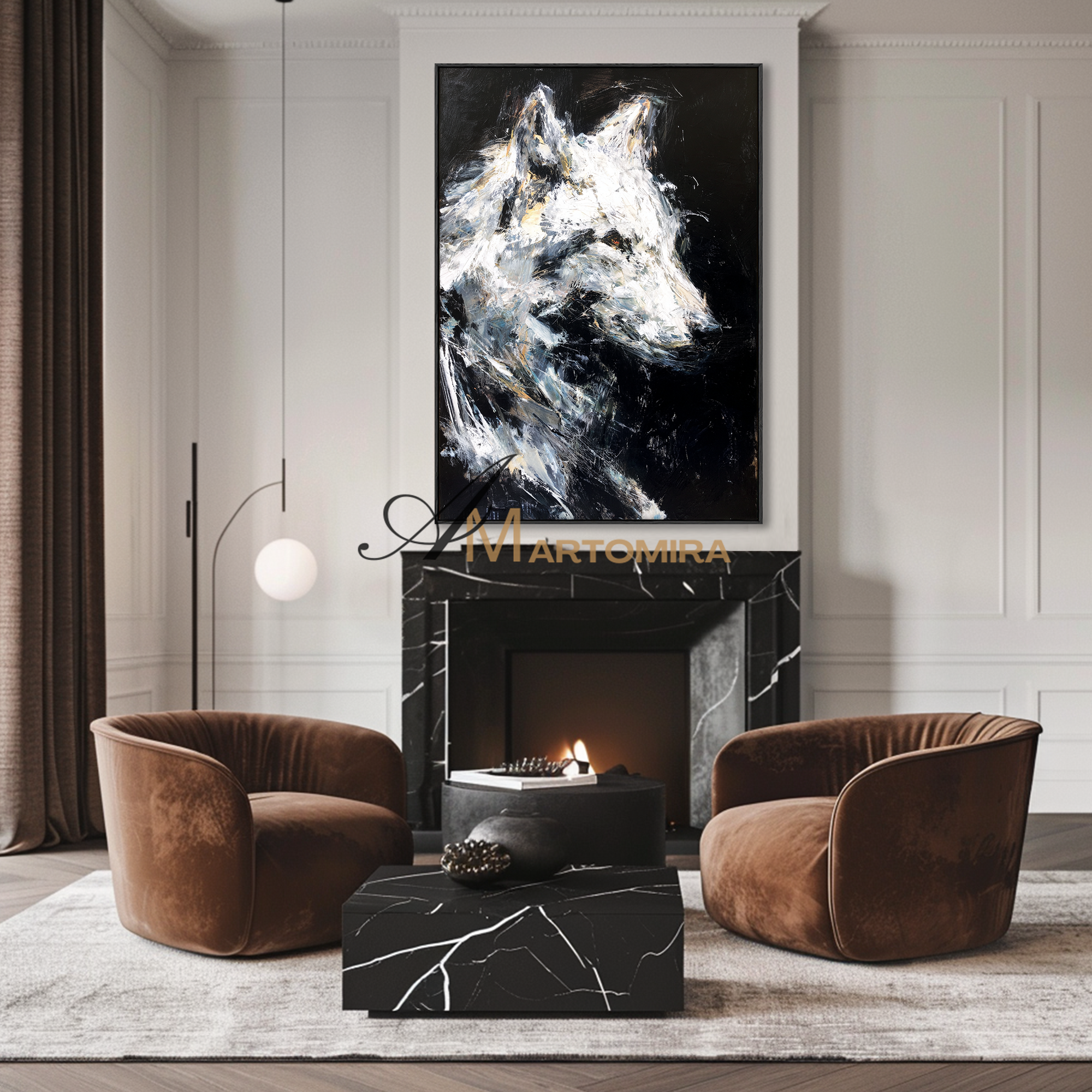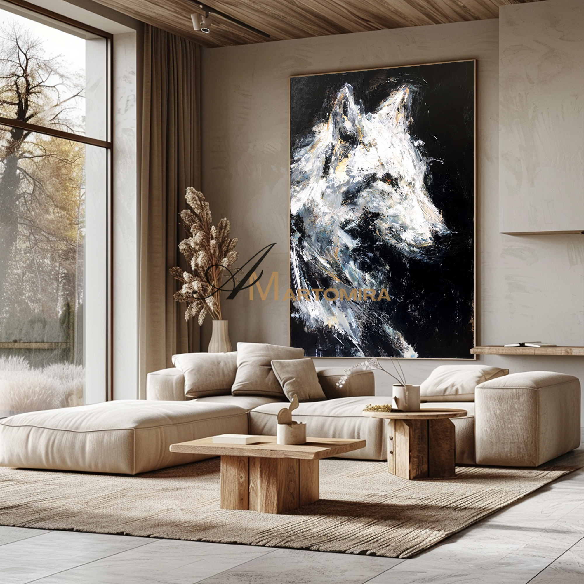 Tierkunst für die Wand | Gemälde eines Wolfes | Schwarz-Weiß-Leinwandbild | Moderne Wanddekoration #CA086