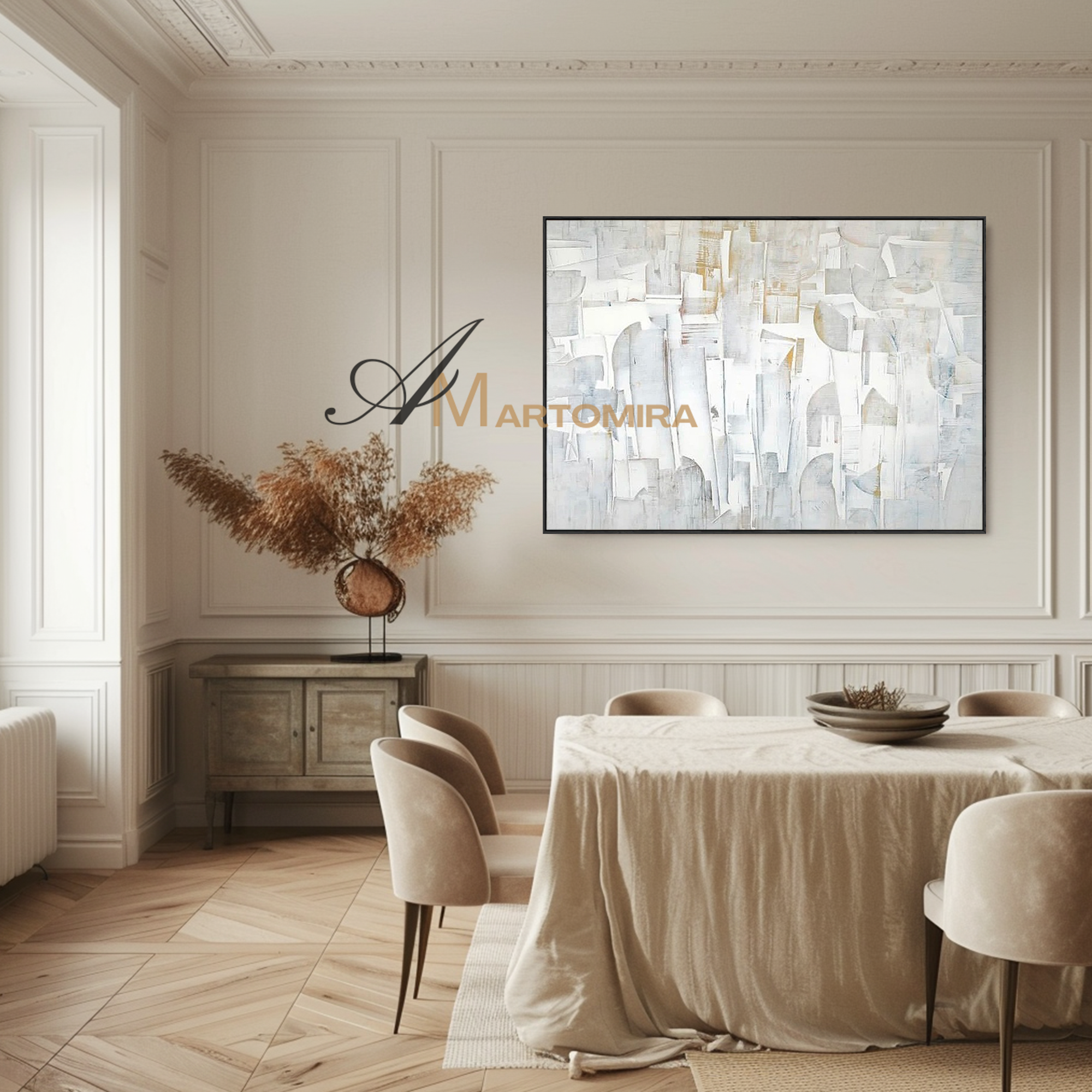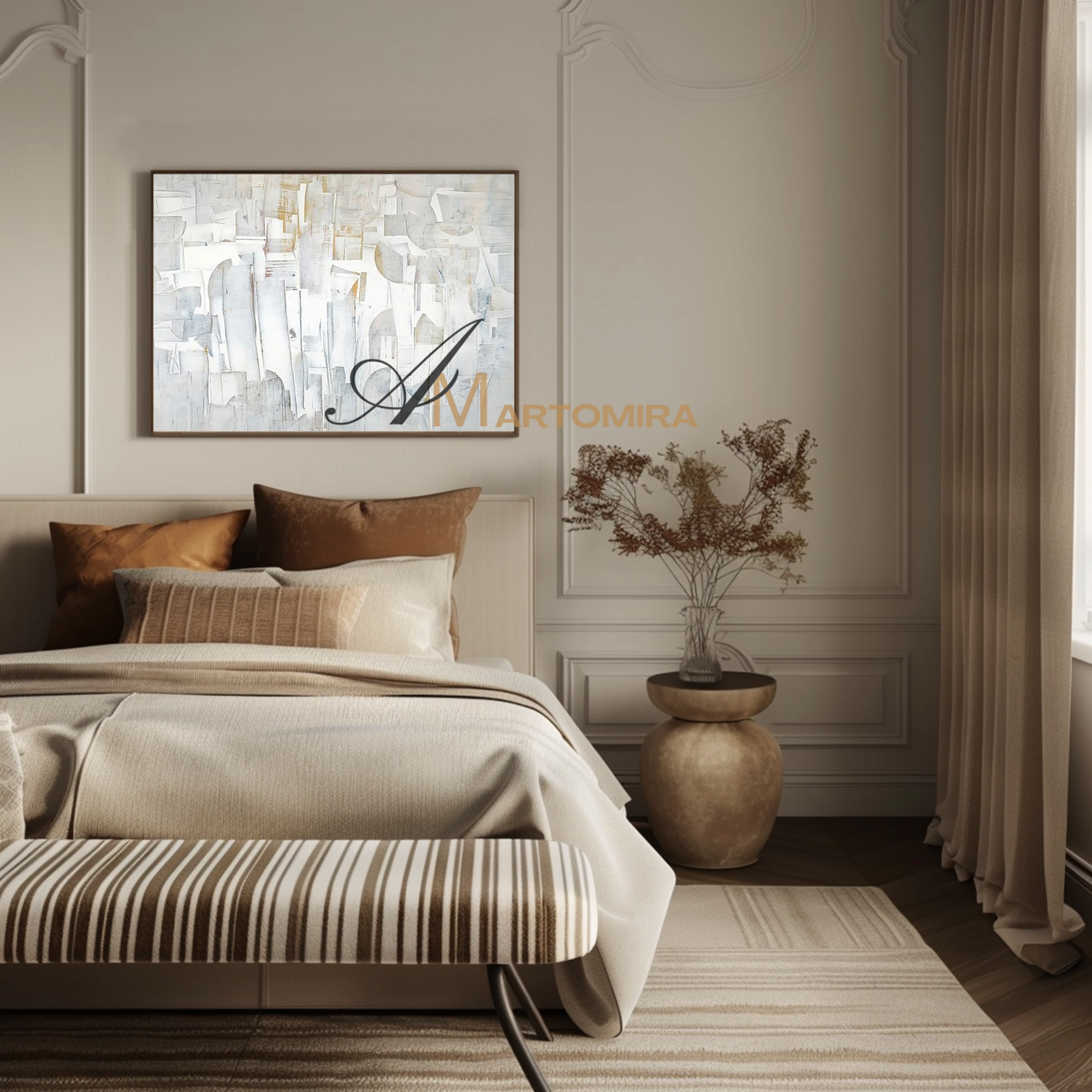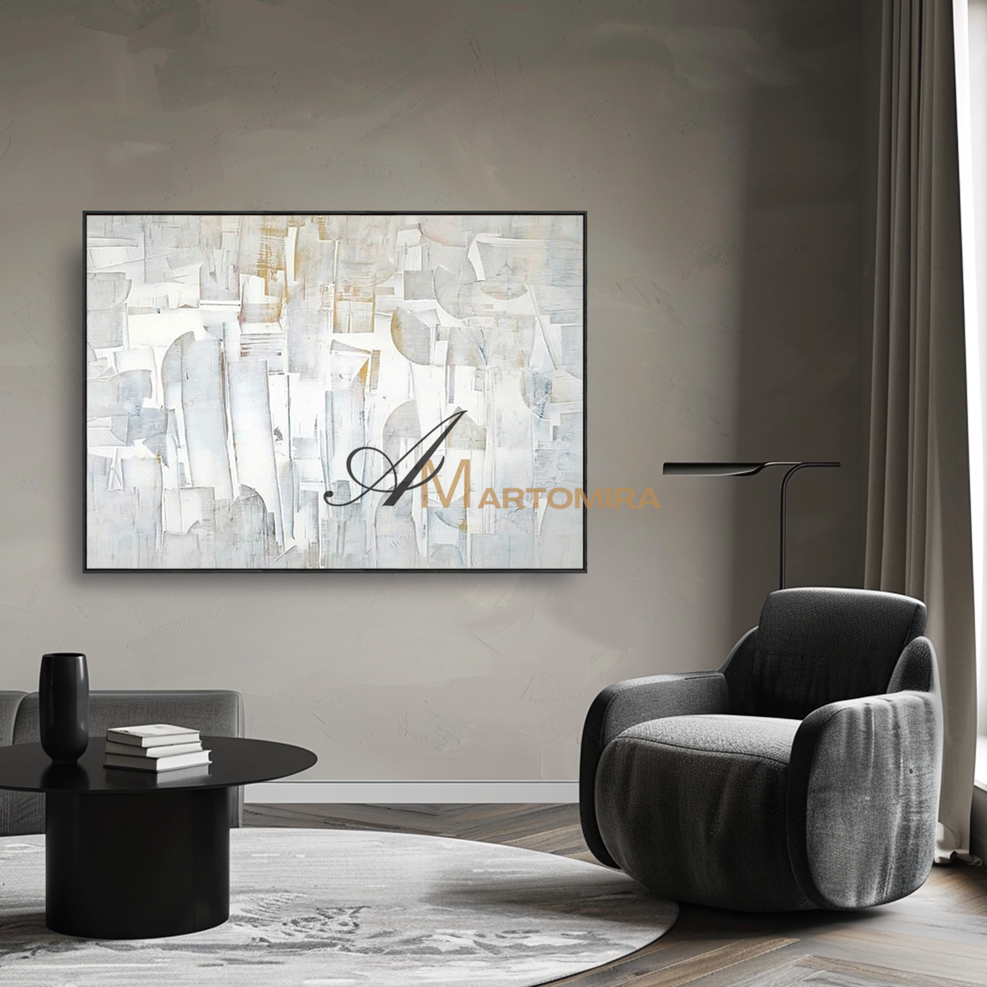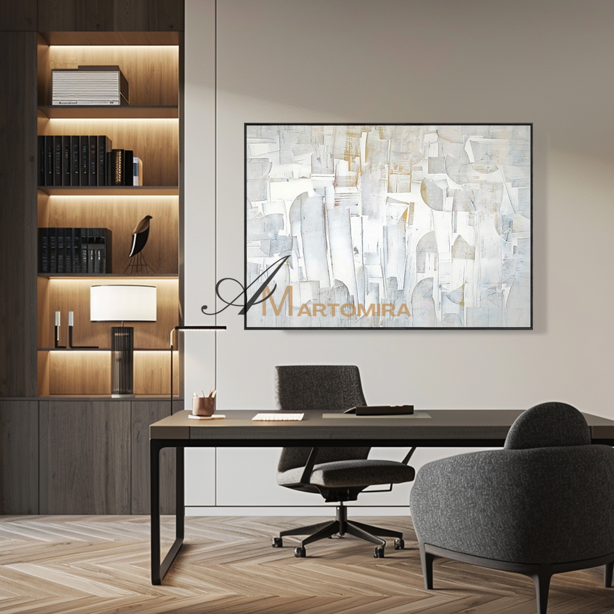Enhance your interior with our contemporary hand-painted wall art, blending texture, form, and timeless style.
