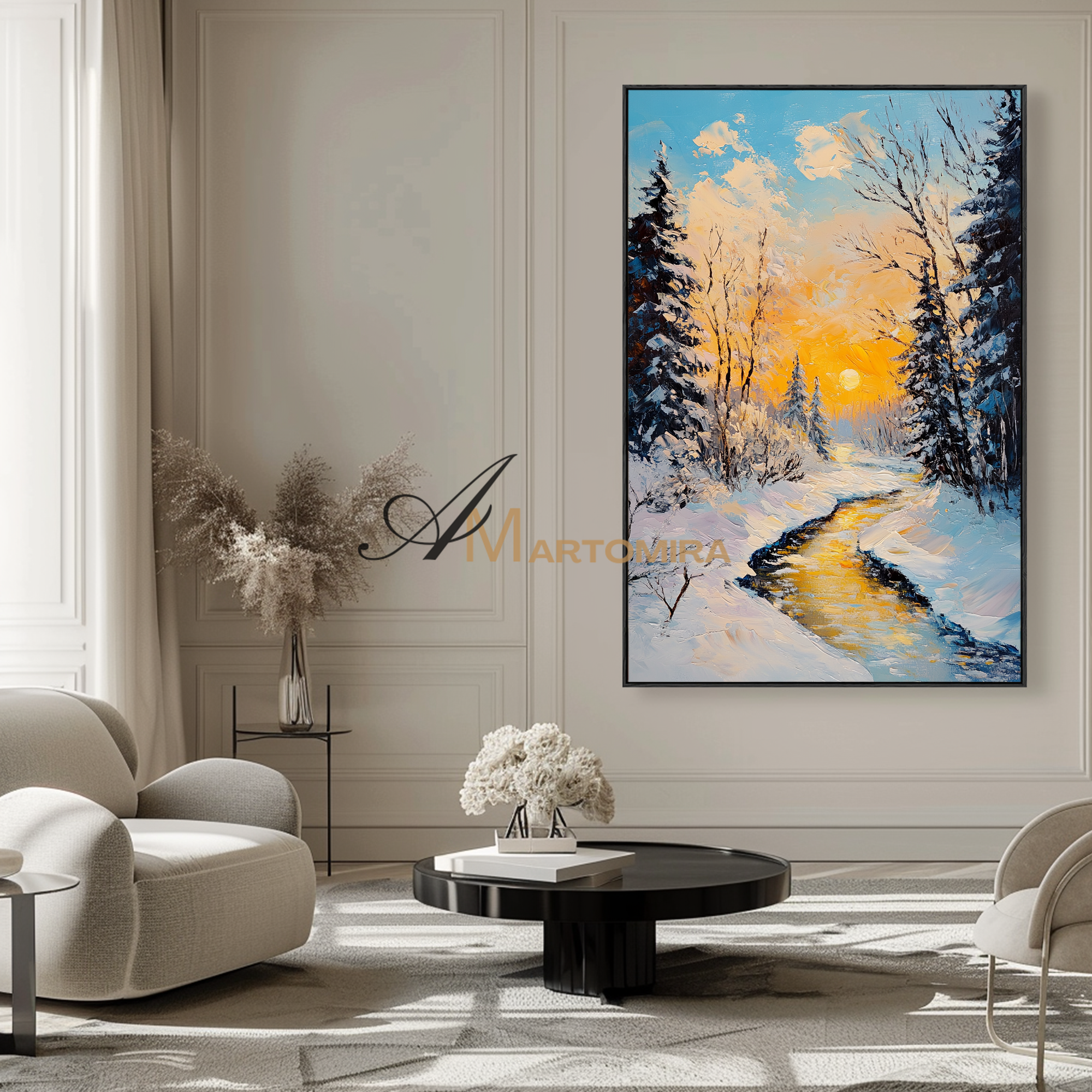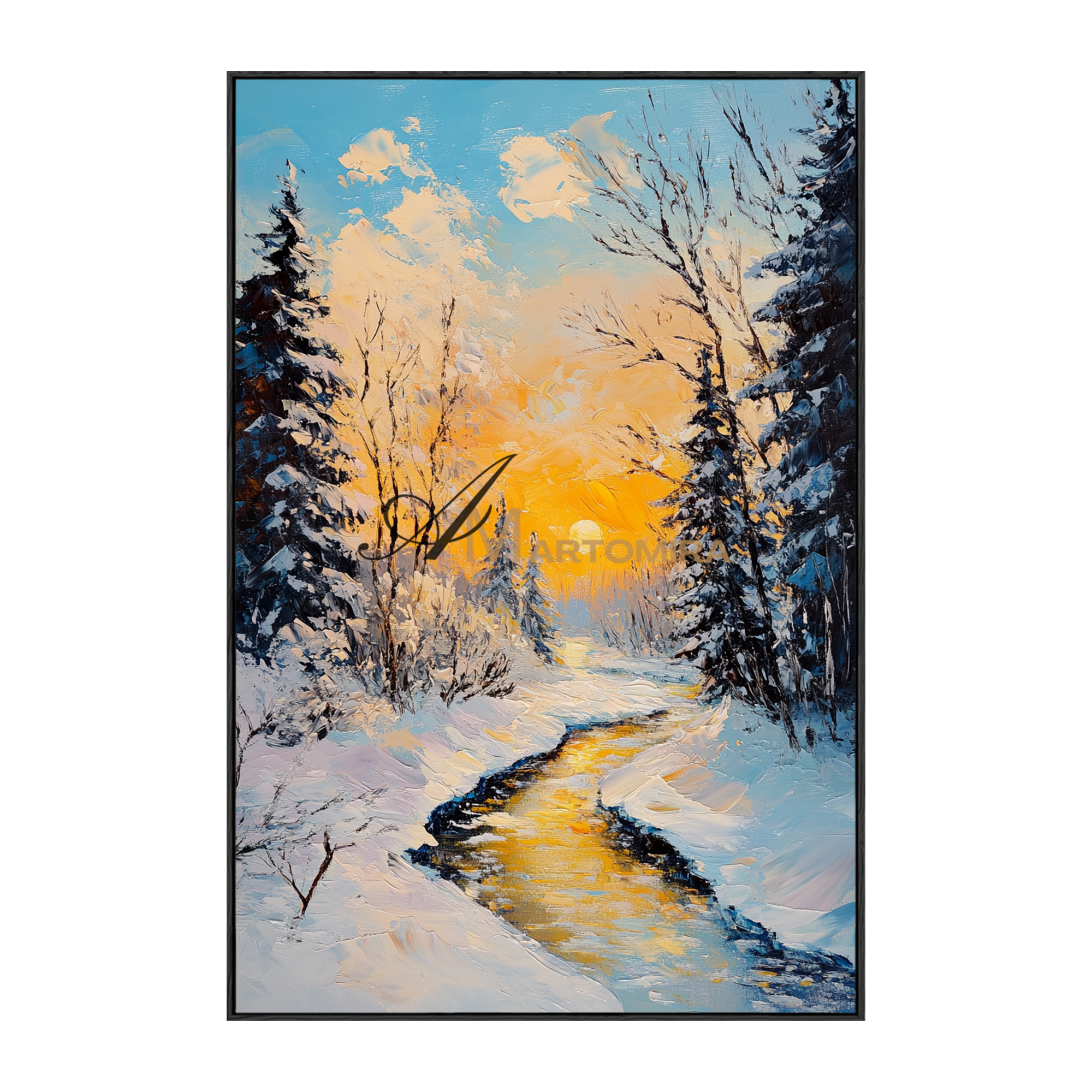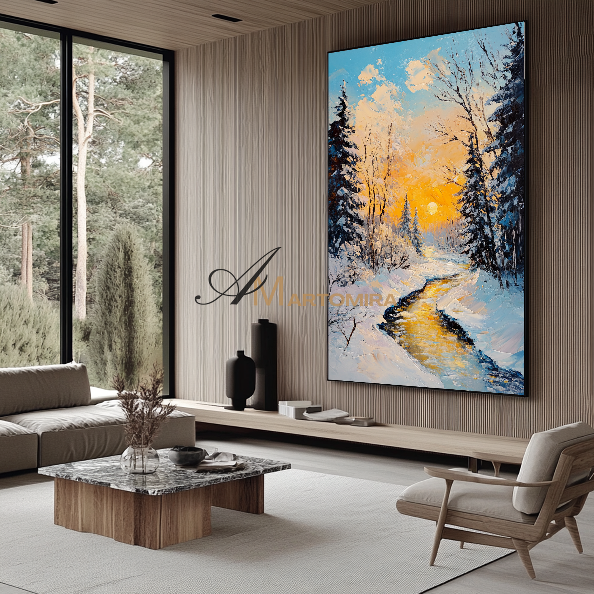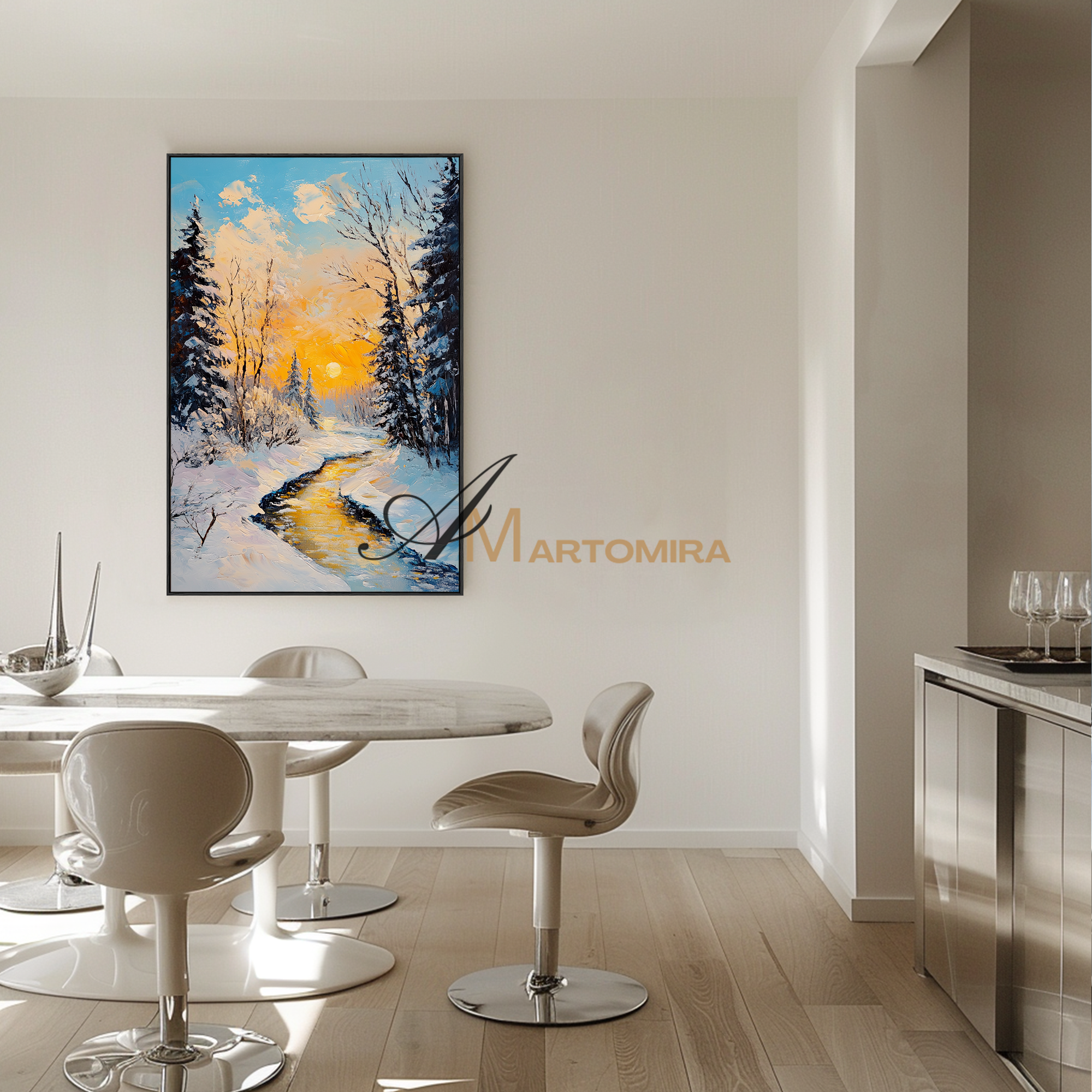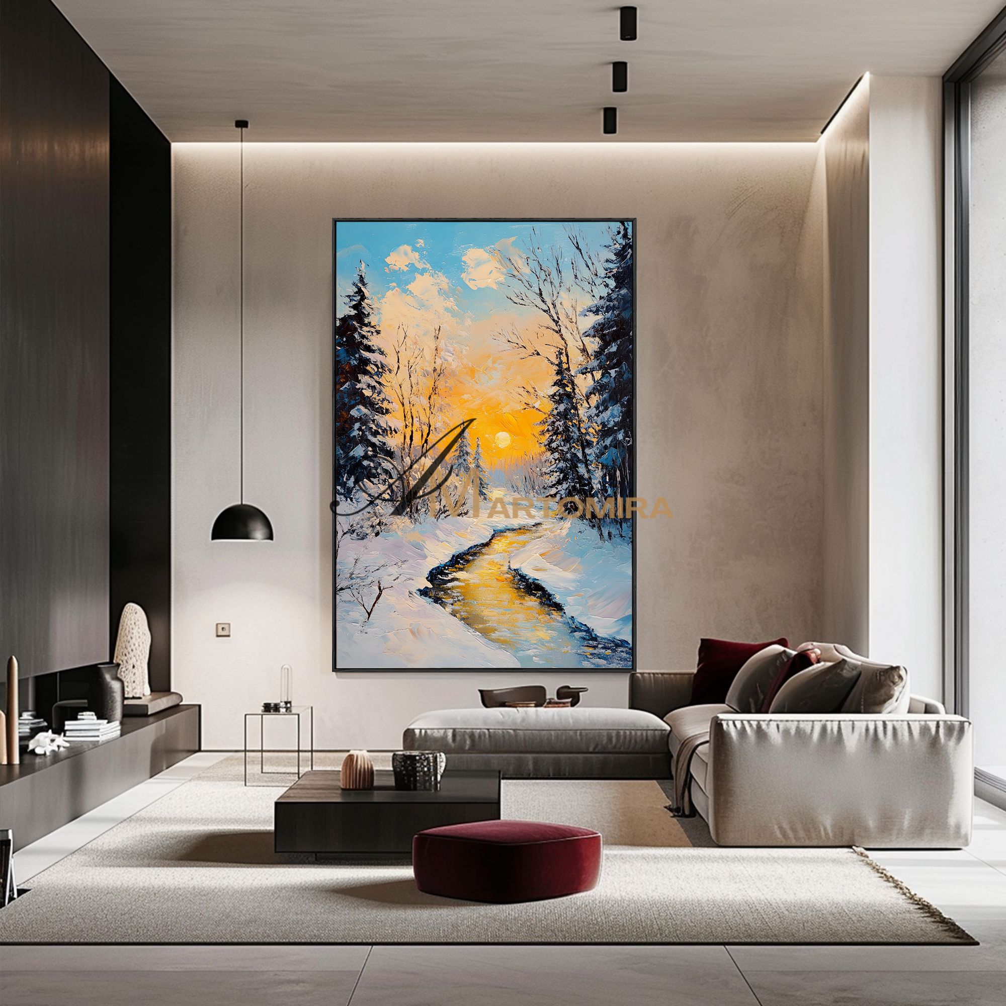 Seni Dinding Lanskap | Pemandangan Salju | Lukisan Hutan Senja | Seni Lanskap Bersalju | Seni Dinding Lanskap untuk Ruang Tamu #CL093