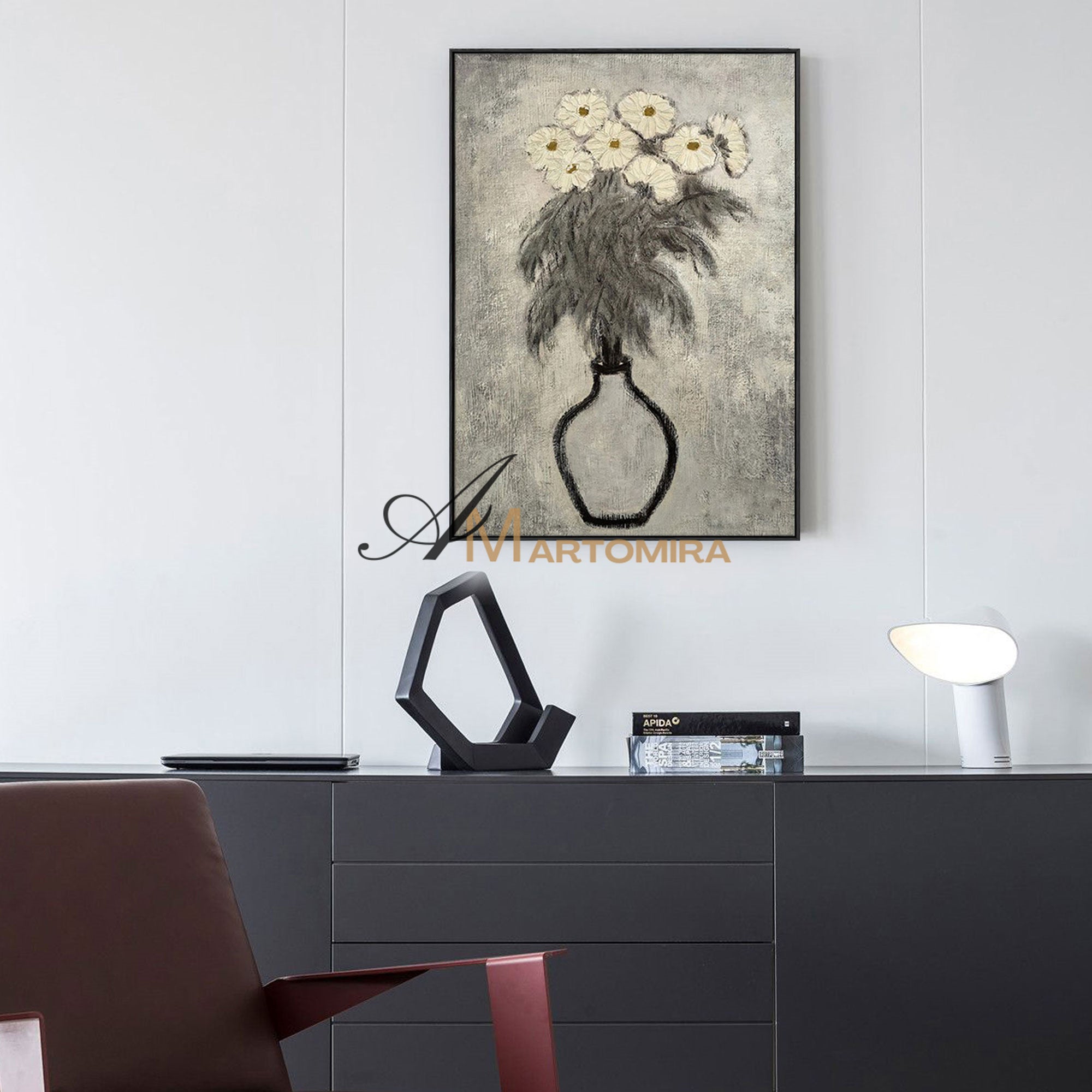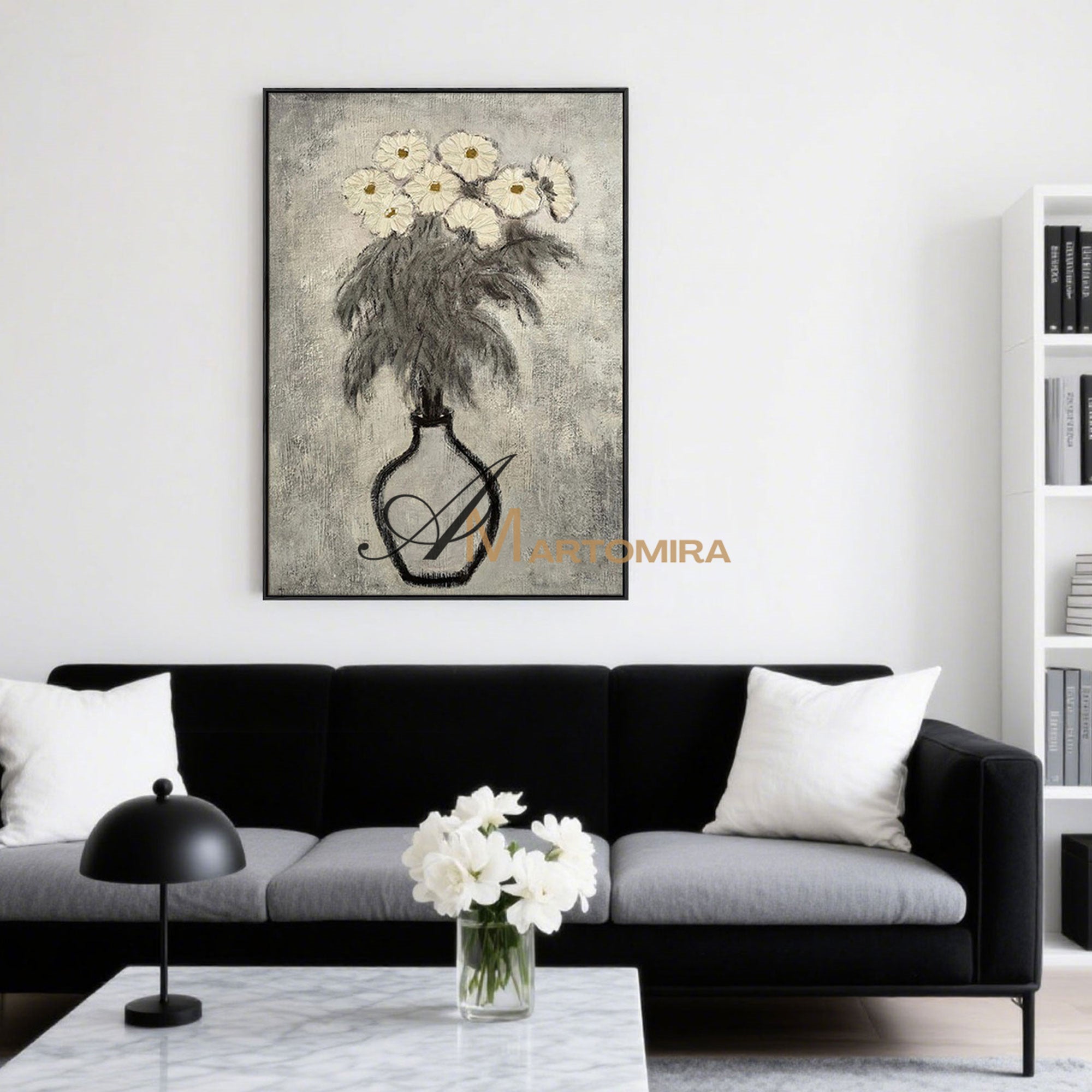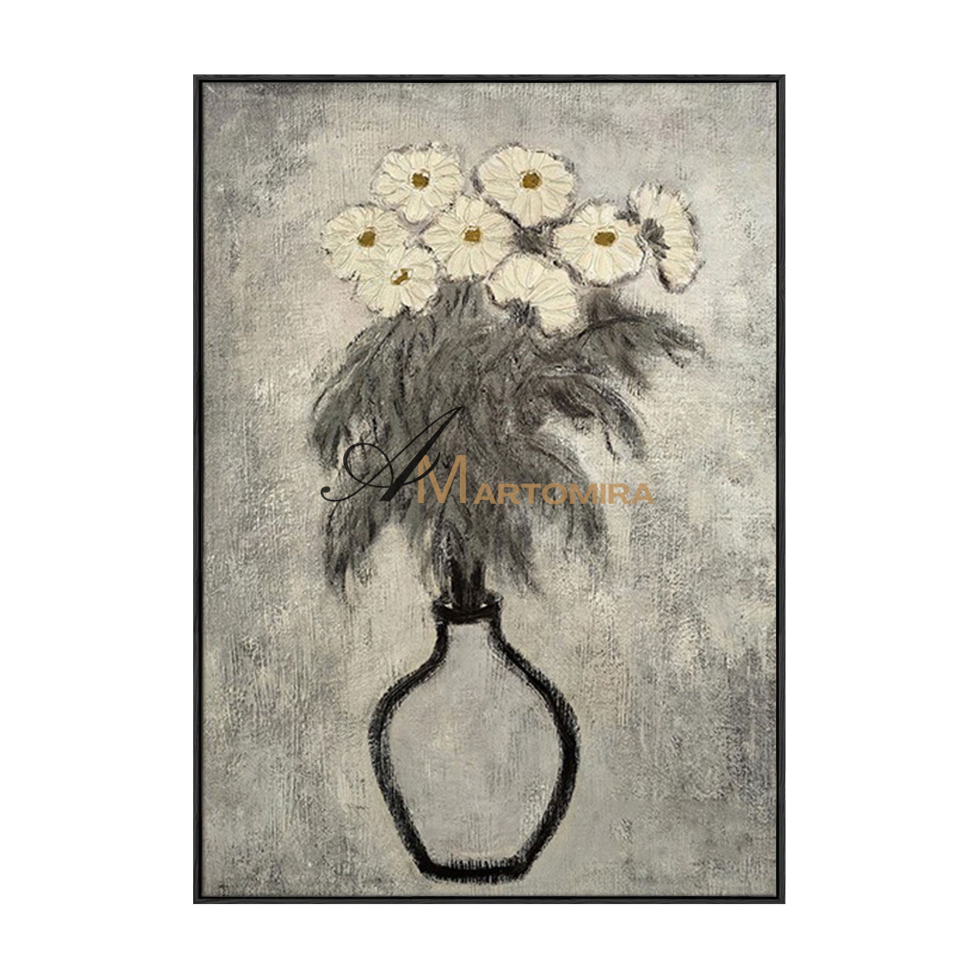 Lukisan Abstrak Bunga | Seni Dinding Kanvas Bunga | Seni Dinding Bunga Abu-abu | Lukisan Abstrak #MF066