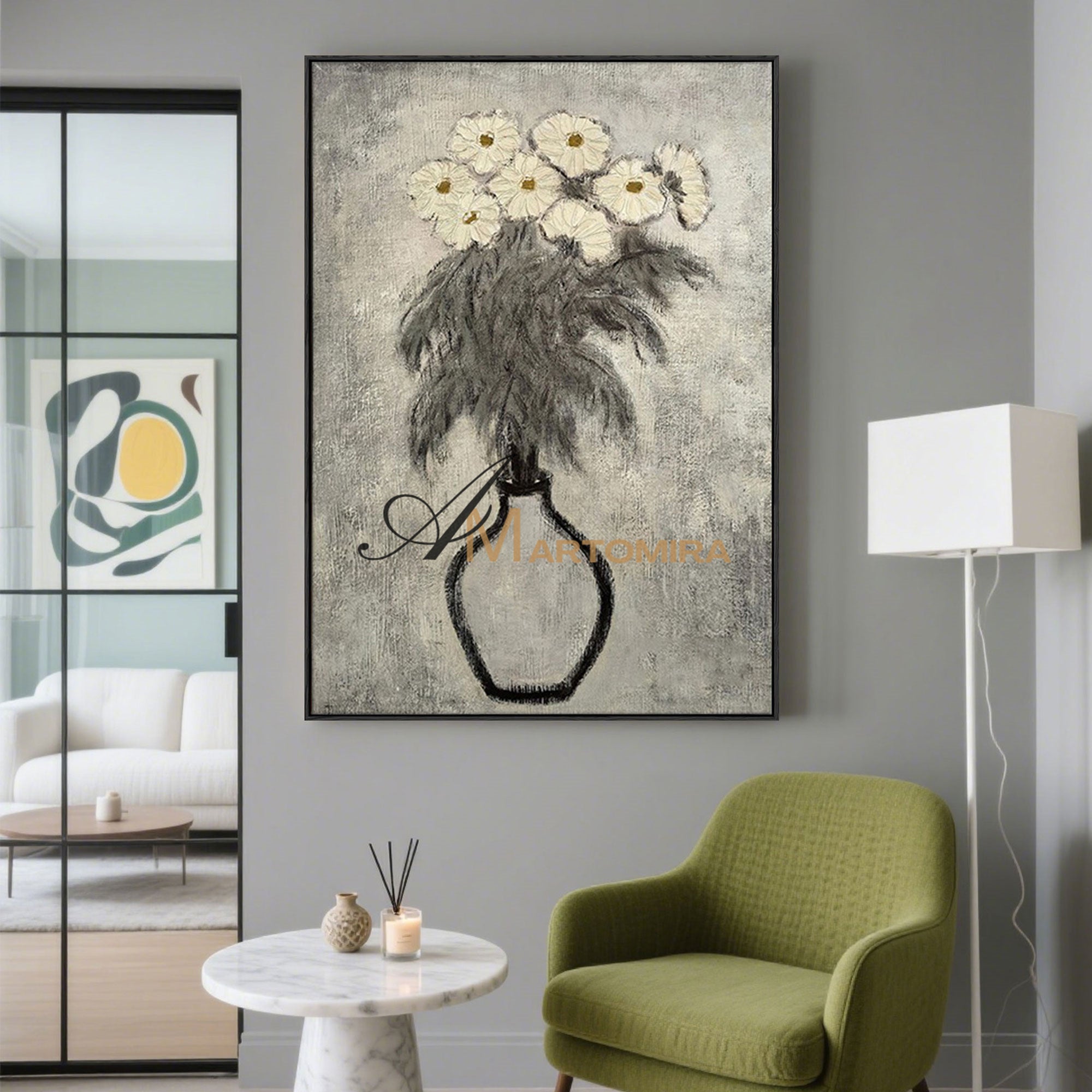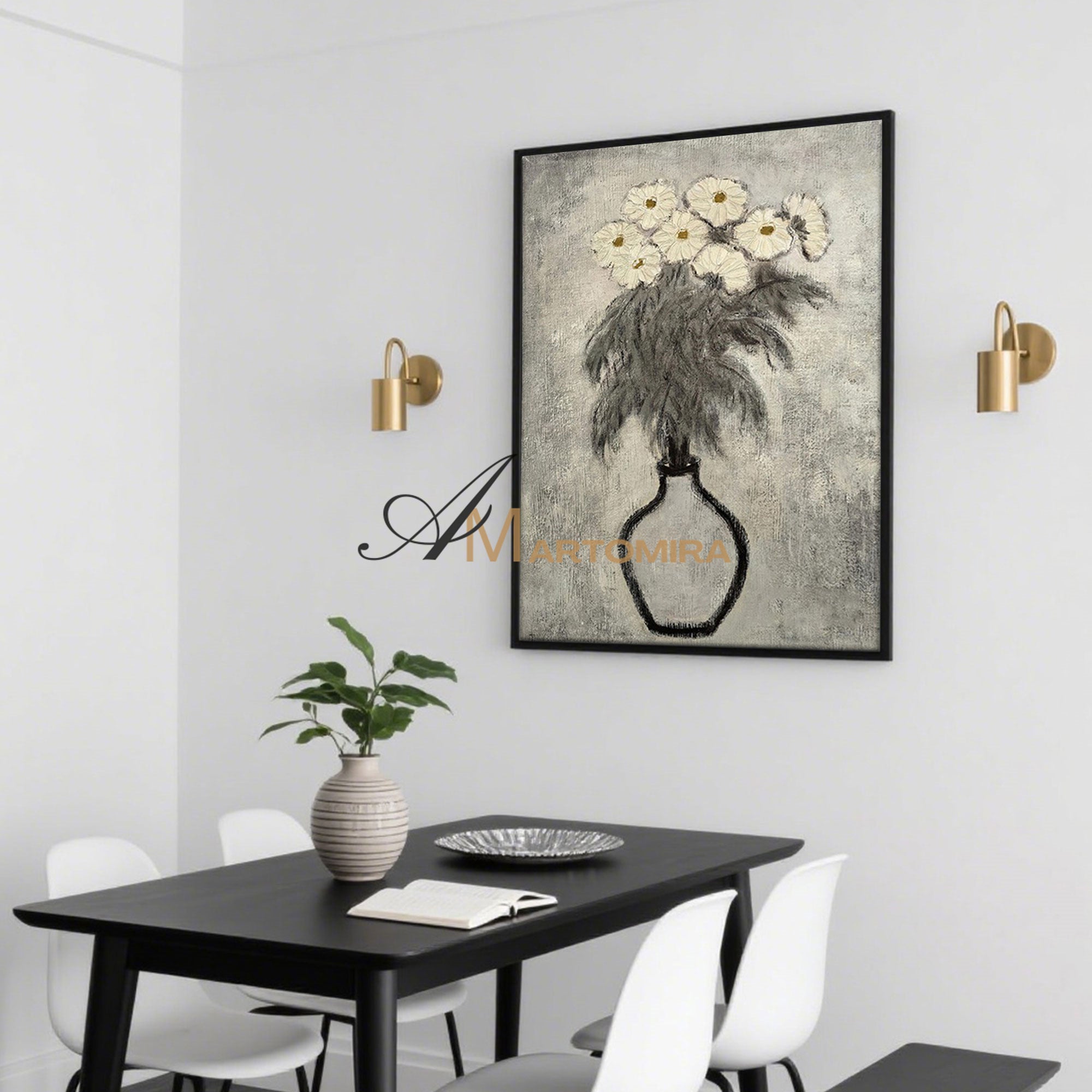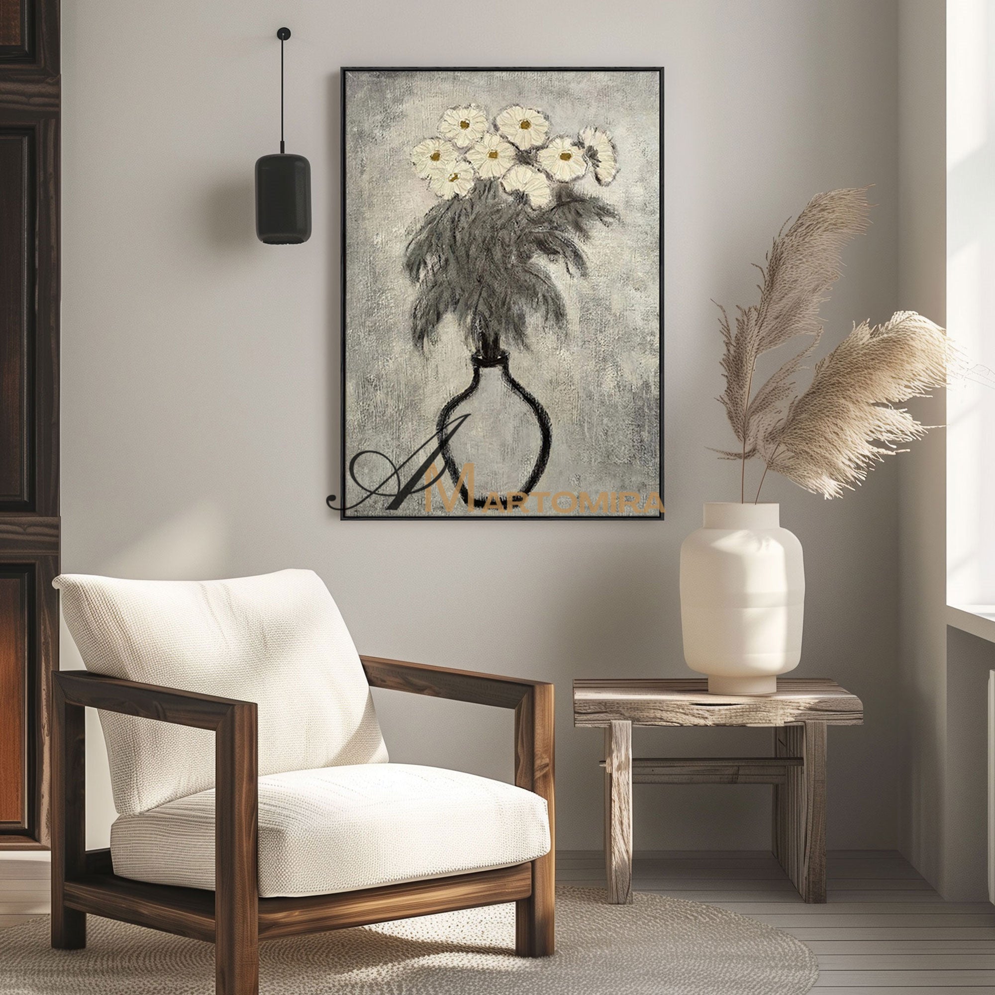 Lukisan Abstrak Bunga | Seni Dinding Kanvas Bunga | Seni Dinding Bunga Abu-abu | Lukisan Abstrak #MF066