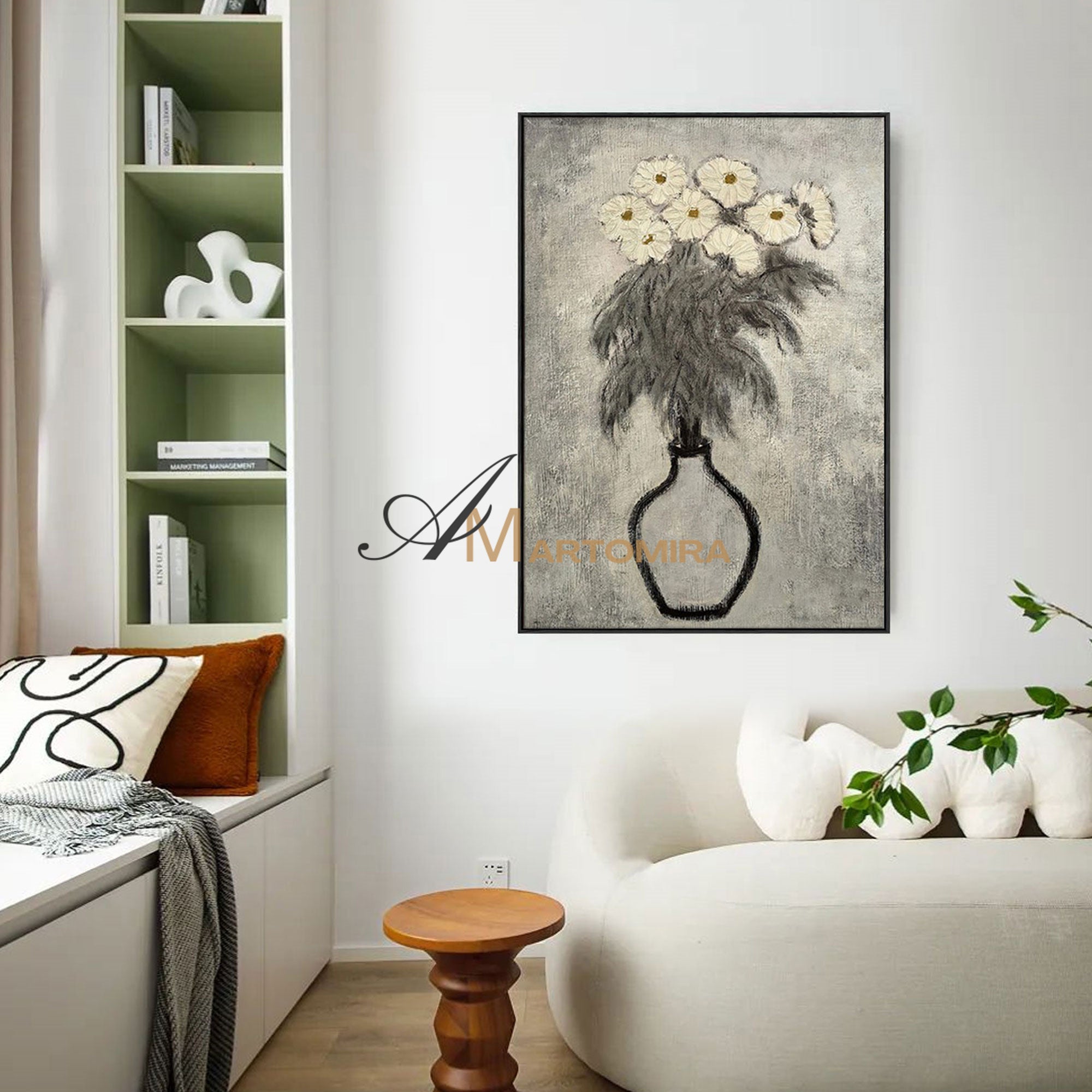 Enhance your interior with our contemporary hand-painted wall art, blending texture, form, and timeless style.