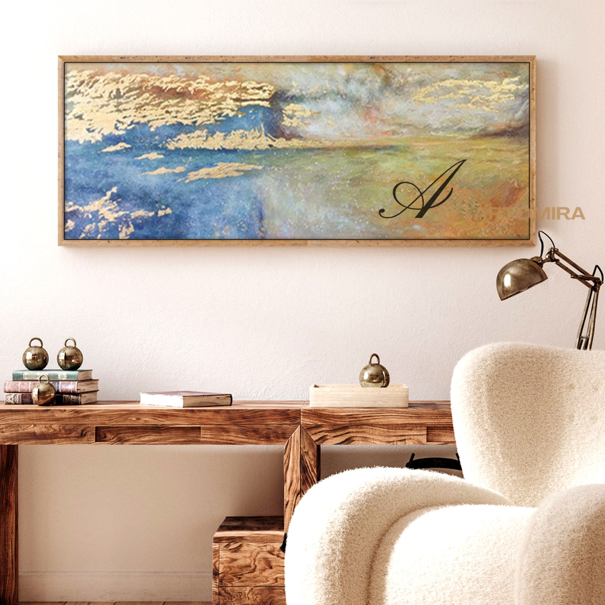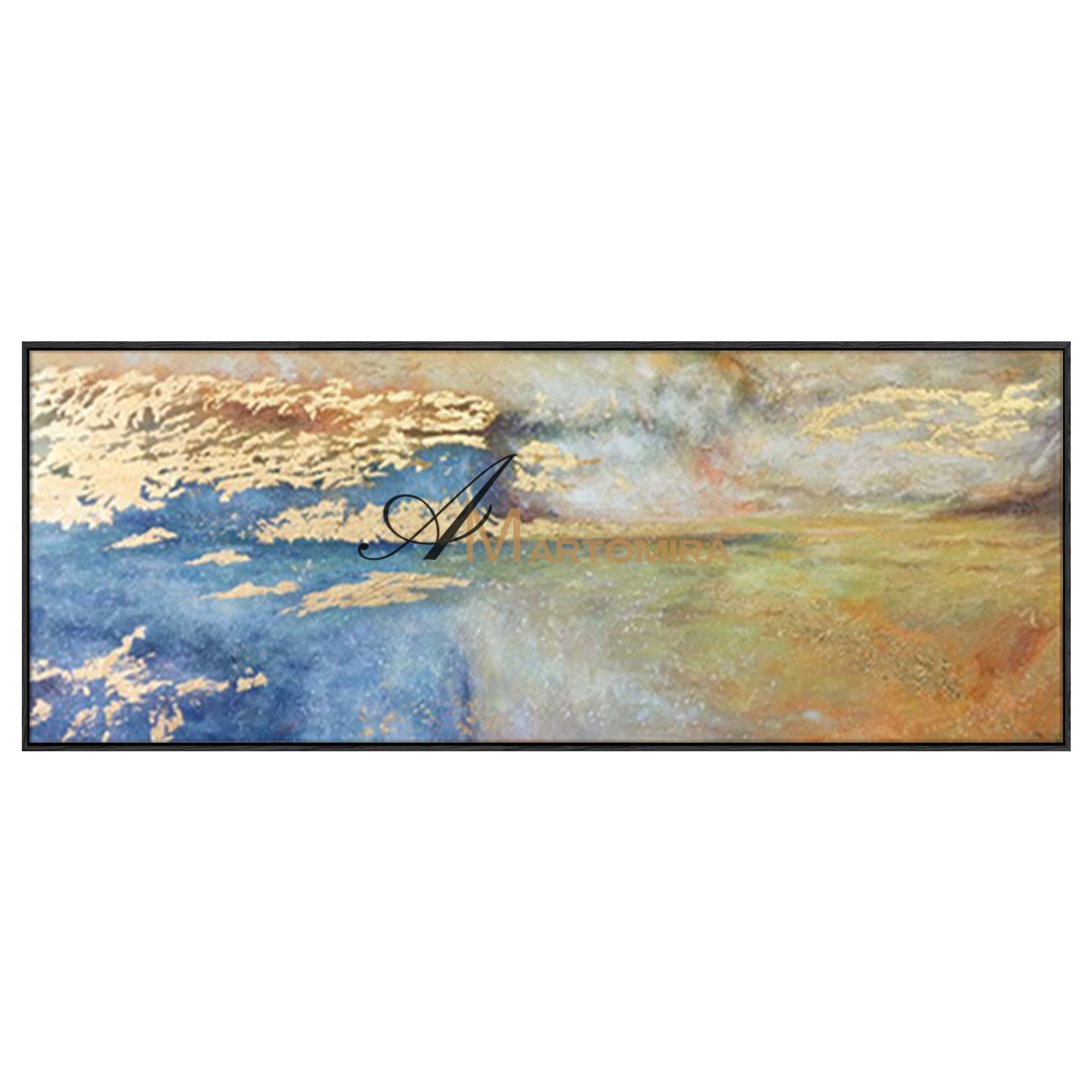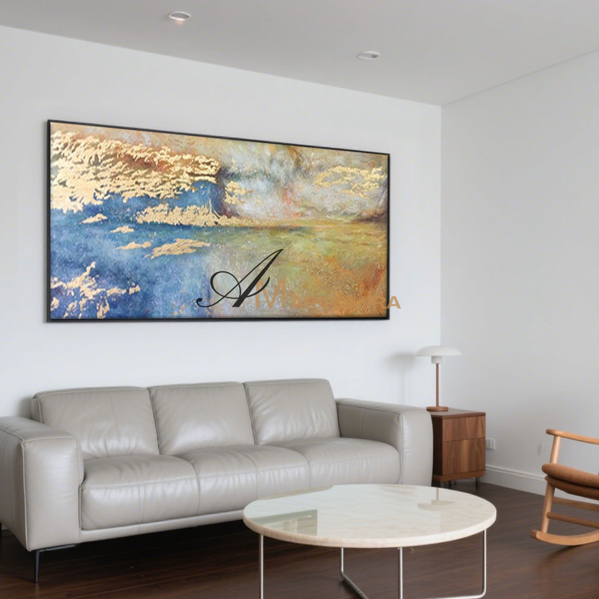 Seni Dinding Horizontal Besar | Cat Akrilik Emas | Seni Dinding Kanvas Abstrak Besar | Seni Dinding Abstrak #SH009