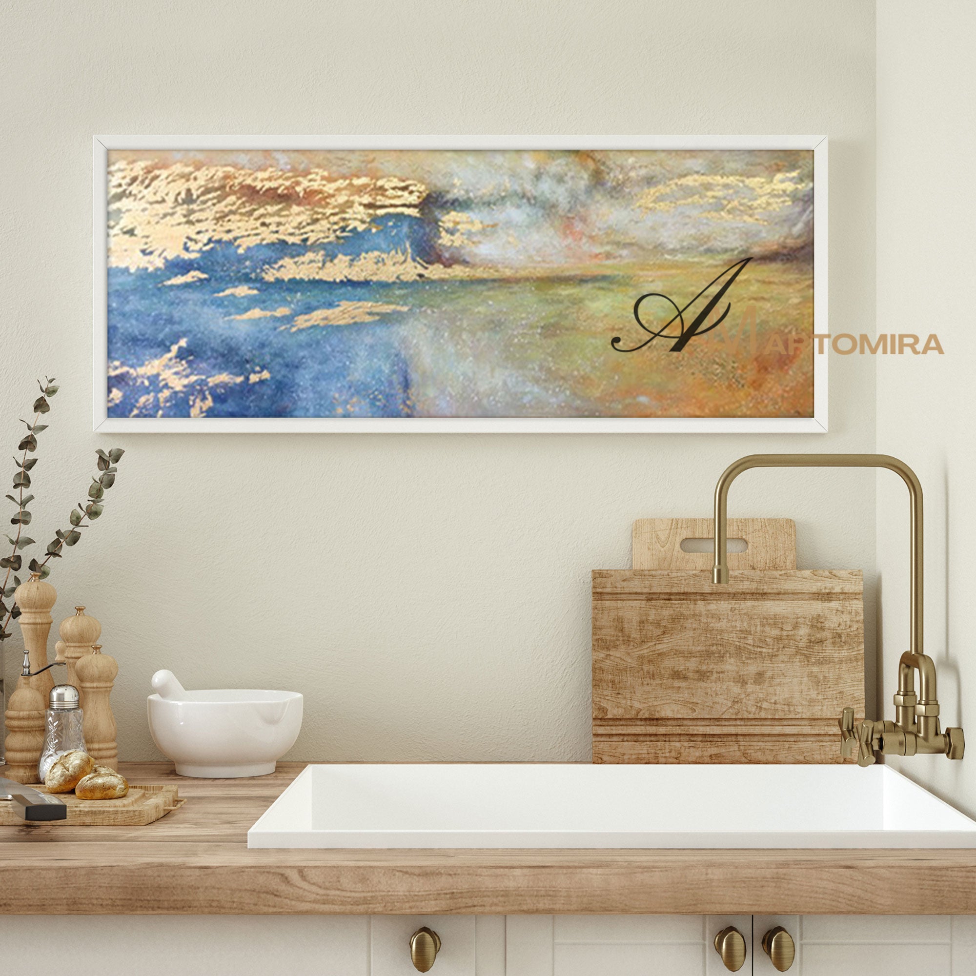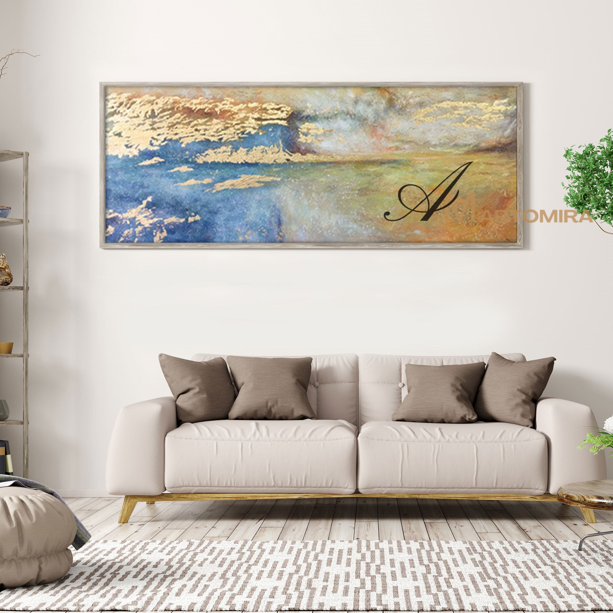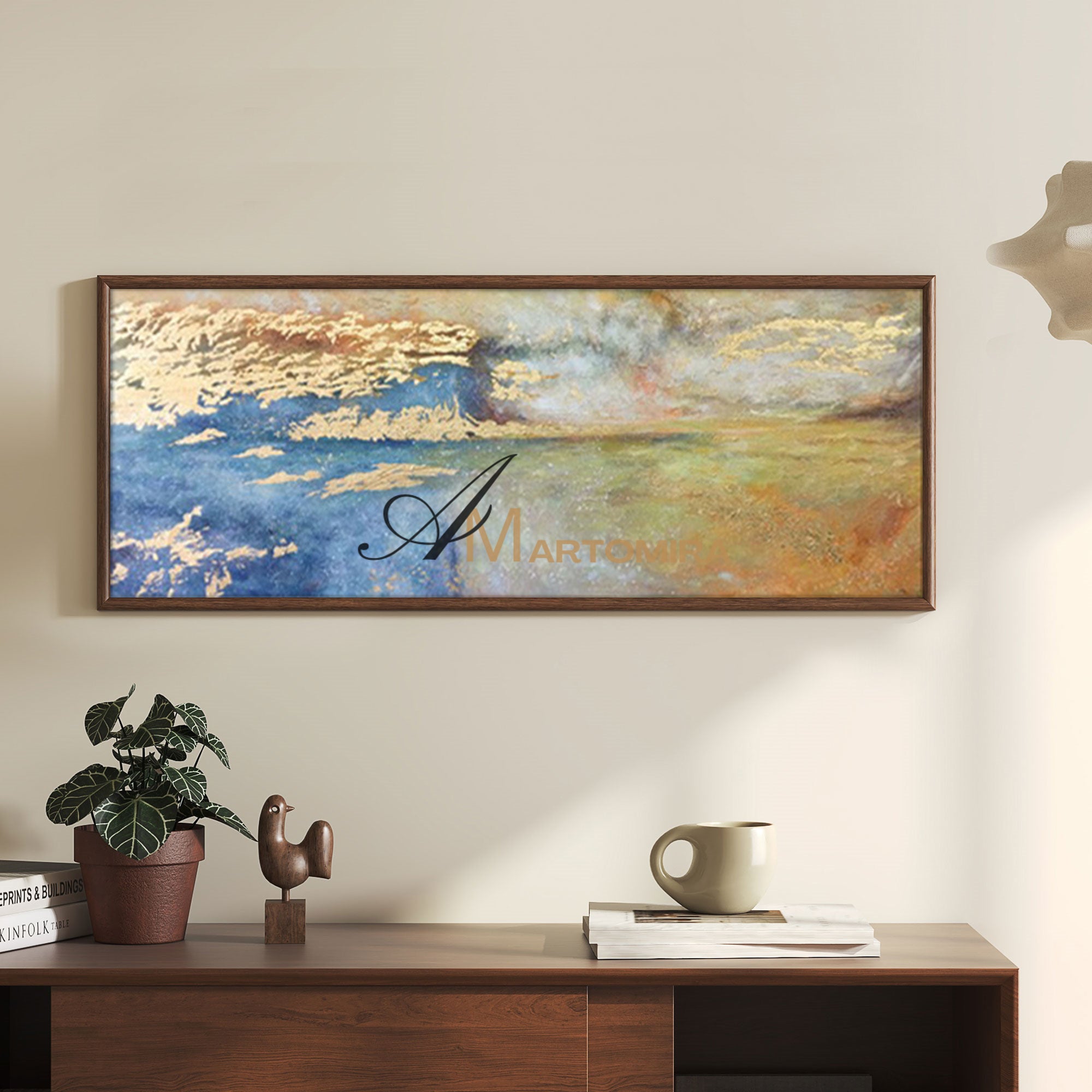 Seni Dinding Horizontal Besar | Cat Akrilik Emas | Seni Dinding Kanvas Abstrak Besar | Seni Dinding Abstrak #SH009